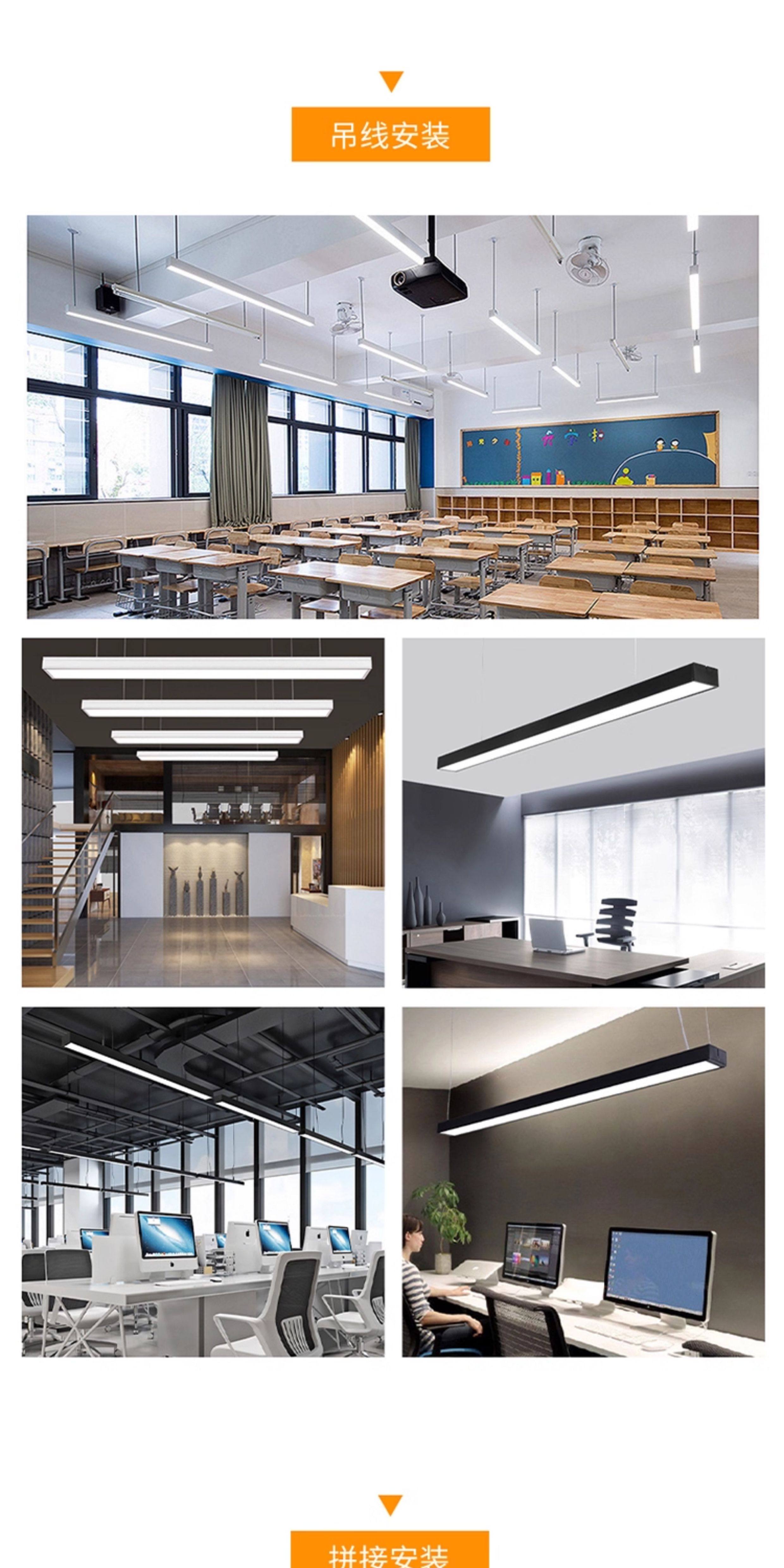 Led Strip-Shaped Office Classroom Lights, Shop, Supermarket, Square, Barbershop, Ceiling-Mounted Special-Shaped Lighting Fixtures