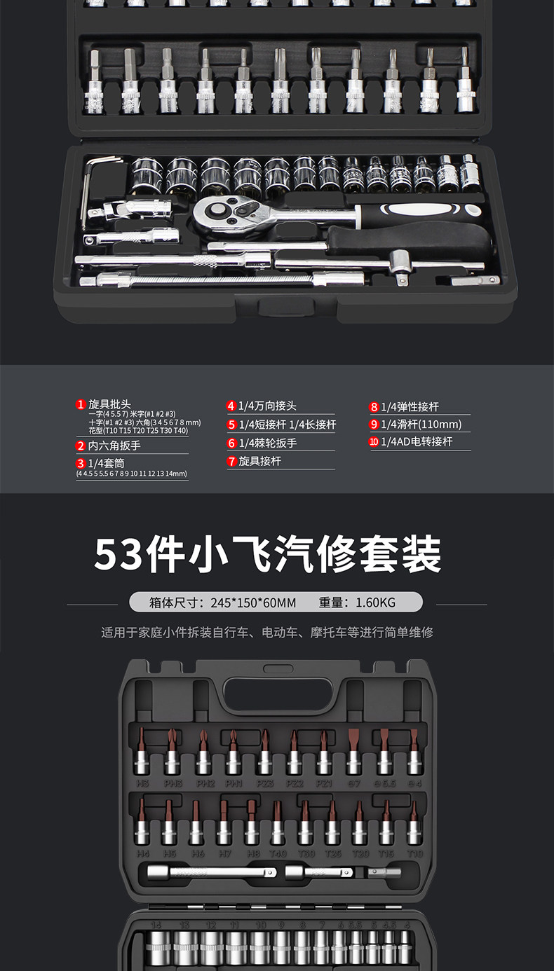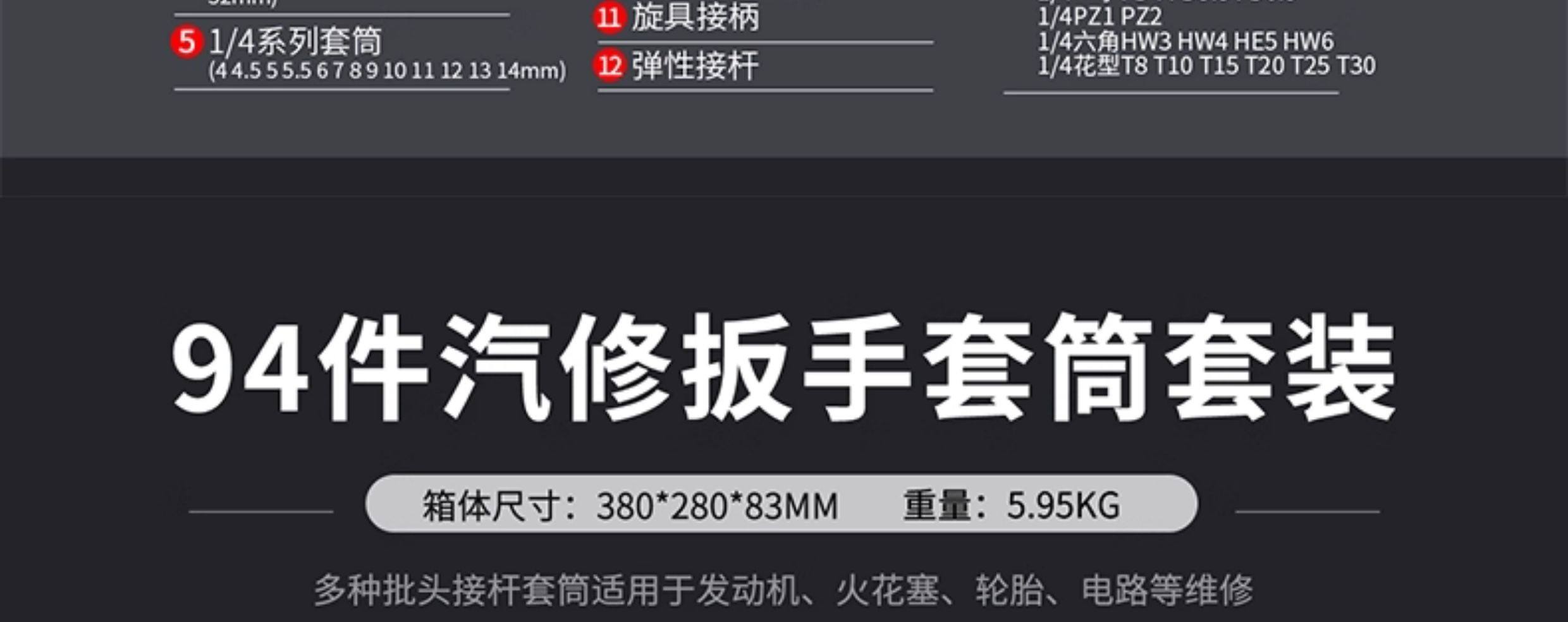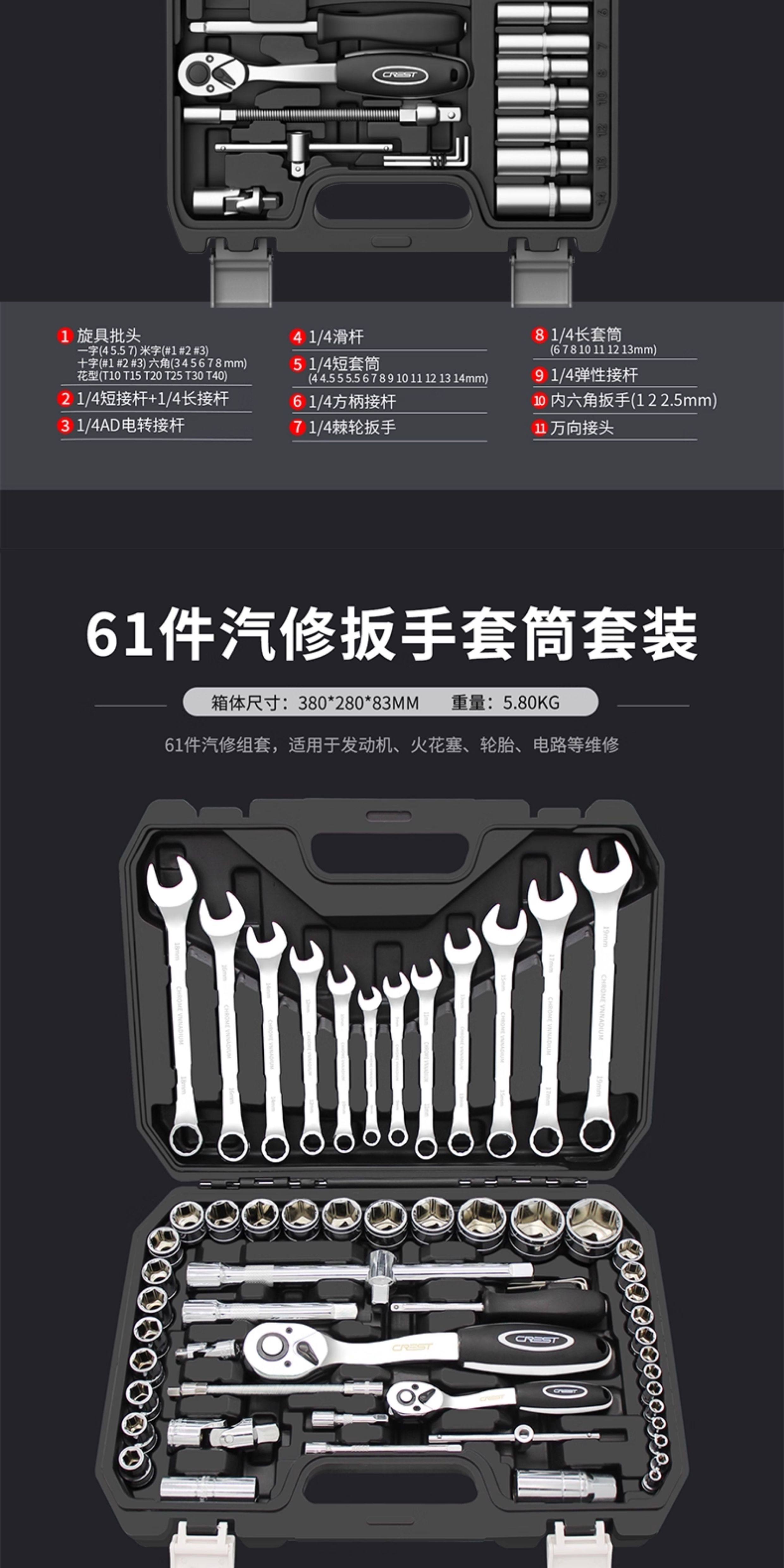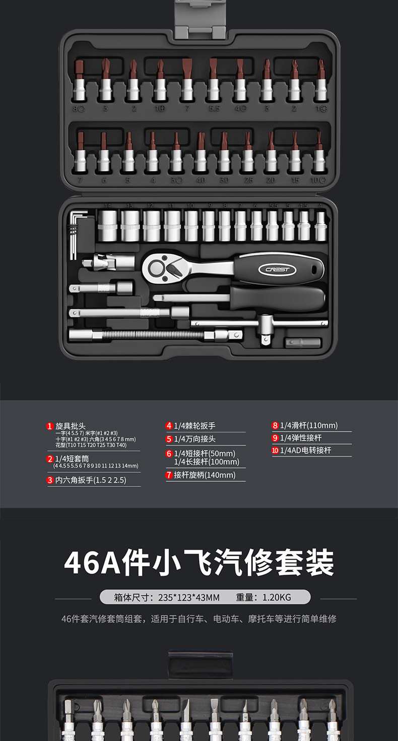 | Color Classification | Special Offer 24-Tooth Straight Handle Xiaofei 46-Piece Set,[Durable Flagship Model]10-Piece Auto Repair Set for Changing Tires,[Durable Flagship Model]72-Tooth Curved Handle Xiaofei Auto Repair 46-Piece Set,[Durable Flagship Model]72-Tooth Curved Handle Xiaofei Auto Repair 53-Piece Set,[Durable Flagship Model]72-Tooth Curved Handle Dafei Auto Repair 32-Piece Set,[Durable Flagship Model]72-Tooth Curved Handle Dafei Auto Repair 37-Piece Set,[Durable Flagship Model]72-Tooth Curved Handle Dafei Auto Repair 43-Piece Set,[Durable Flagship Model]72-Tooth Curved Handle Small Flying Auto Repair 61-Piece Set,[Durable Flagship Model]72-Tooth Curved Handle Small Flying Auto Repair 82-Piece Set,[Durable Flagship Model]72-Tooth Curved Large and Small Flying Auto Repair 94-Piece Set,[Durable Flagship Model]24-Tooth Straight Handle Small and Large Flying Auto Repair 108-Piece Set,[Durable Flagship Model]72-Tooth Curved Handle Small Flying Auto Repair 108-Piece Set,[Durable Flagship Model]72-Tooth Curved Handle Large, Medium and Small Flying Auto Repair 121-Piece Set,[Durable Flagship Model]45-Tooth Straight Handle Large, Medium and Small Flying Auto Repair 140-Piece Set,[Durable Flagship Model]72-Tooth Curved Handle Large, Medium and Small Flying Auto Repair 150-Piece Set,[Supreme 4S Model]10-Piece Auto Repair Set for Changing Tires,[Supreme 4S Model]24-Tooth Straight Handle Xiaofei 46-Piece Set,[Supreme 4S Model]72-Tooth Curved Handle Xiaofei Auto Repair 46-Piece Set,[Supreme 4S Model]72-Tooth Curved Handle Xiaofei Auto Repair 53-Piece Set,[Supreme 4S Model]72-Tooth Curved Handle Dafei Auto Repair 32-Piece Set,[Supreme 4S Model]72-Tooth Curved Handle Dafei Auto Repair 37-Piece Set,[Supreme 4S Model]72-Tooth Curved Handle Dafei Auto Repair 43-Piece Set,[Supreme 4S Model]72-Tooth Curved Handle Small Flying Auto Repair 61-Piece Set,[Supreme 4S Model]72-Tooth Curved Handle Small Flying Auto Repair 82-Piece Set,[Supreme 4S Model]72-Tooth Curved Handle Small Flying Auto Repair 94-Piece Set,[Supreme 4S Model]24-Tooth Straight Handle Small and Large Flying Auto Repair 108-Piece Set,[Supreme 4S Model]72-Tooth Curved Handle Small Flying Auto Repair 108-Piece Set,[Supreme 4S Model]72-Tooth Curved Handle Large, Medium and Small Flying Auto Repair 121-Piece Set,[Supreme 4S Model]45-Tooth Straight Handle Large, Medium and Small Flying Auto Repair 140-Piece Set,[Supreme 4S Model]72-Tooth Curved Handle Large, Medium and Small Flying Auto Repair 150-Piece Set |