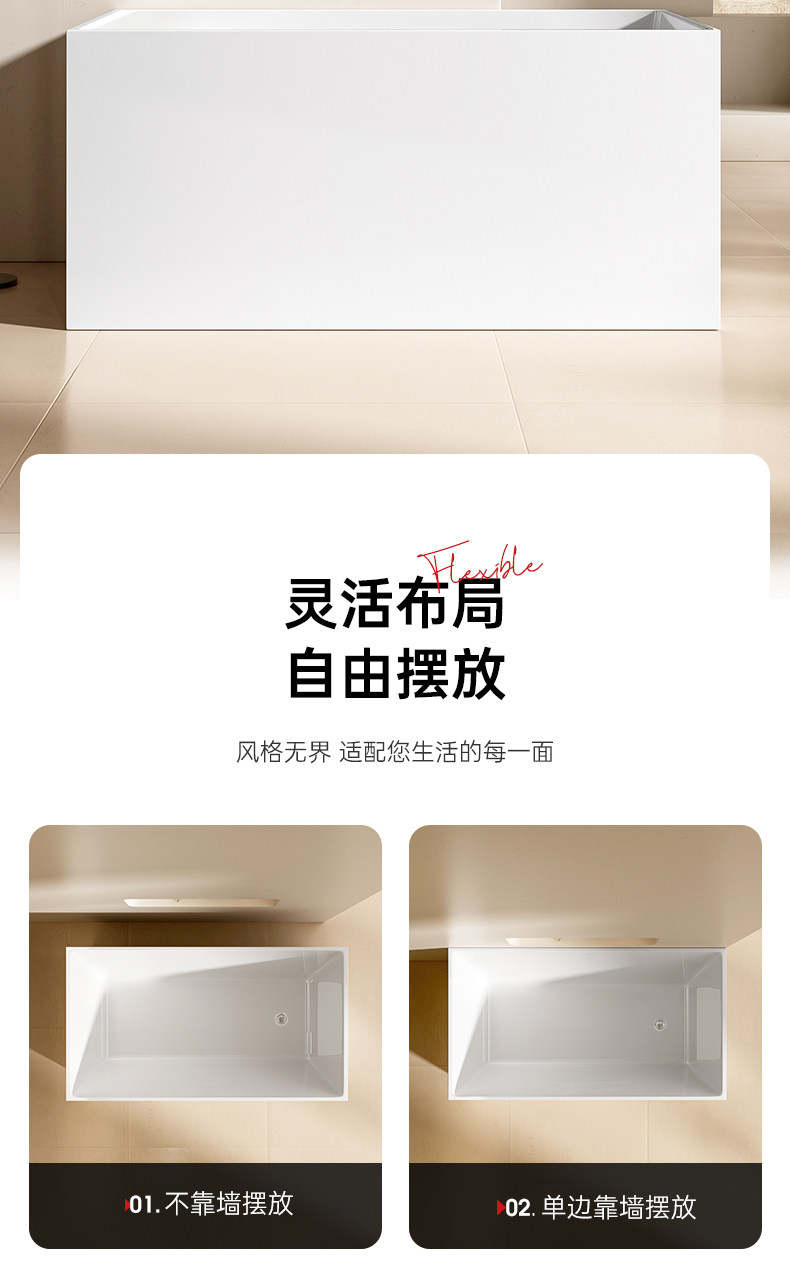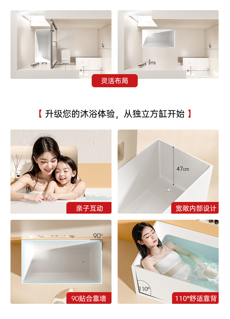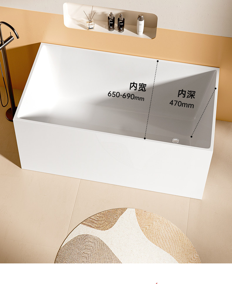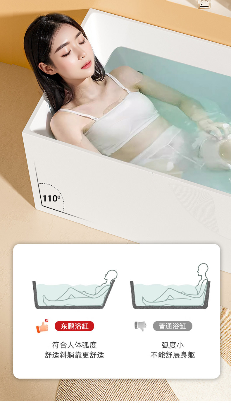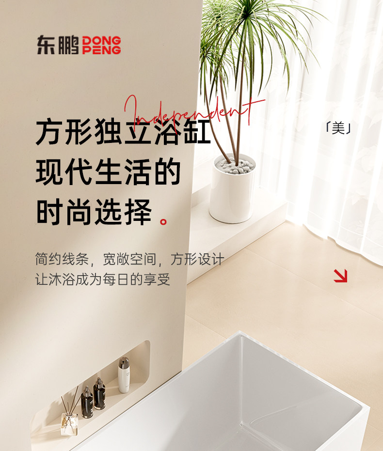 Dongpeng Thin-Edge Freestanding Bathtub for Adults, Suitable for Small Apartments, Acrylic Seamless Integrated Japanese-Style Square Deep Soaking Bathtub