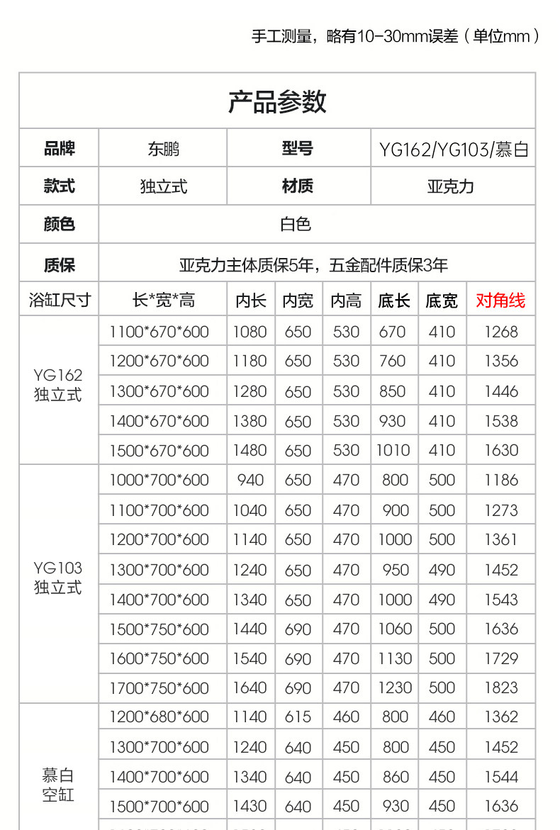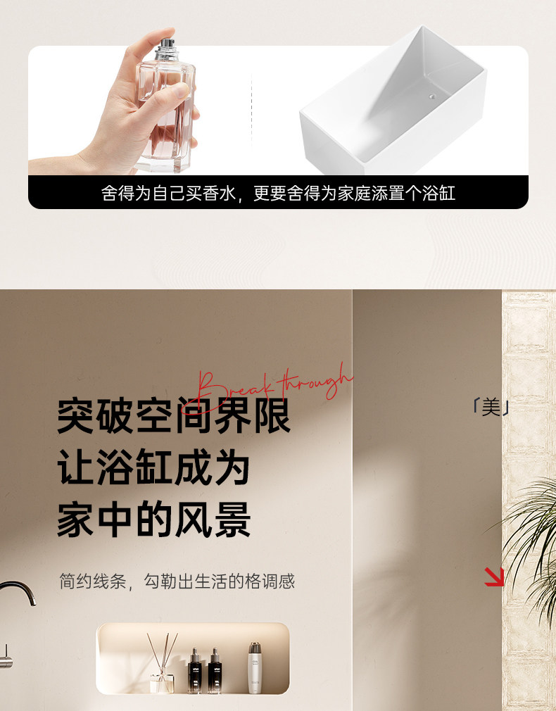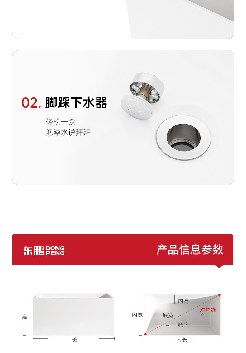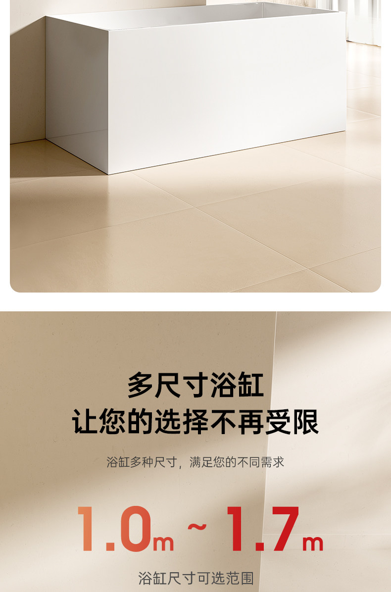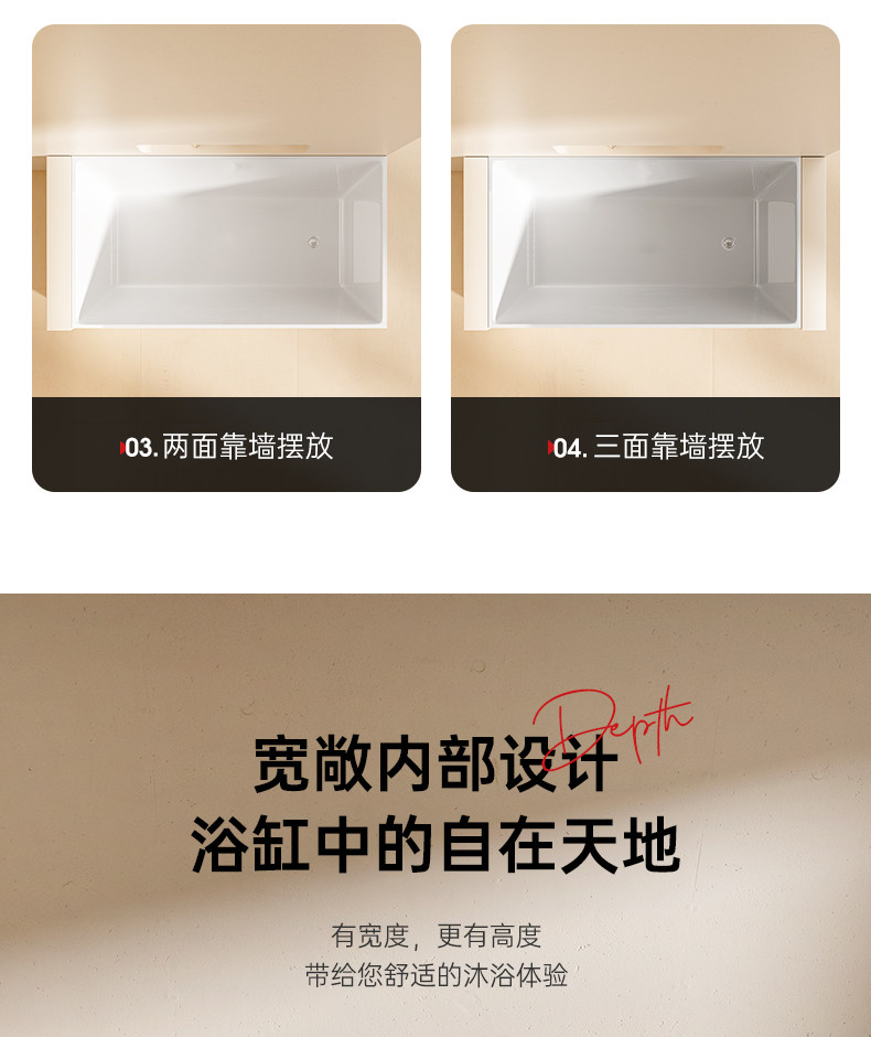 Dongpeng Thin-Edge Freestanding Bathtub for Adults, Suitable for Small Apartments, Acrylic Seamless Integrated Japanese-Style Square Deep Soaking Bathtub