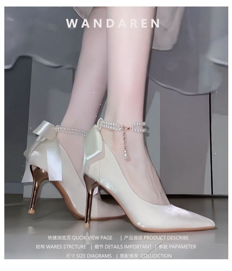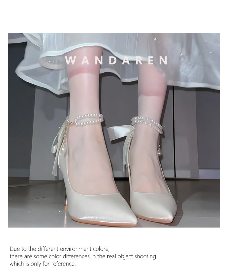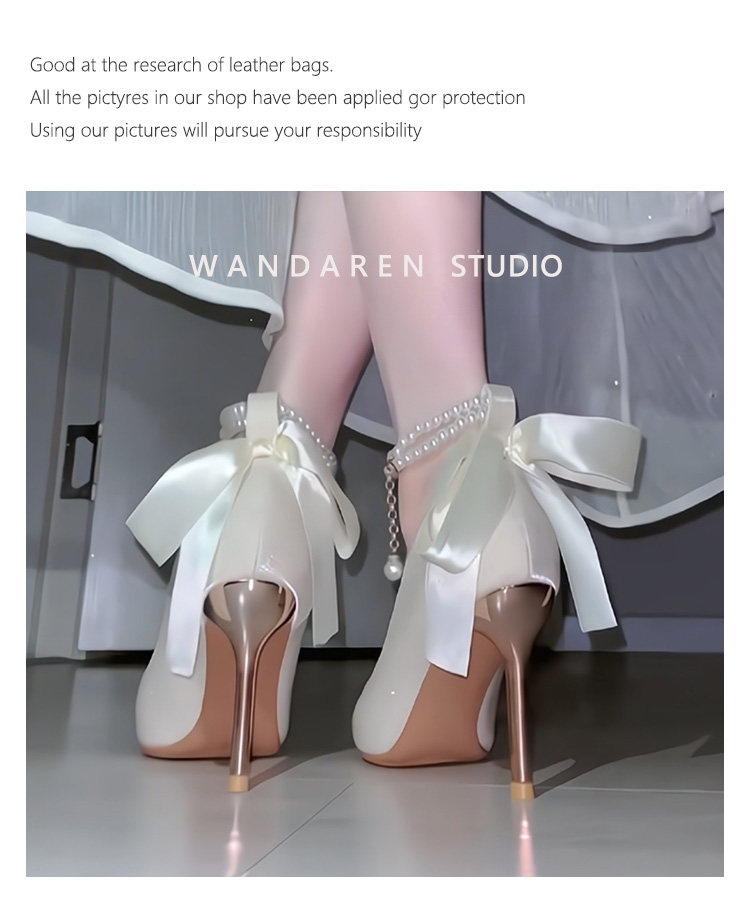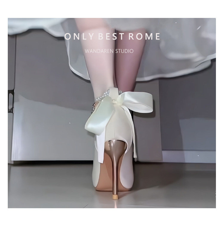 Wan Da Ren French Satin High Heels Women's Stiletto White Bridesmaid Shoes Main Wedding Dress Bride Wedding Shoes 18Th Birthday Coming-Of-Age Ceremony