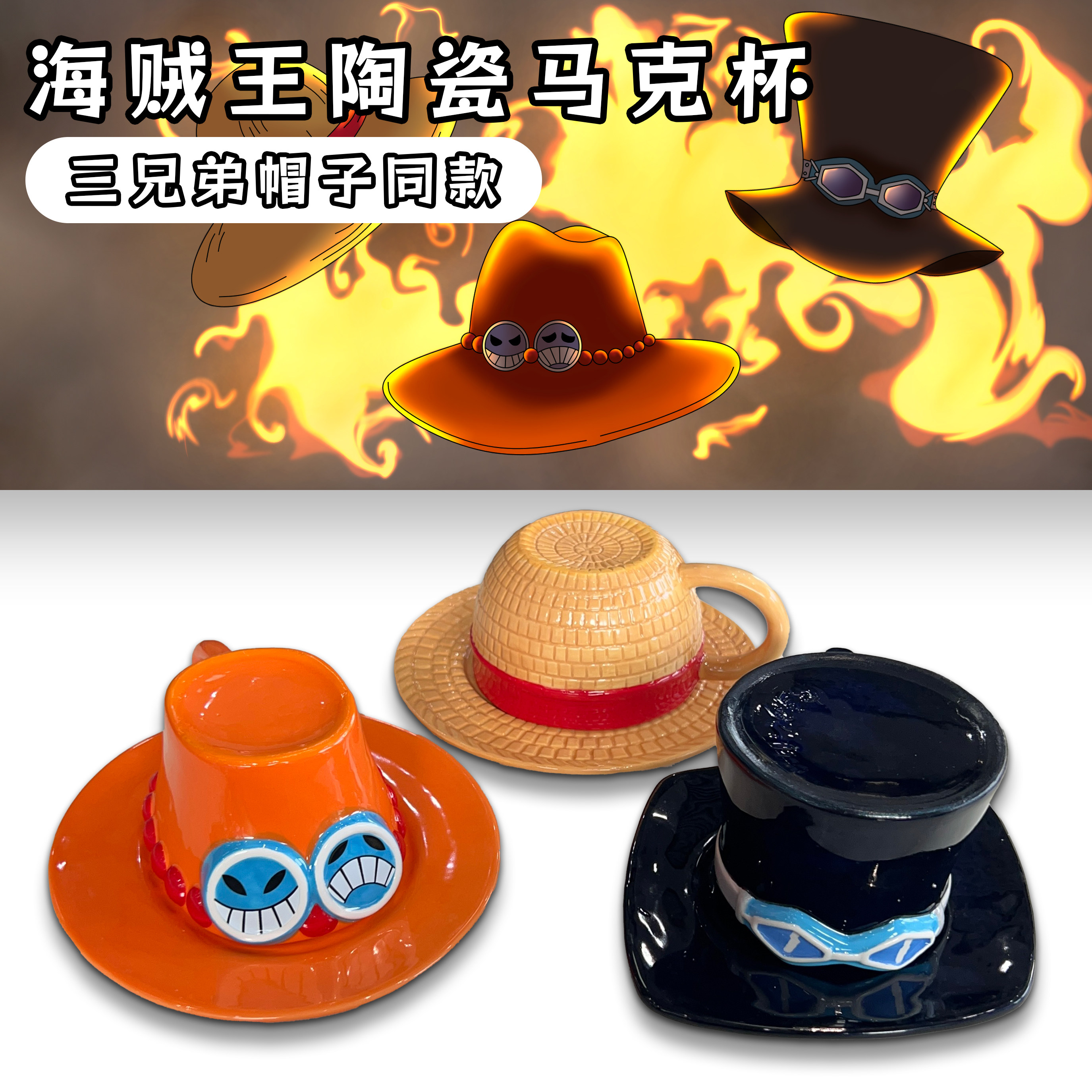 Collectible Asl Hat Ceramic Cup Ace Luffy Sabo Collection White Cloud Clay Mark Limited Edition 5000 Sets Figurine