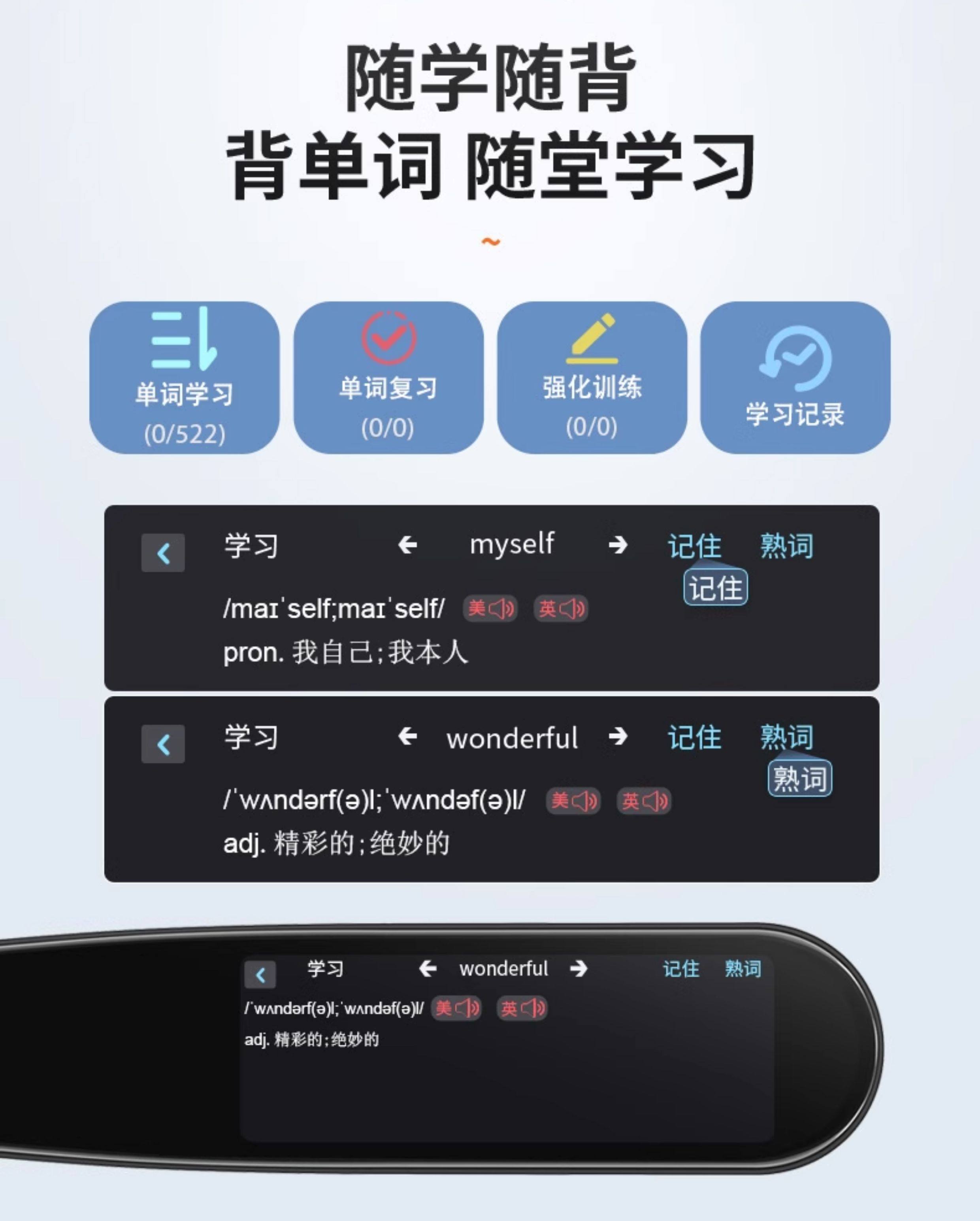Wenquxing Reading Pen Is a Universal Bilingual English Scanning Pen, a Multifunctional Scanning Pen, a Dictionary Pen, a Word Recognition Device for Elementary, Middle, and High School Students, an Electronic Dictionary, a Smart Translation Pen, an Offline Version with Synchronized Courses