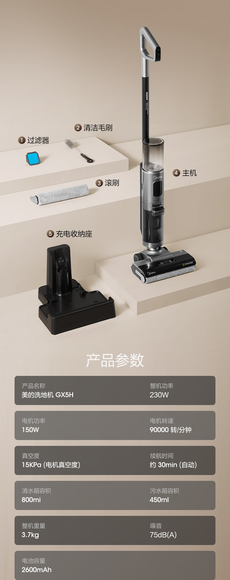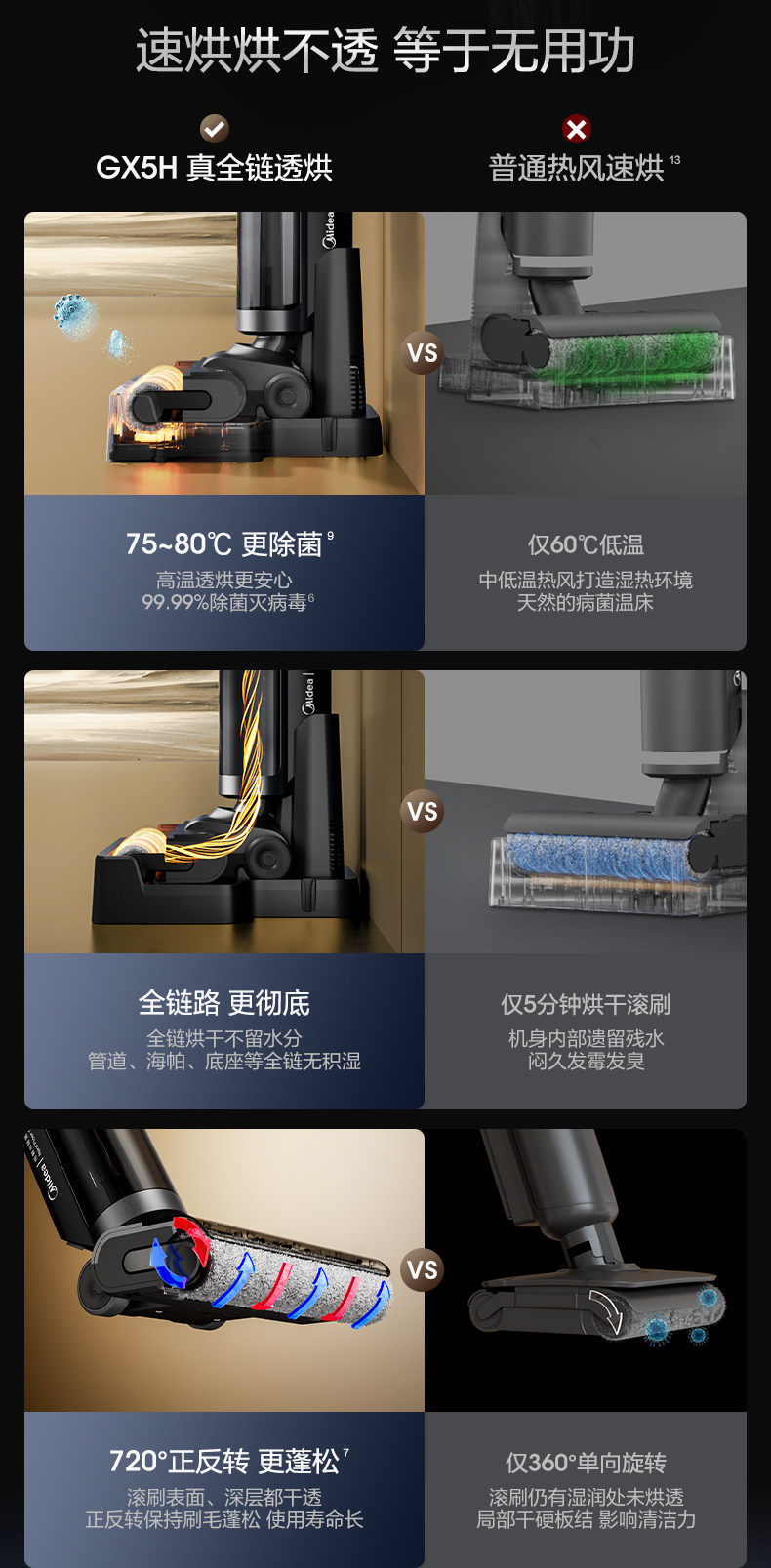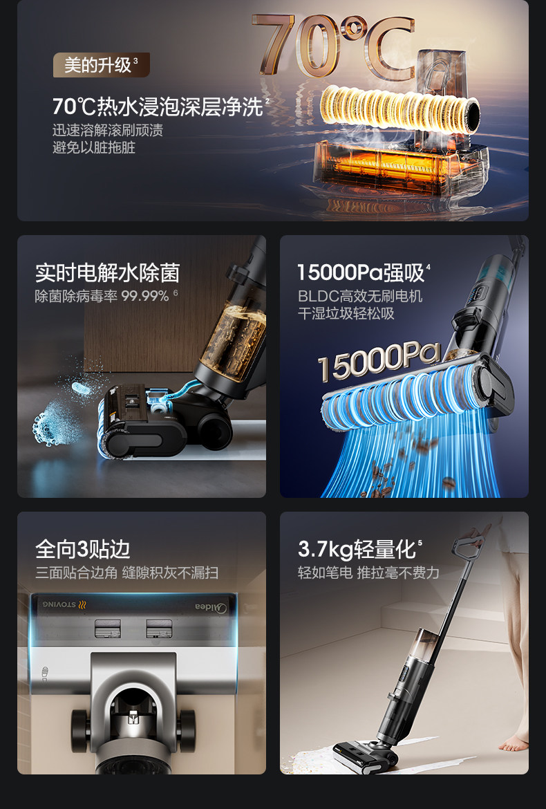 Midea Floor Washing Machine S60 Odor-Free Suction and Mopping All-In-One Machine Anti-Tangle High-Temperature Hot Washing Hot Drying Self-Cleaning Sterilization