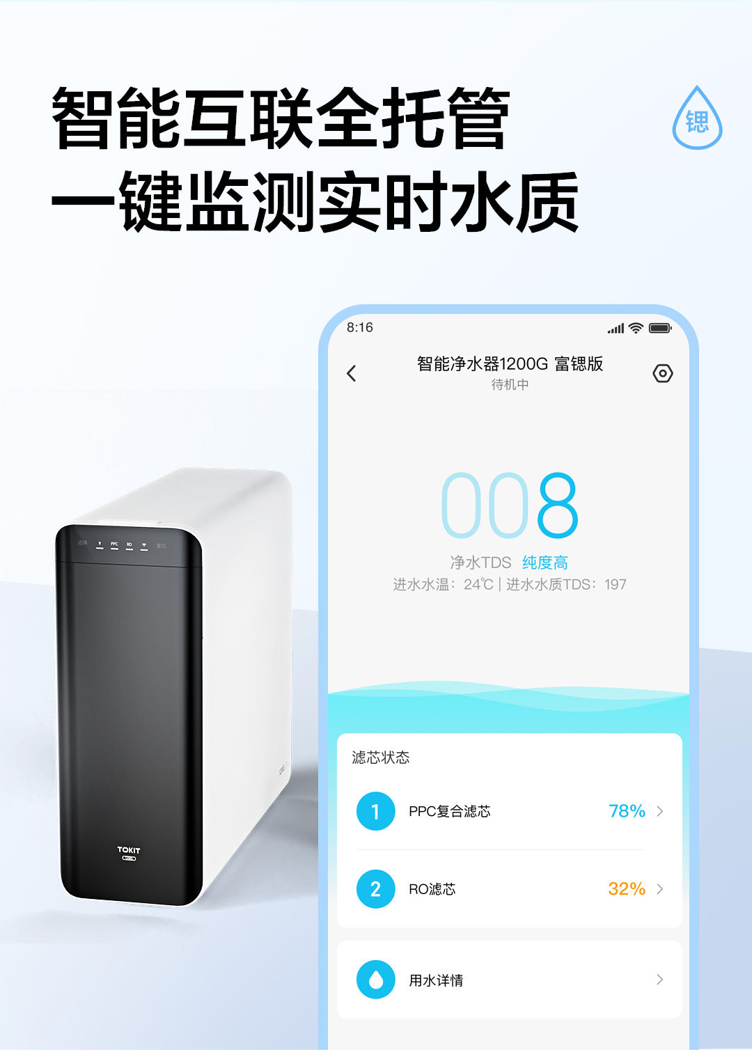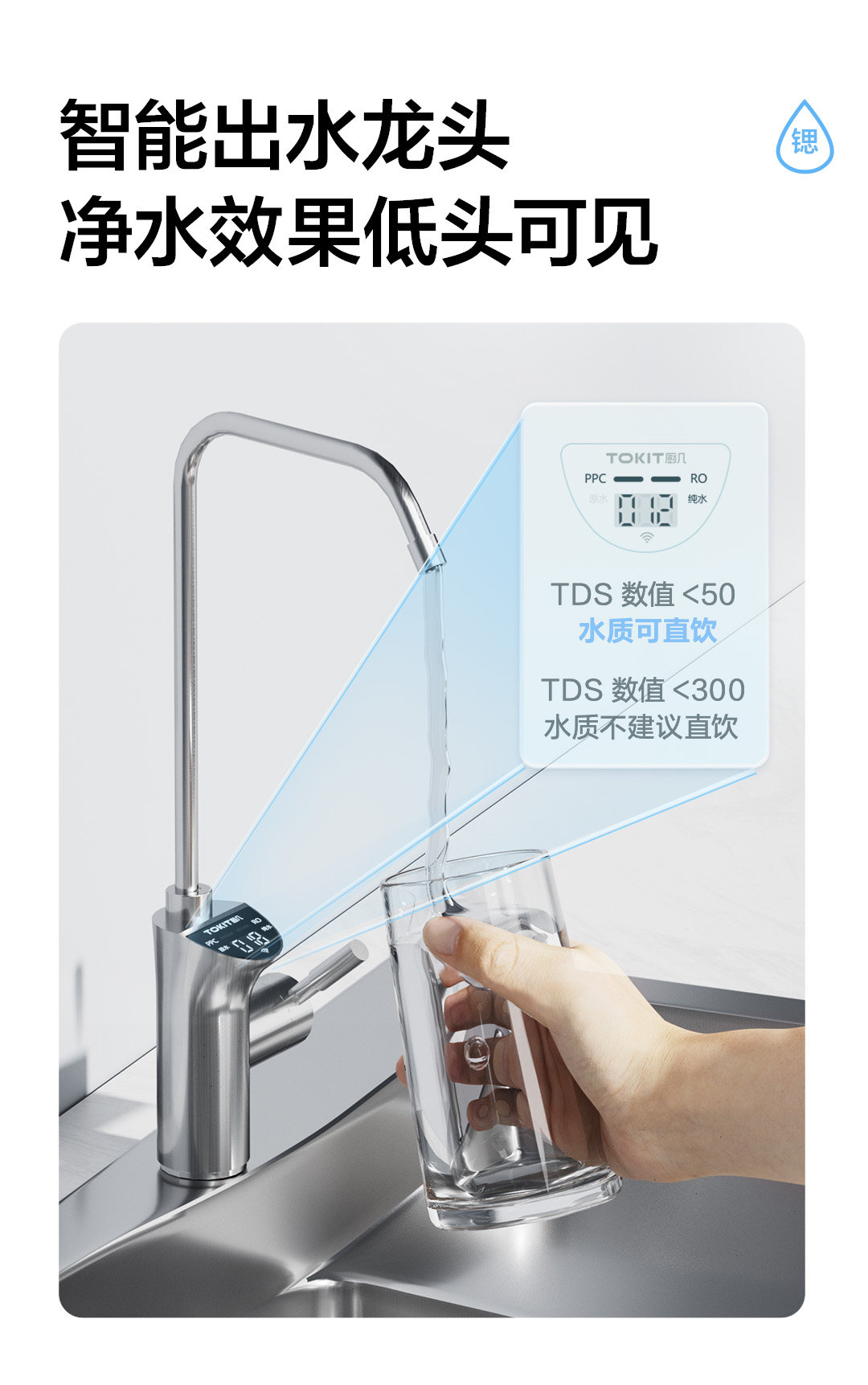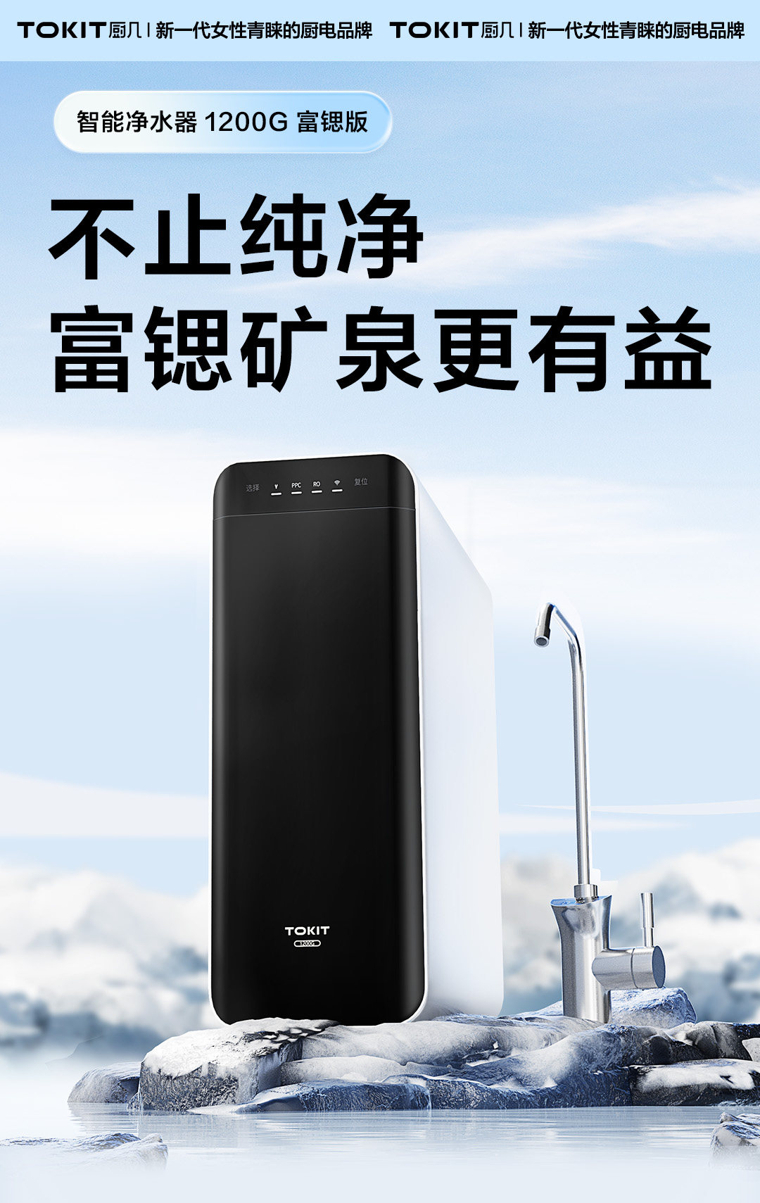 Tokit Kitchen Countertop Direct Drinking Machine 1200g Water Purifier with Strontium Mineralization Under-Sink Reverse Osmosis Water Purifier