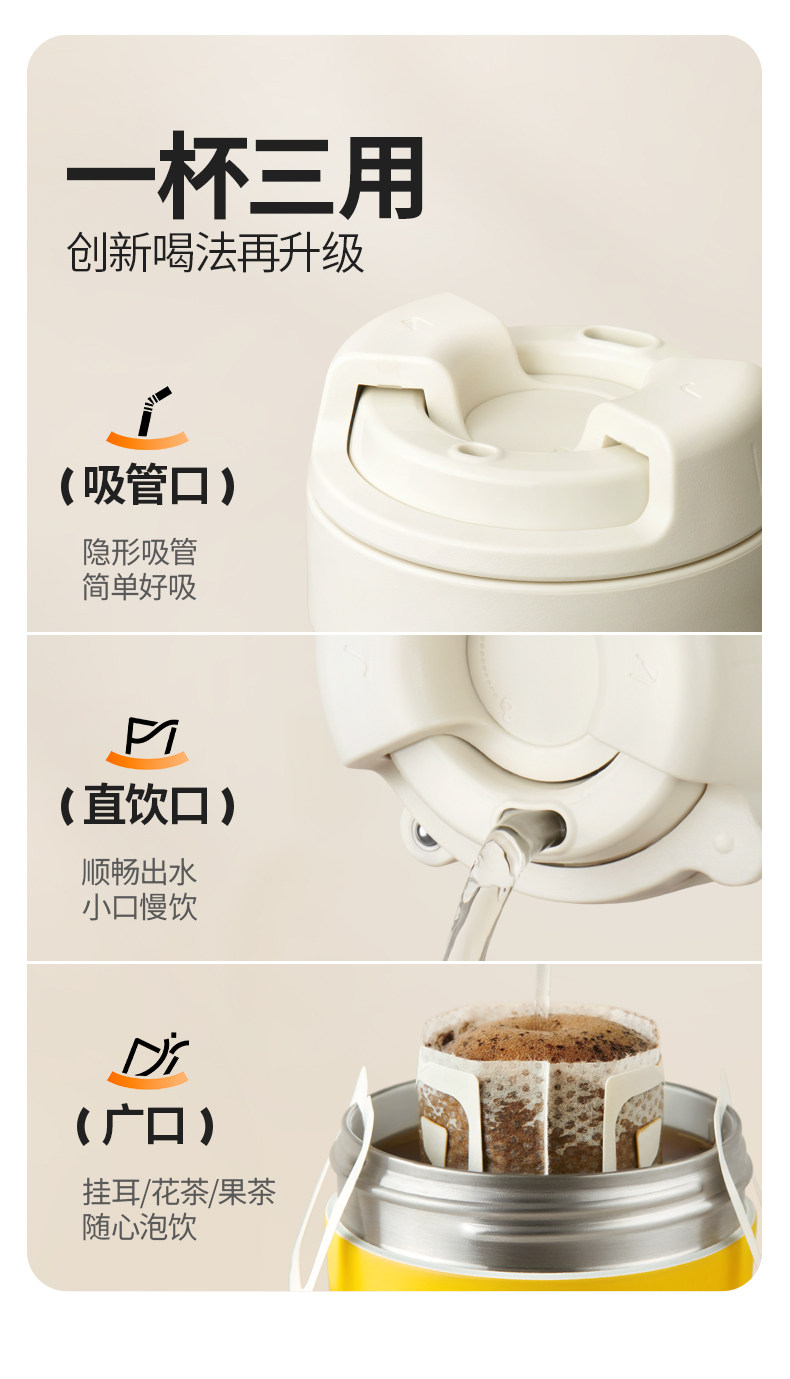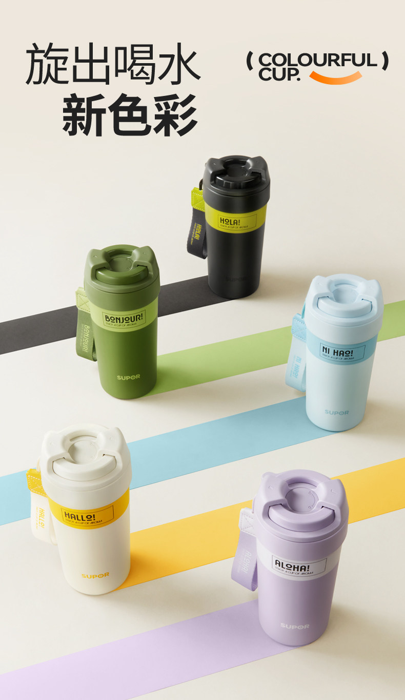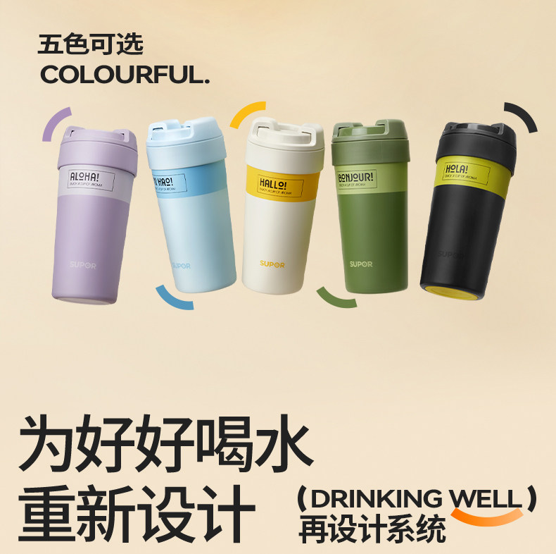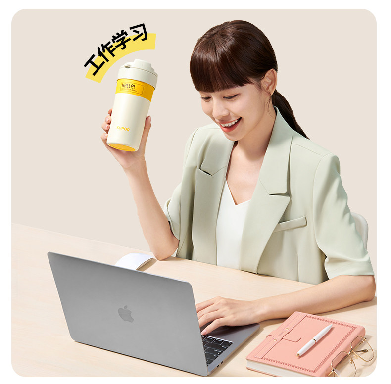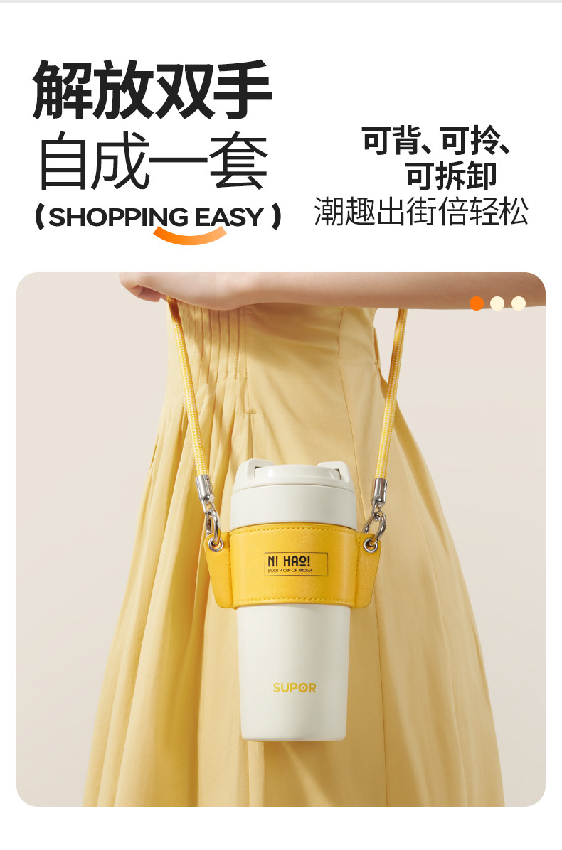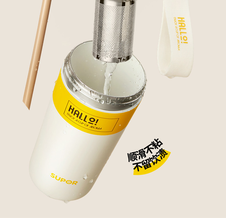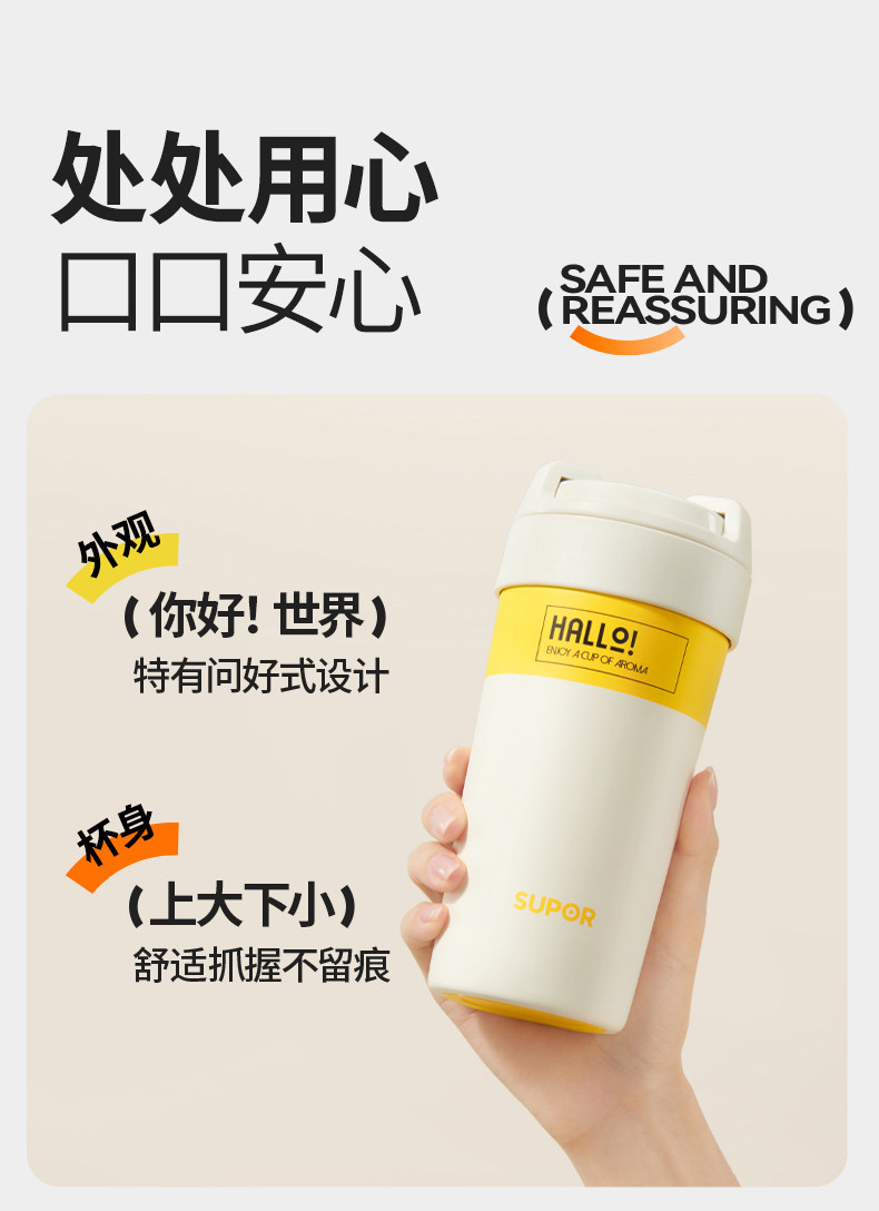 Supor Thermos Cup for Women, Coffee Cup with High Aesthetic Appeal, Antibacterial Ceramic Liner, Large Capacity Tea and Water Separation Cup