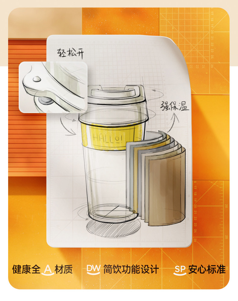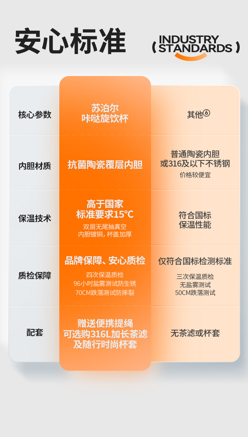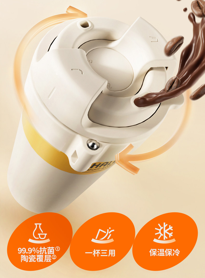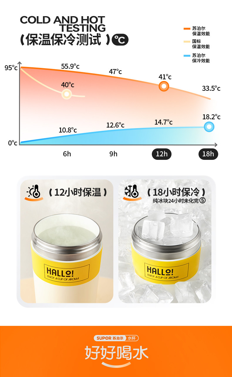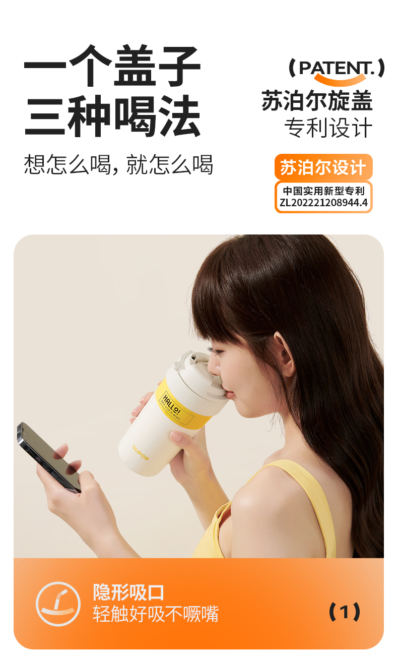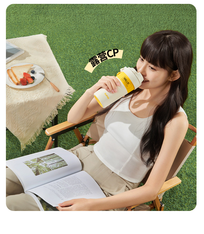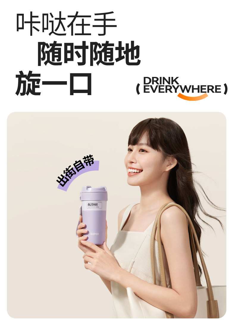 Supor Thermos Cup for Women, Coffee Cup with High Aesthetic Appeal, Antibacterial Ceramic Liner, Large Capacity Tea and Water Separation Cup
