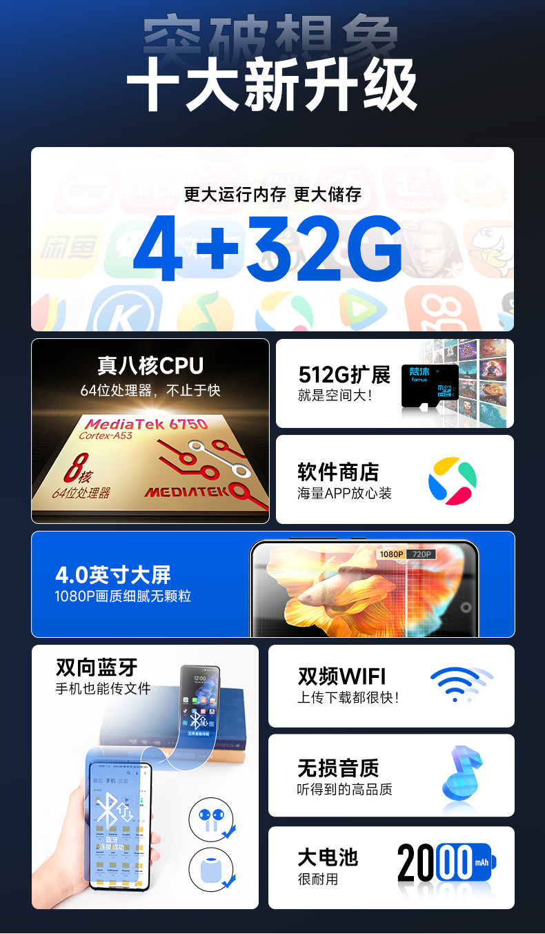 Fanmu Mp4Wifi Can Access the Internet, Mp3 Player, Student Music Player, Smart Mp5 for Reading Novels, Mp6 for Watching Videos