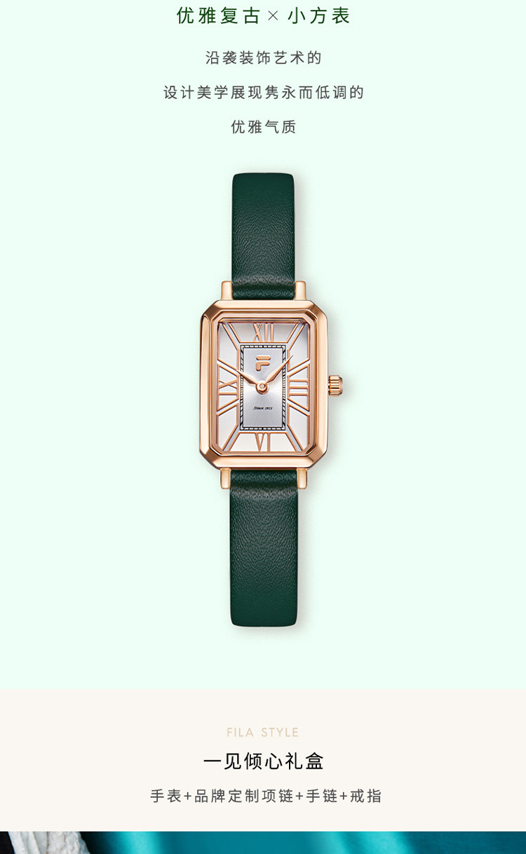 Fila Retro Watch, Light Luxury Niche Small Square Watch, Gift for Female Friends, Wristwatch Birthday Gift Box 6264