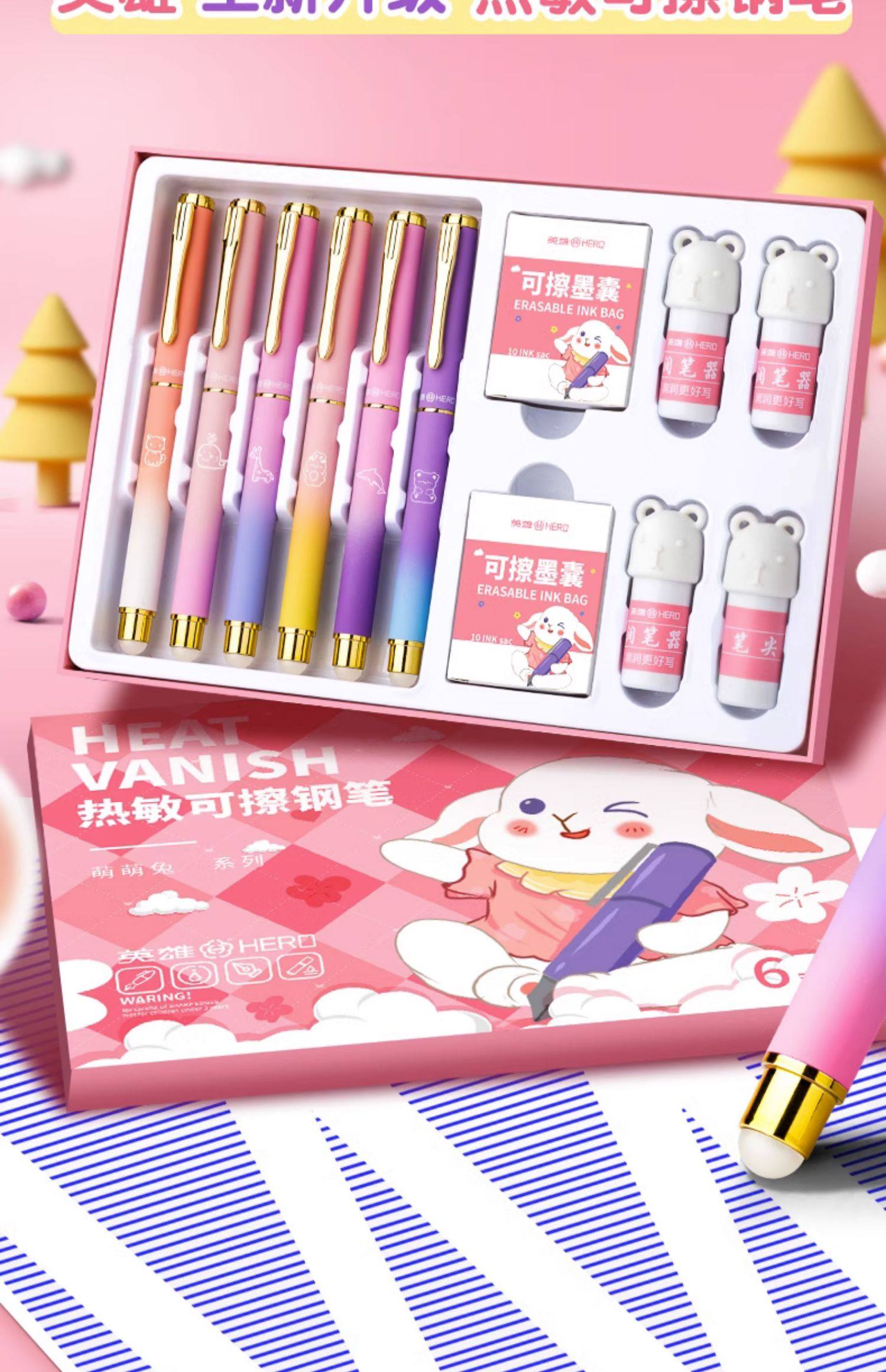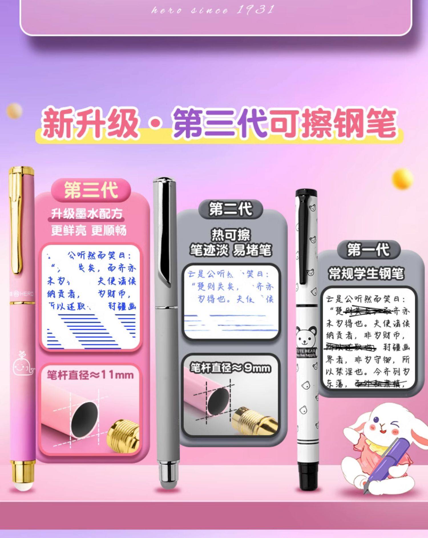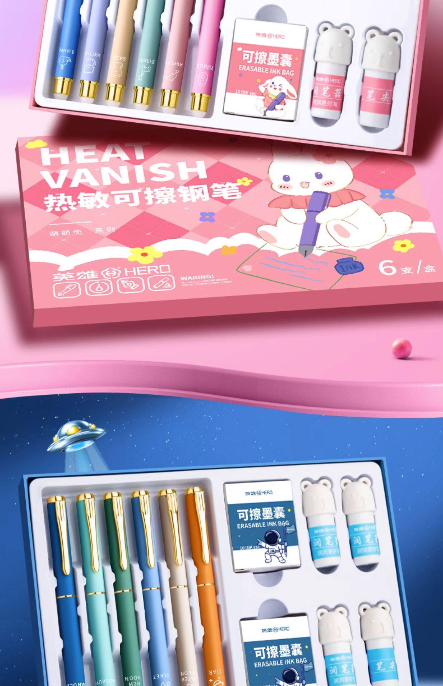 Hero Brand Erasable Pen for Third-Grade Elementary School Students, Specially Designed for Girls, Thermosensitive Erasable Pen for Posture-Correcting Handwriting Practice, High Aesthetic Appeal, Replaceable Ink Cartridges, Children's Fine Tip, Black Technology, Officially Authorized