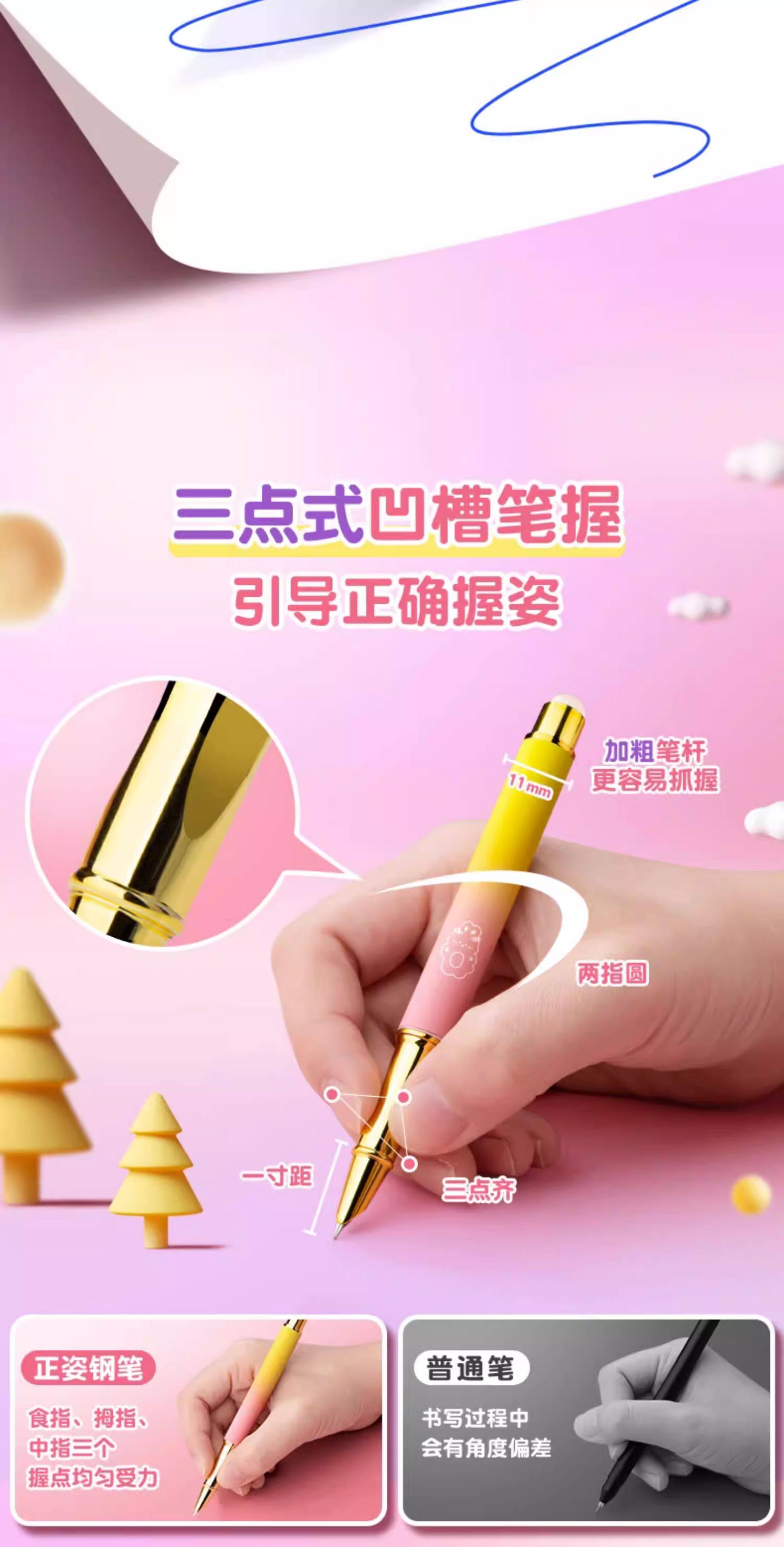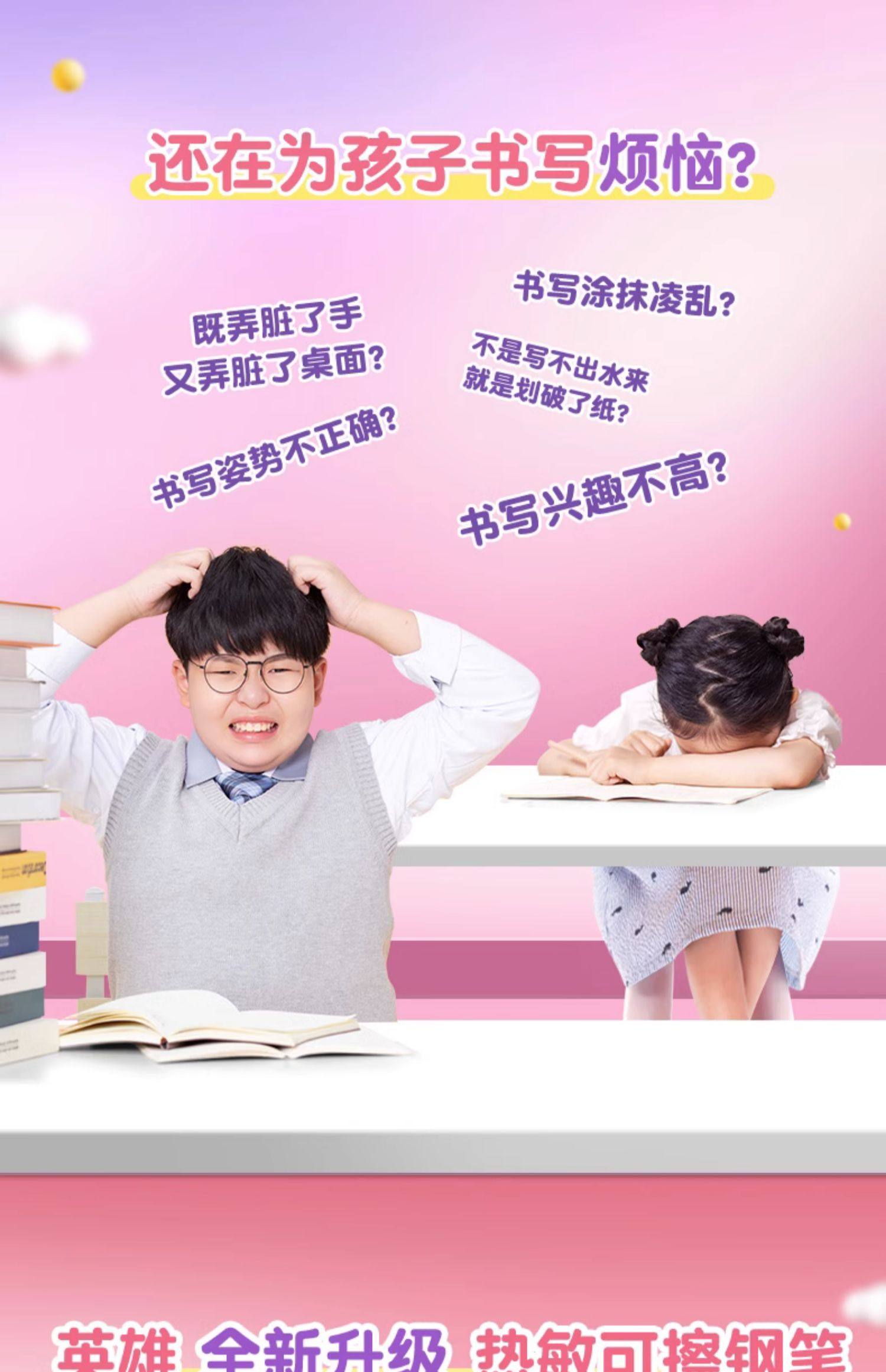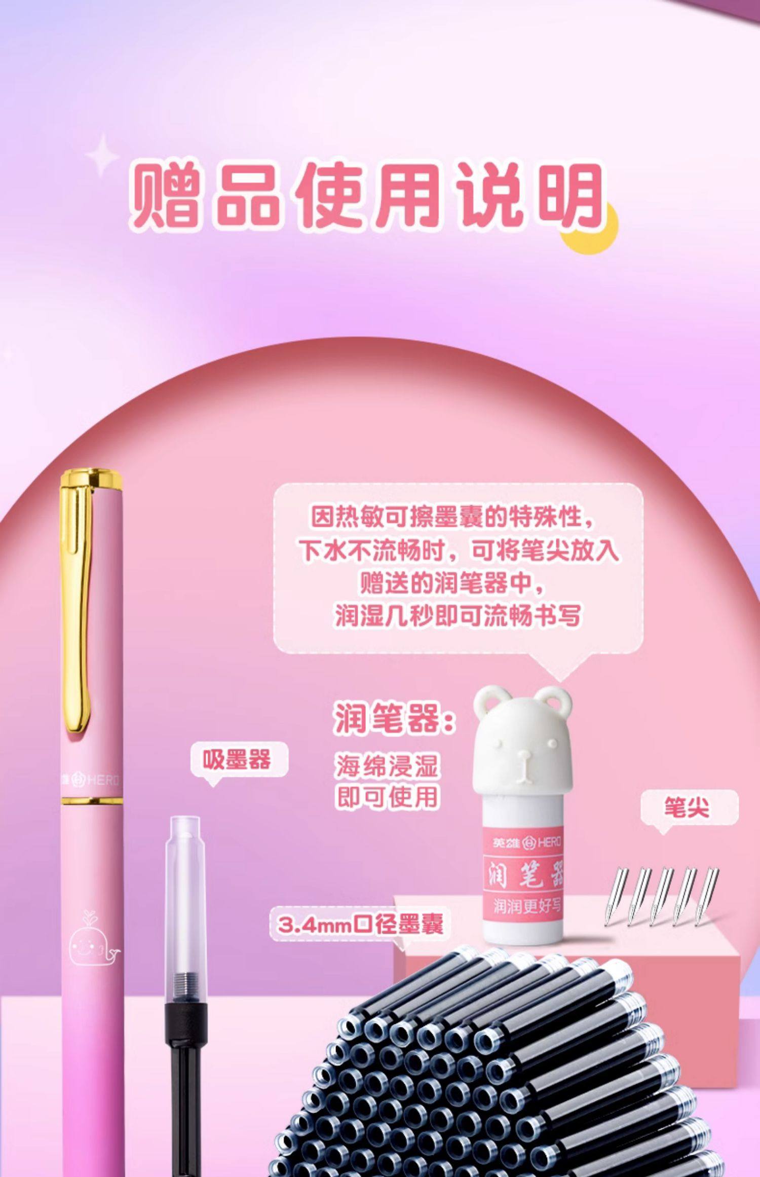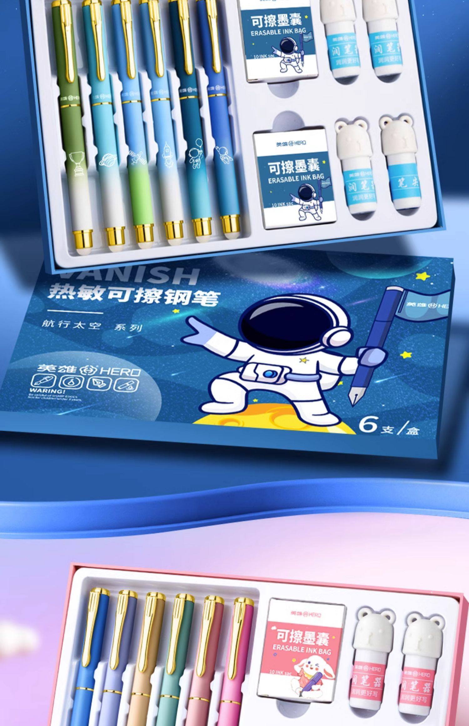 Hero Brand Erasable Pen for Third-Grade Elementary School Students, Specially Designed for Girls, Thermosensitive Erasable Pen for Posture-Correcting Handwriting Practice, High Aesthetic Appeal, Replaceable Ink Cartridges, Children's Fine Tip, Black Technology, Officially Authorized