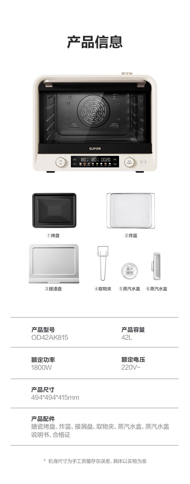 Supor Electric Oven Air Fryer All-In-One Machine 42L Convection Oven Baking Machine Household Enamel Multi-Function Large Capacity