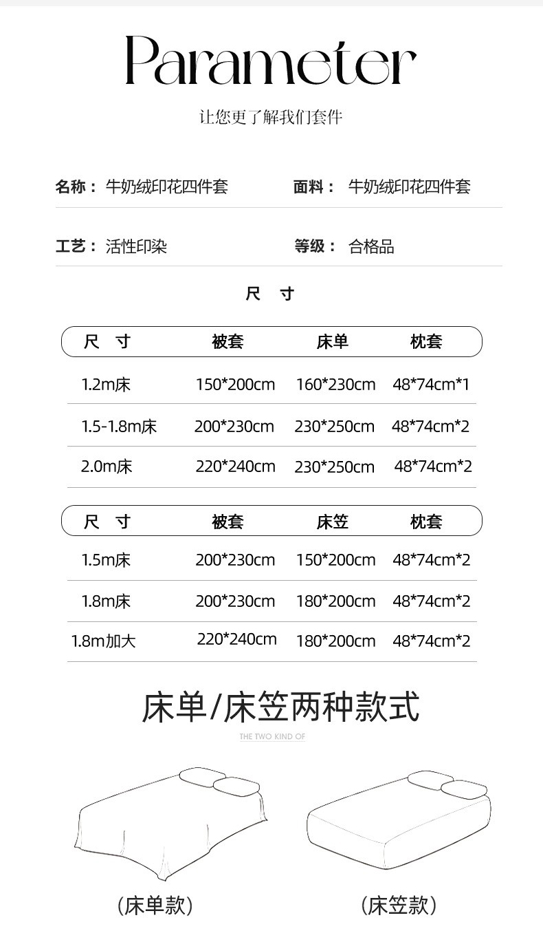 Applicable Bed Size 0.9m Bed [Three-Piece Bed Sheet Set] - Suitable for 150X200Cm Quilt Core,1.2m Bed [Three-Piece Bed Sheet Set] - Suitable for 150X200Cm Quilt Core,1.5m Bed [Sheet Set of Four] - Suitable for 200X230Cm Quilt Core,1.8m Bed [Sheet Set of Four] - Suitable for 200X230Cm Quilt Core,2.0m Bed [Sheet Set of Four] - Suitable for 220X240Cm Quilt Core,1.5m Bed [Four-Piece Fitted Sheet Set] - Suitable for 200X230Cm Quilt Core,1.8m Bed [Four-Piece Fitted Sheet Set] - Suitable for 200X230Cm Quilt Core