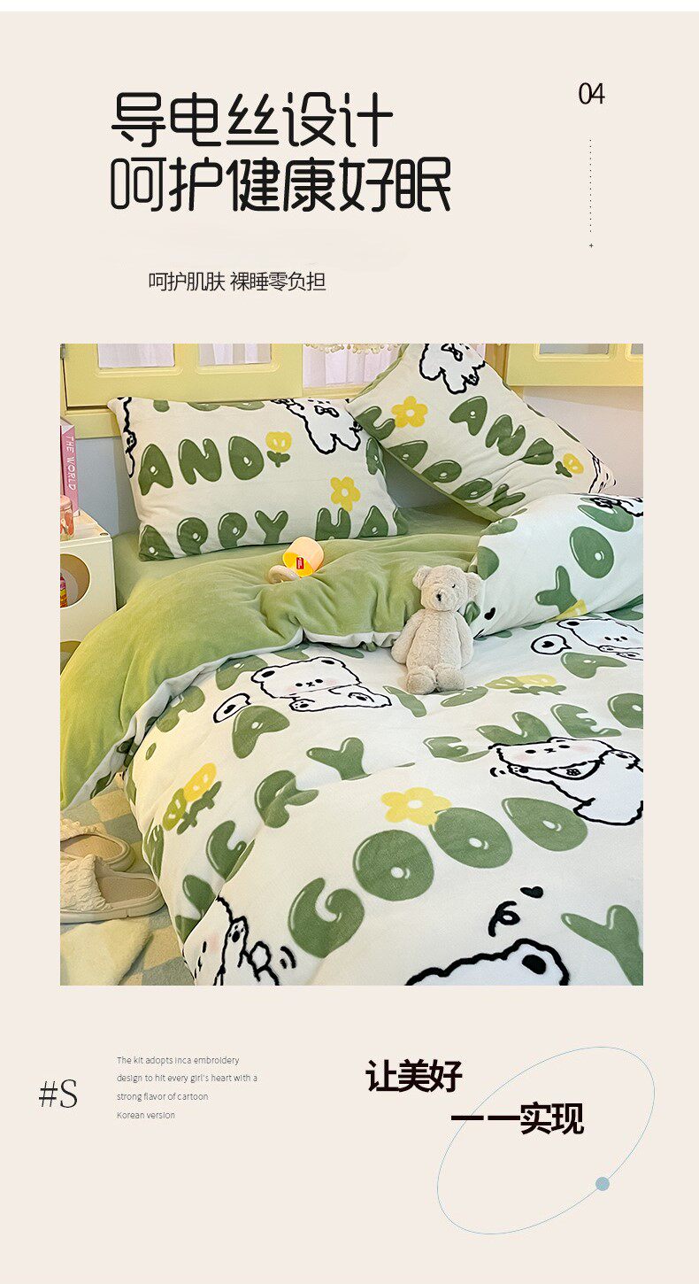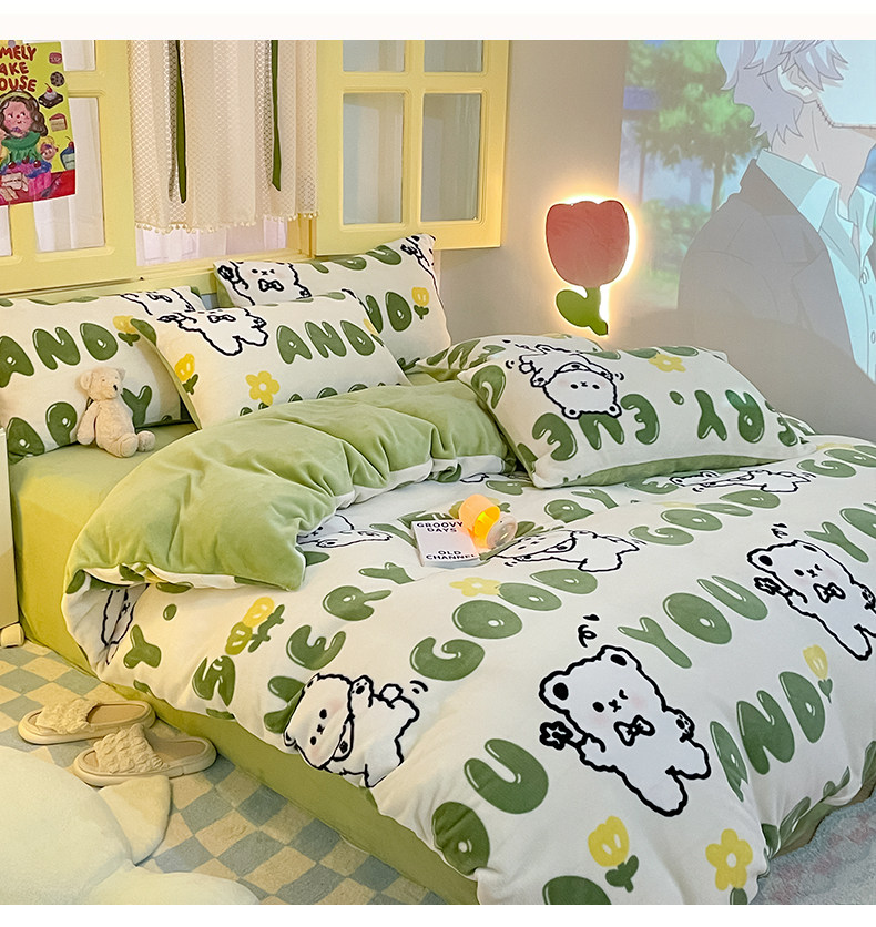 Catman Milk Velvet Bedding Four-Piece Set 2025 New Winter Fleece Coral Fleece Bed Sheet Duvet Cover Bedding Set