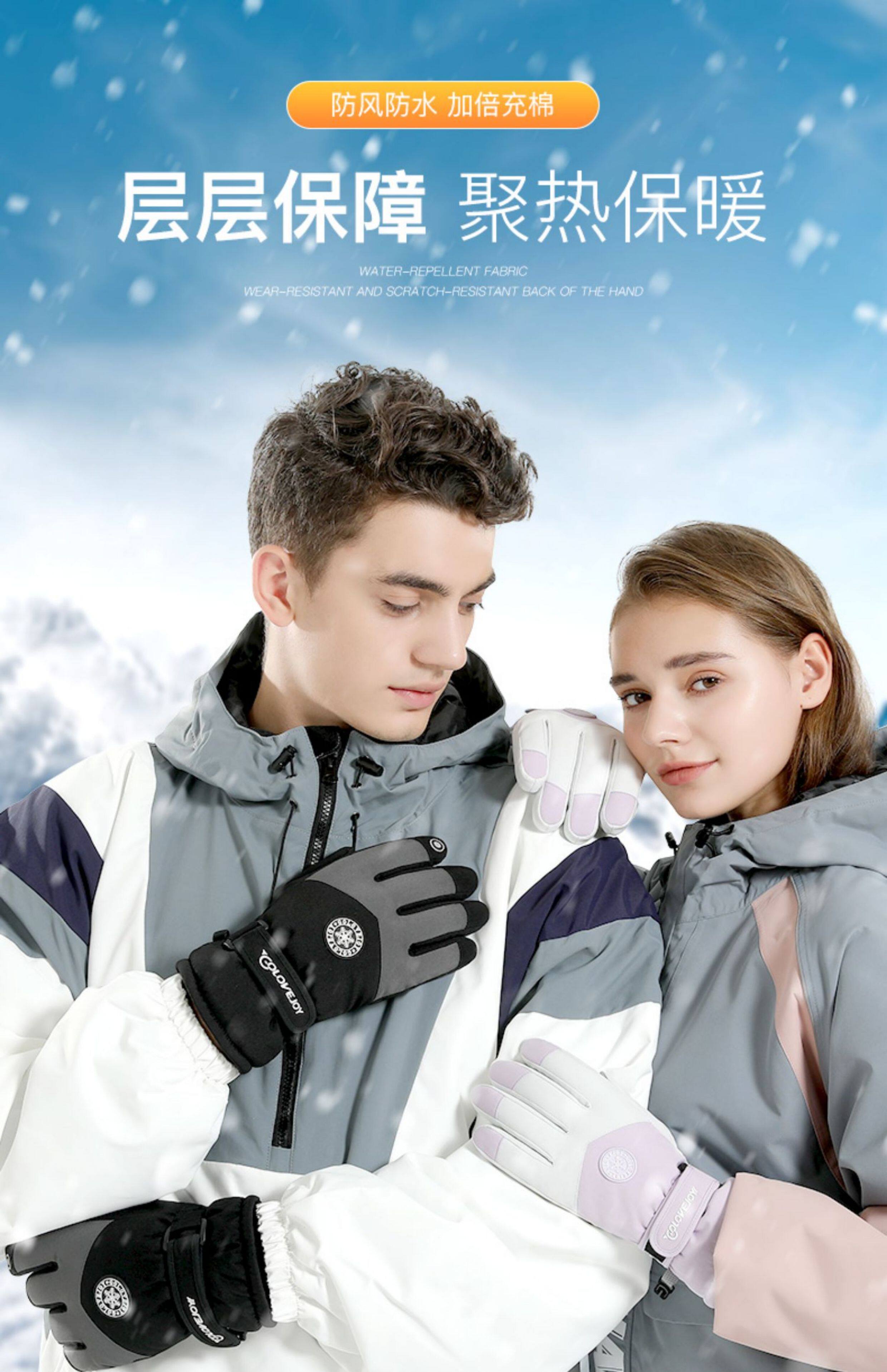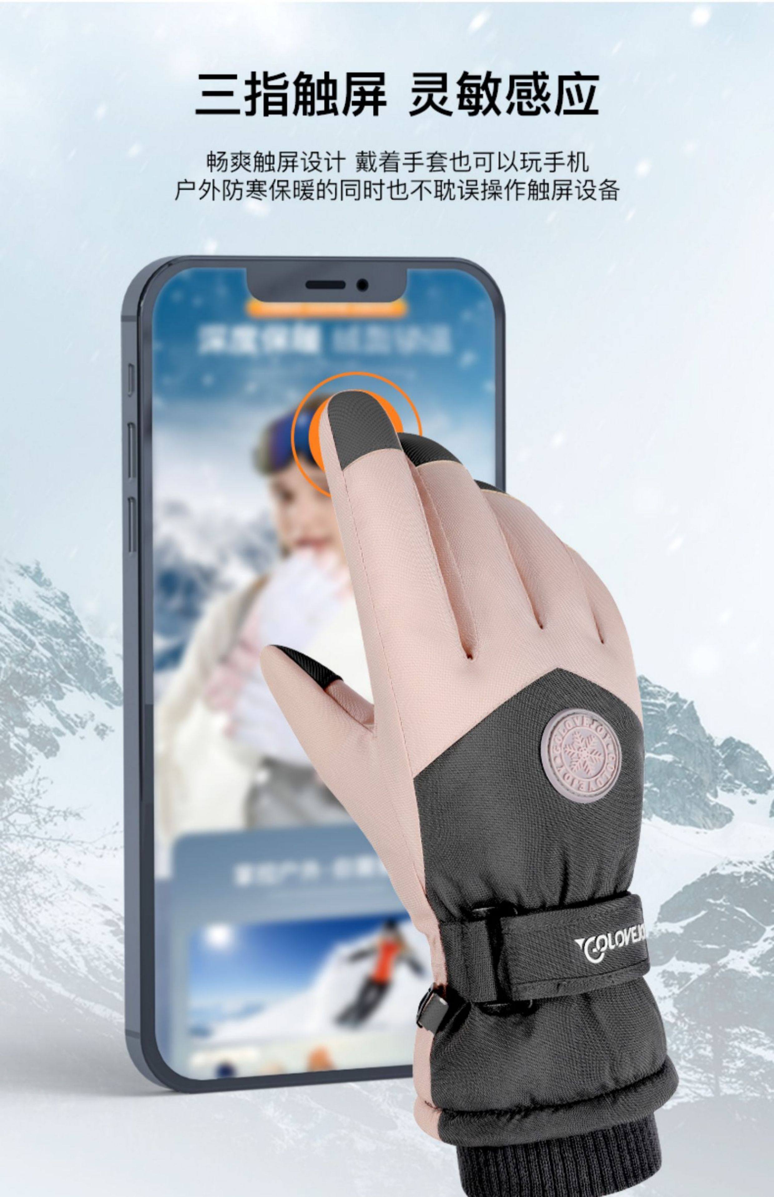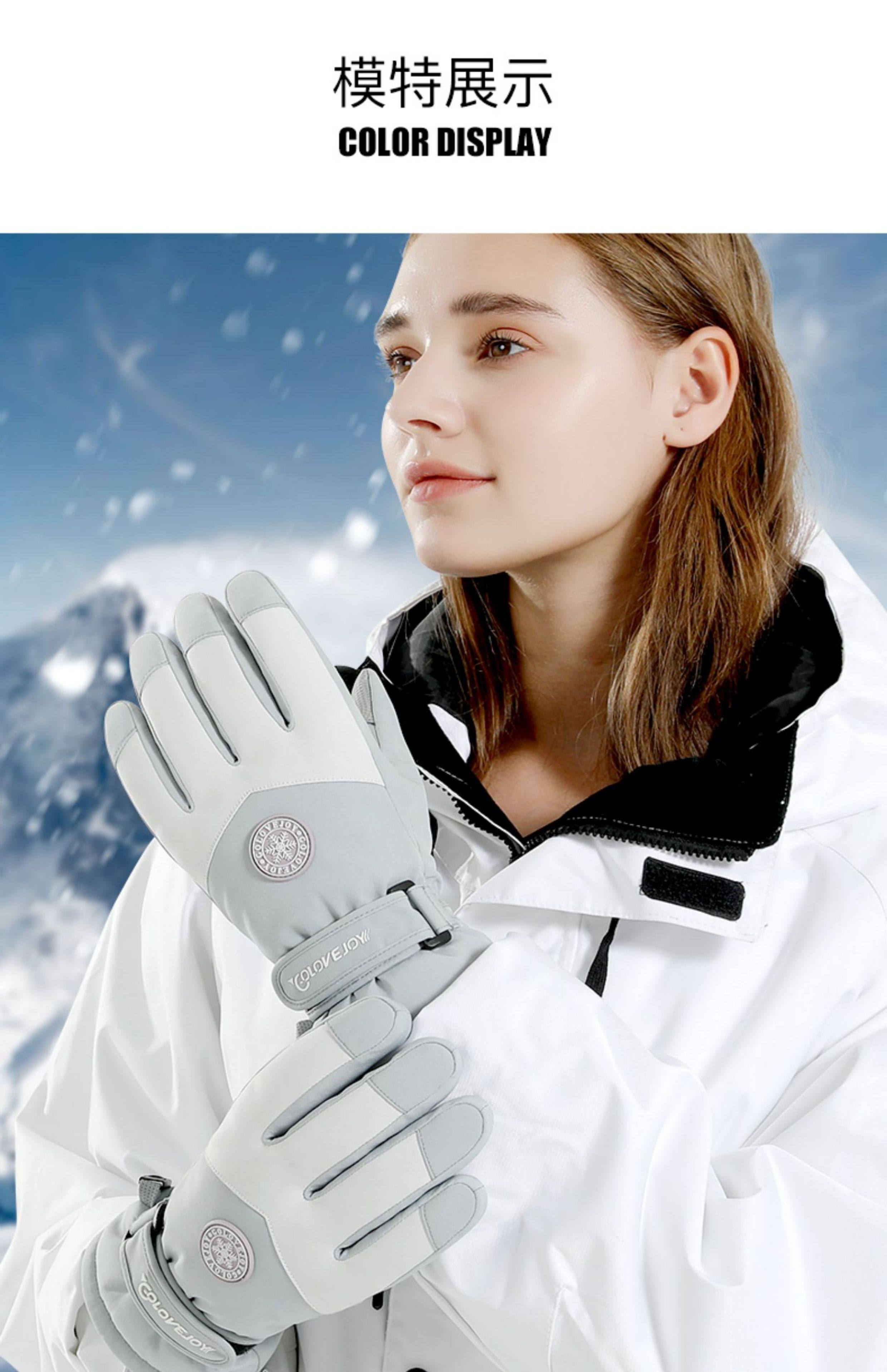 Ski Gloves, Professional Men's and Women's Winter Warm and Windproof Cycling Electric Motorcycle Cotton Waterproof Touch Screen Gloves