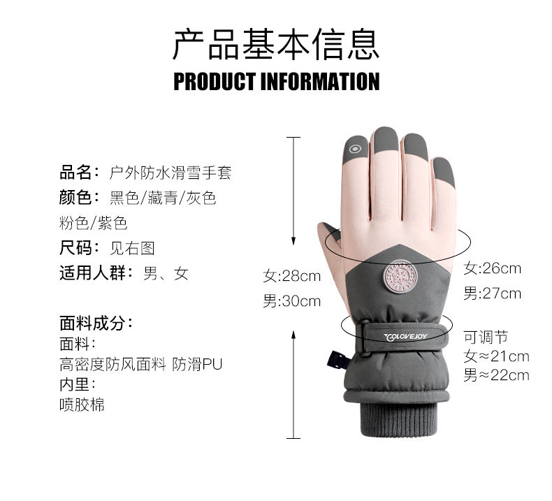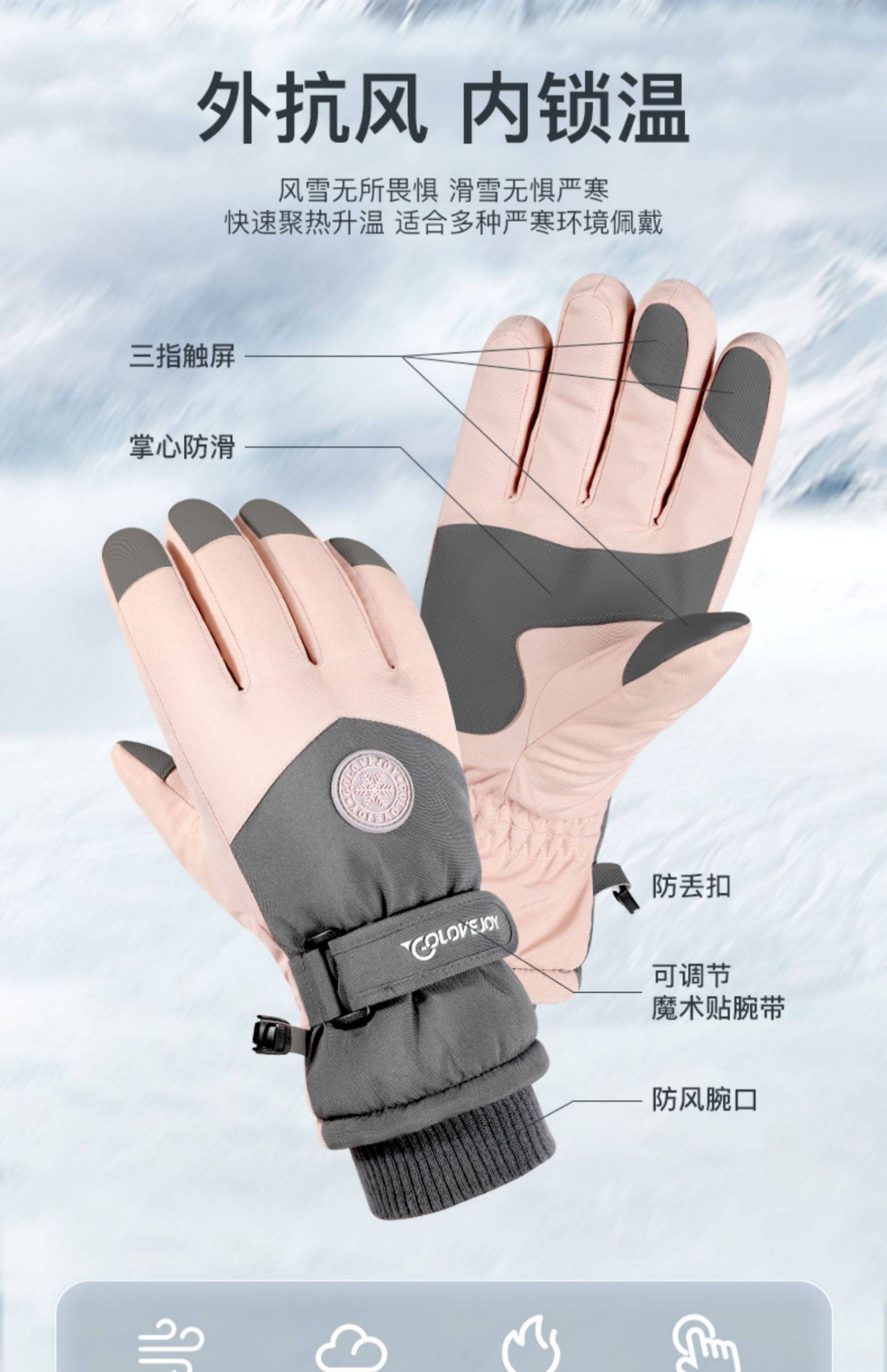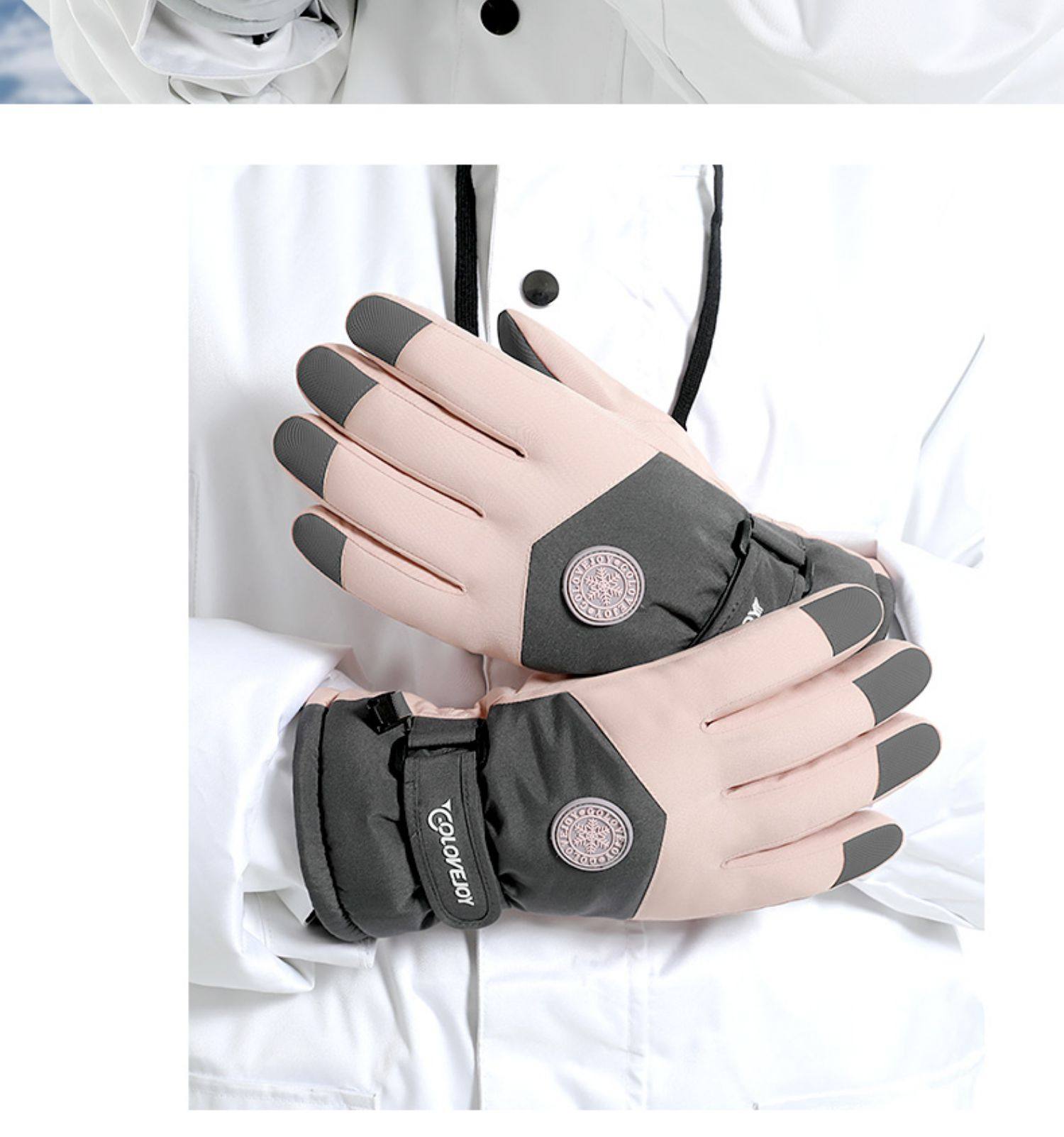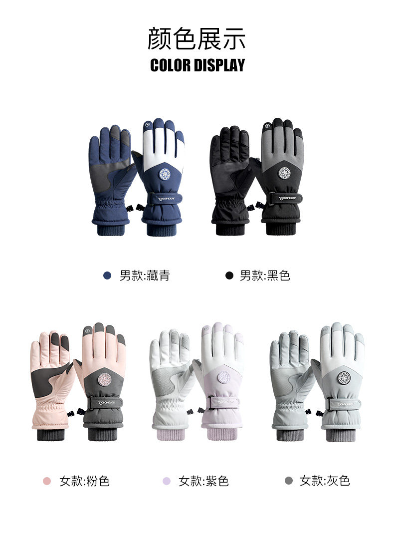 Ski Gloves, Professional Men's and Women's Winter Warm and Windproof Cycling Electric Motorcycle Cotton Waterproof Touch Screen Gloves
