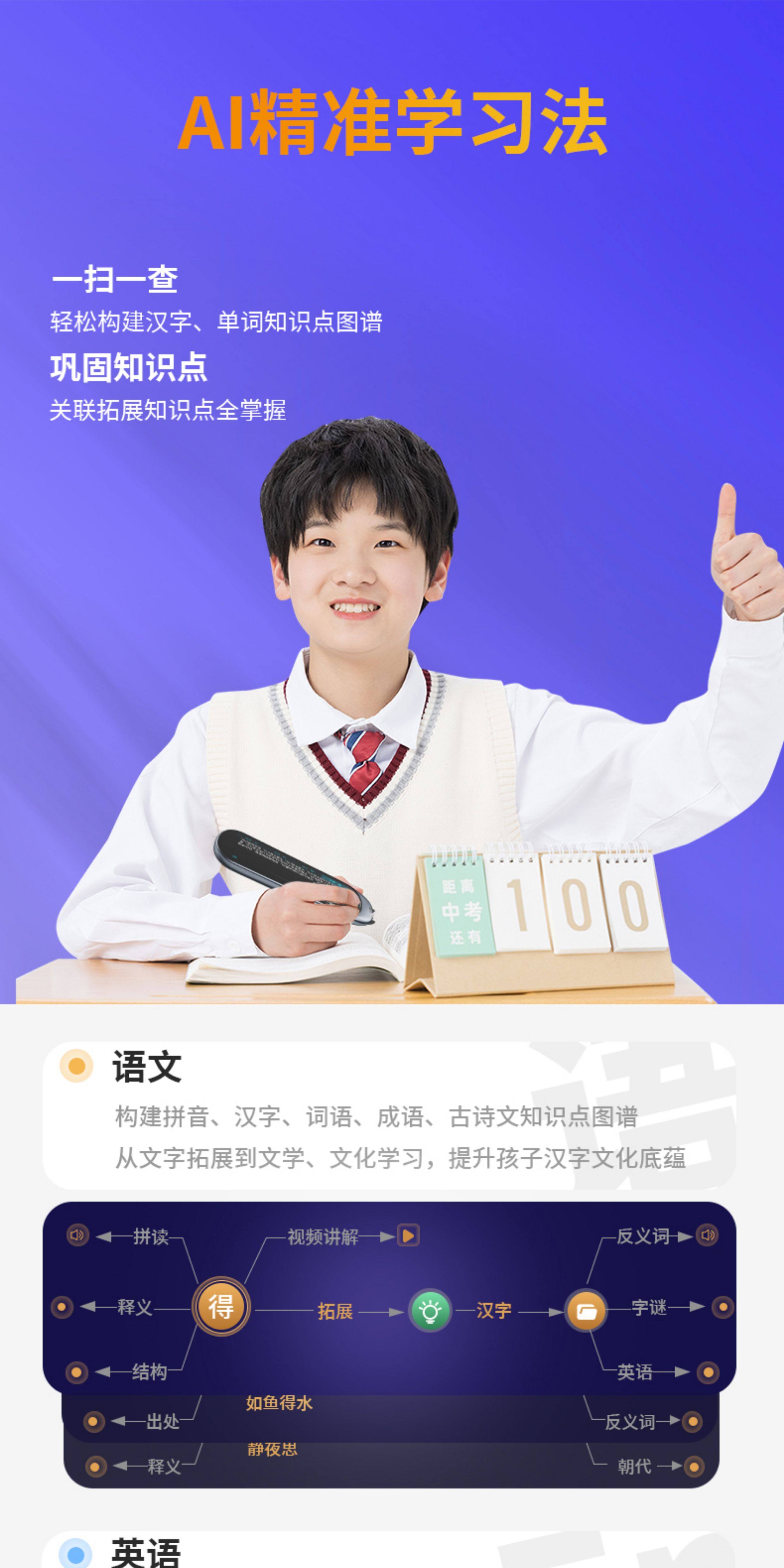 Alpha Dictionary Pen for Elementary, Middle, and High School Synchronized Textbooks, English Word Scanning, Intelligent Universal Learning Point-Reading Pen