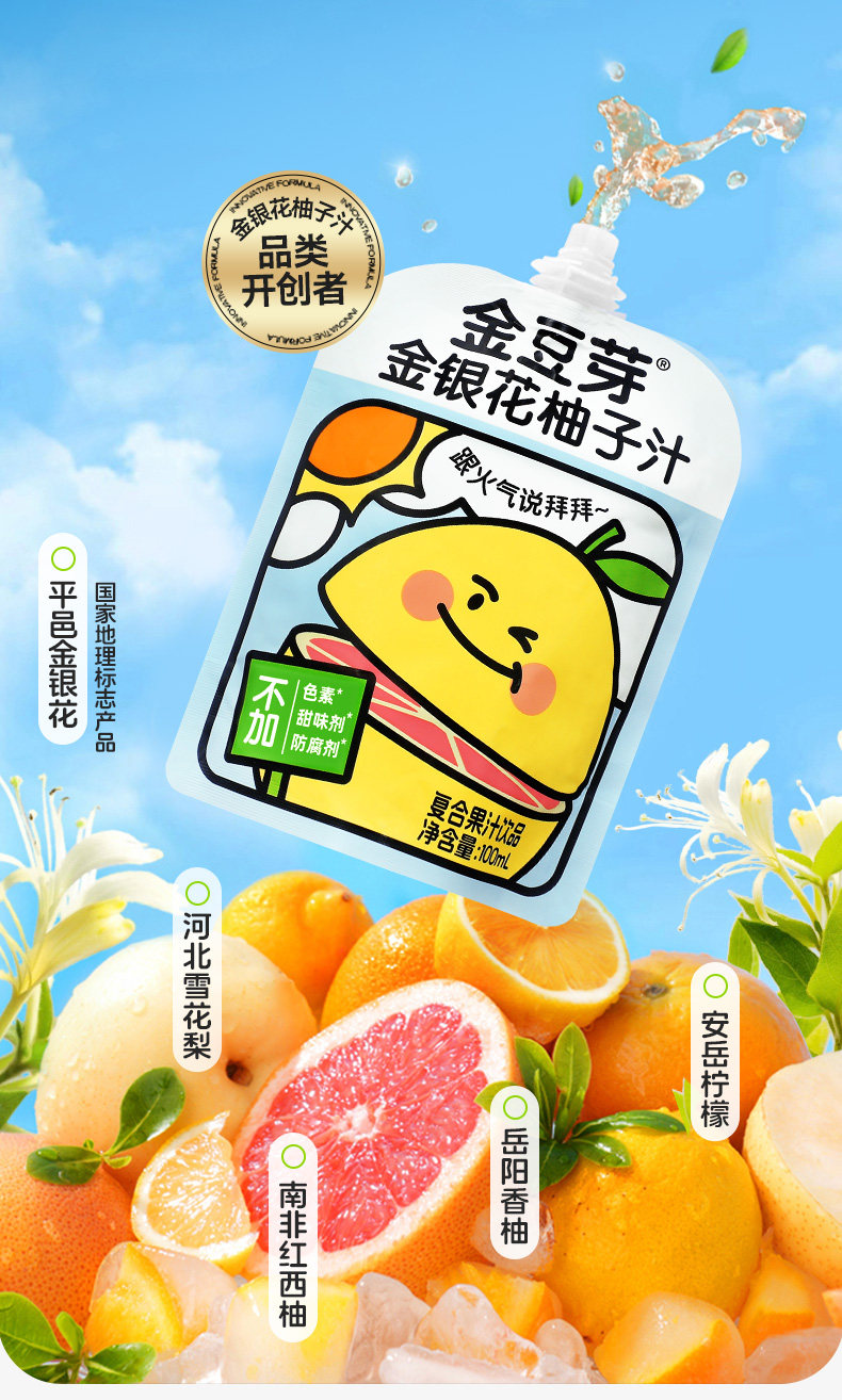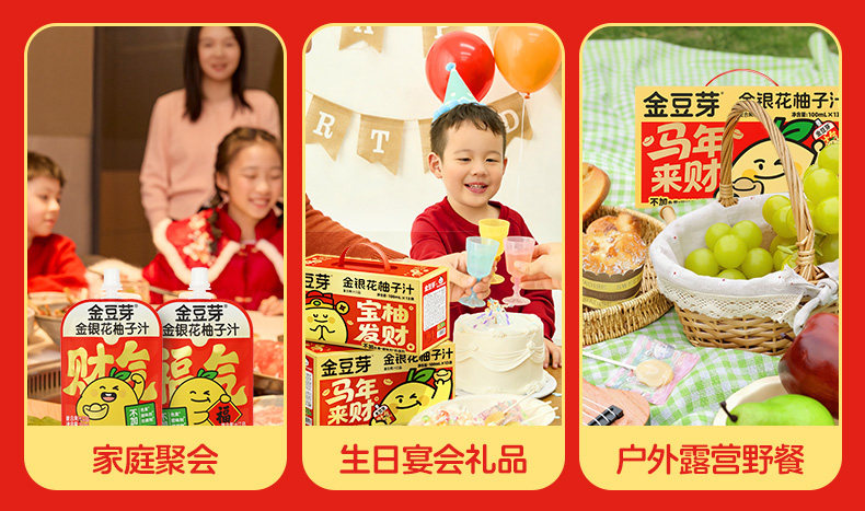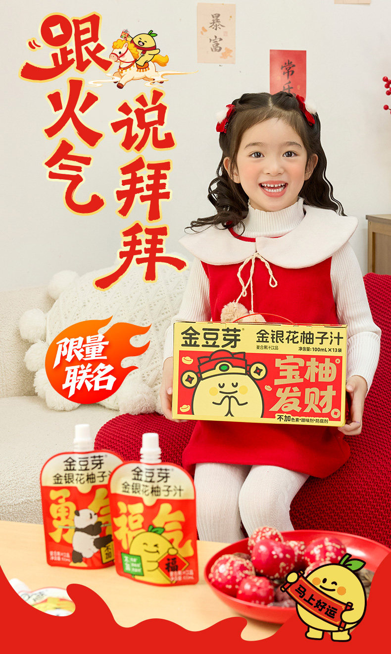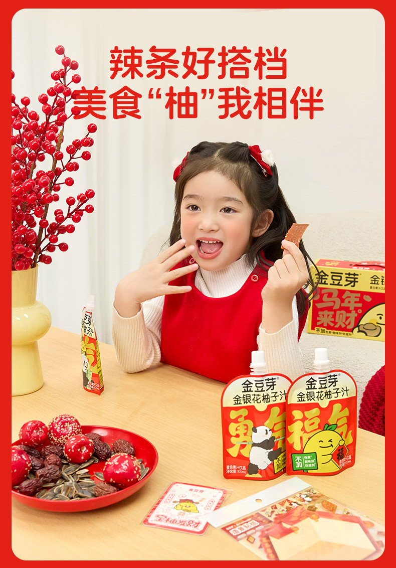 [New Year Gift] Golden Bean Sprouts, Honeysuckle, and Pomelo Juice Tea - Ready-To-Drink Gift Box for Children, Refreshing Drink for Hot Pot