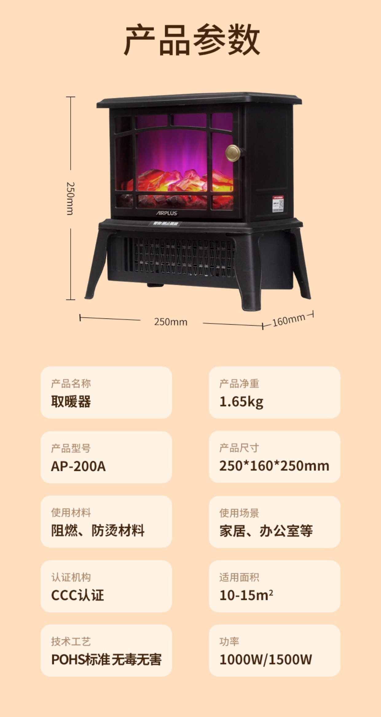 | Color Classification | AP-FP202 - Floor-standing fireplace丨3D dynamic flame丨0-30 applicable丨Safety protection,AP-200A Desktop Heating丨3D Dynamic Flame丨0-15 Suitable丨Flame Retardant and Anti-scalding丨Heat immediately after opening,[Ap-Fp401M-P] Solid Wood Material | 3D Dynamic Flame | 0-20㎡Applicable | Flame Retardant and Anti-Scalding,[Ap-Fp203-T3] Upgraded Three-Sided Surround 3D Flame | Adjustable Temperature | 0-40㎡Applicable | Safety Protection,High-Quality Security: Flame-Retardant Materials, Anti-Scald Body, Overheating Protection |