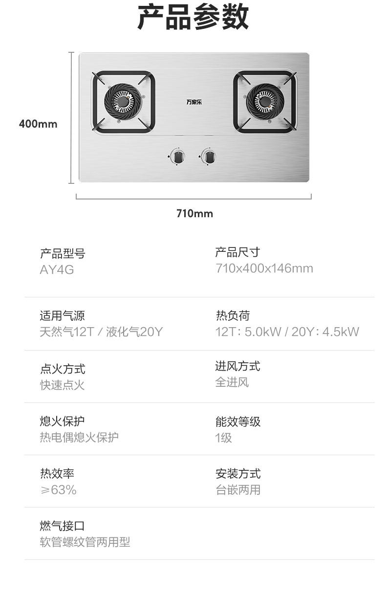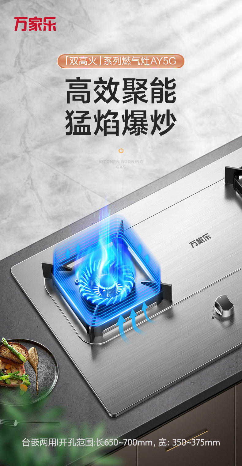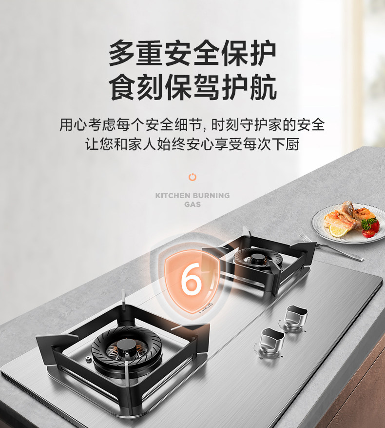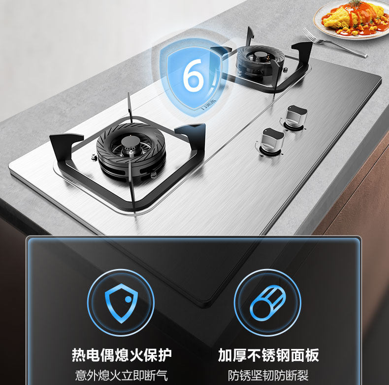 Midea Ay4G/Ay5G Stainless Steel Built-In Gas Stove for Home Kitchen, Natural Gas and Liquefied Gas