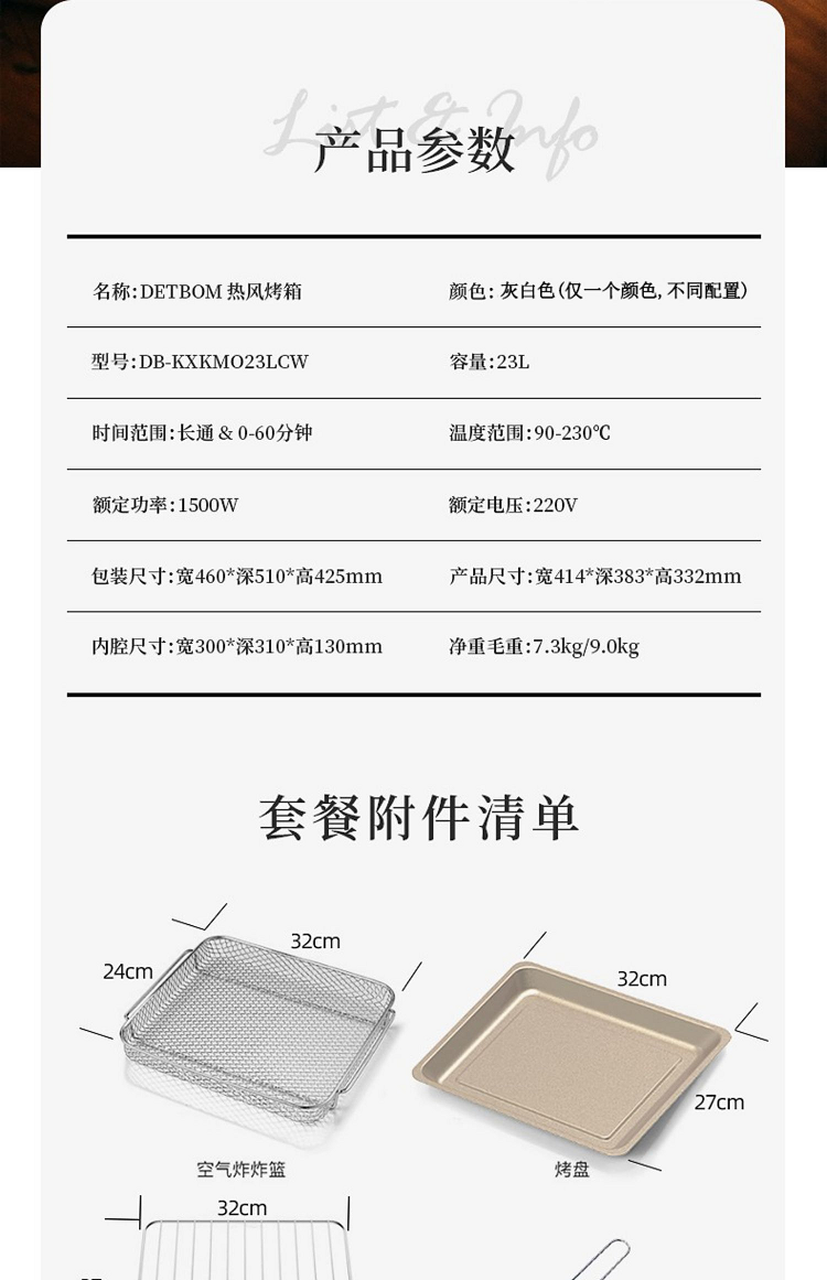 Debao Ma Air Fryer and Oven Combo 23L Electric Oven Fully Automatic Baking and Fermentation Multifunctional Household Appliance