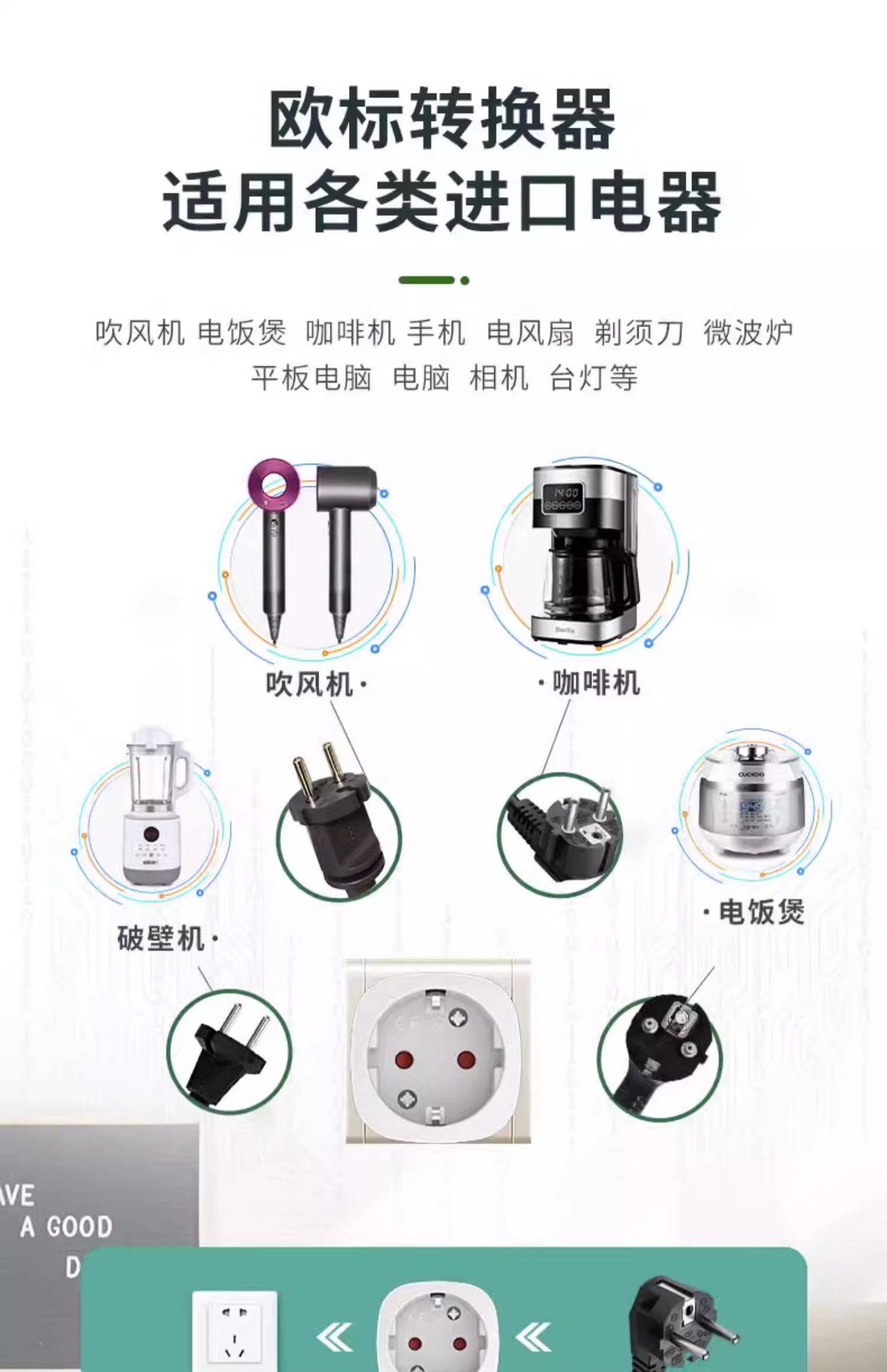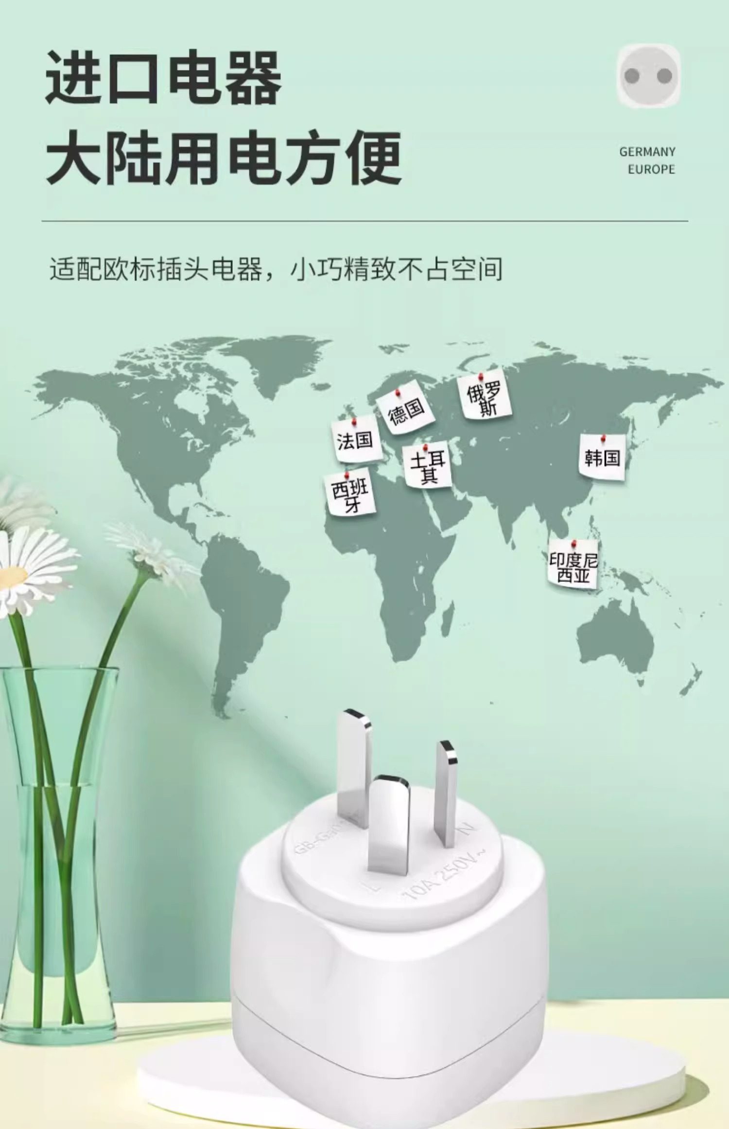 European Standard German Standard to National Standard Round Plug Adapter for Korea, Germany, Europe, Russia, Foreign Sockets, for Use in China