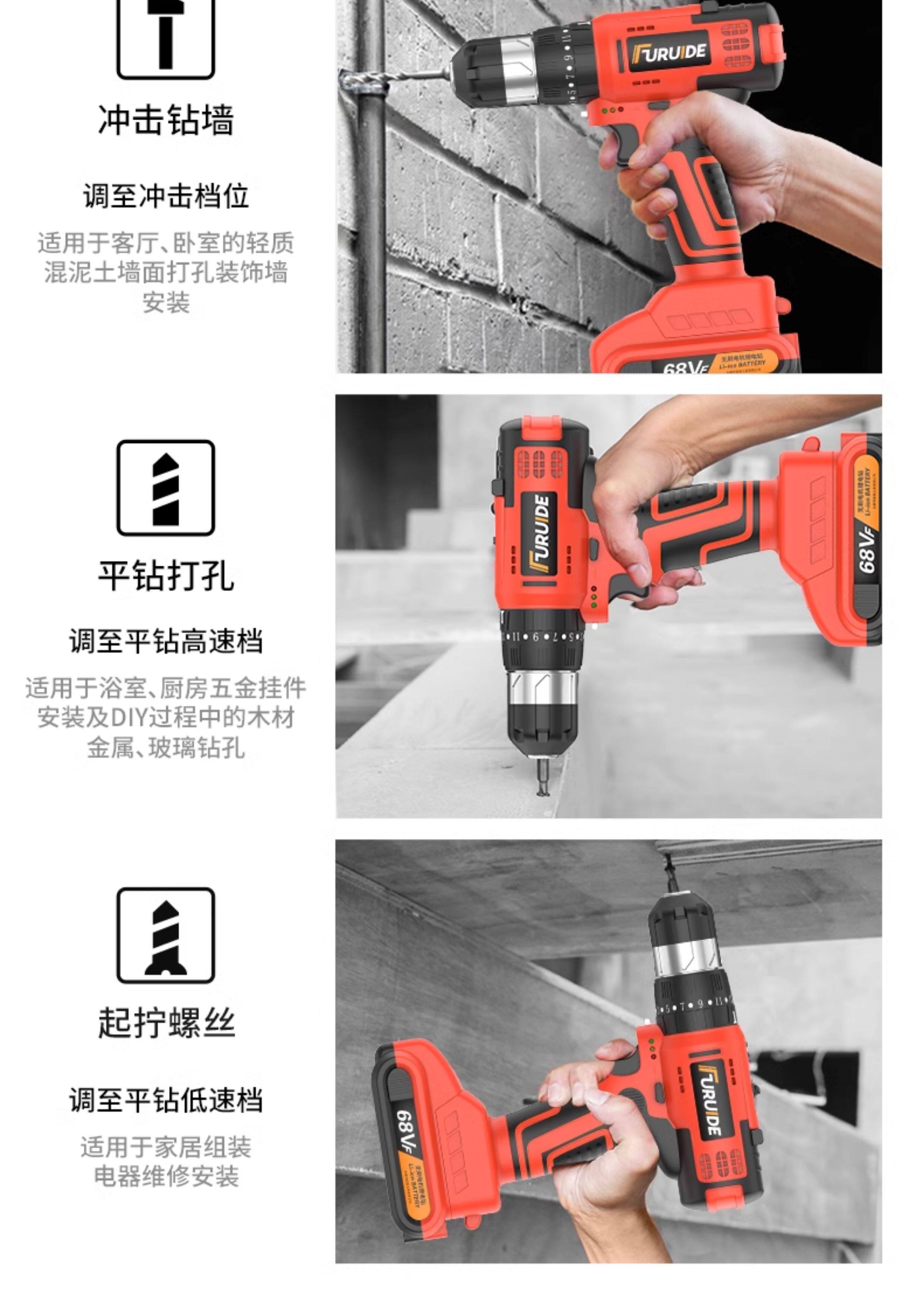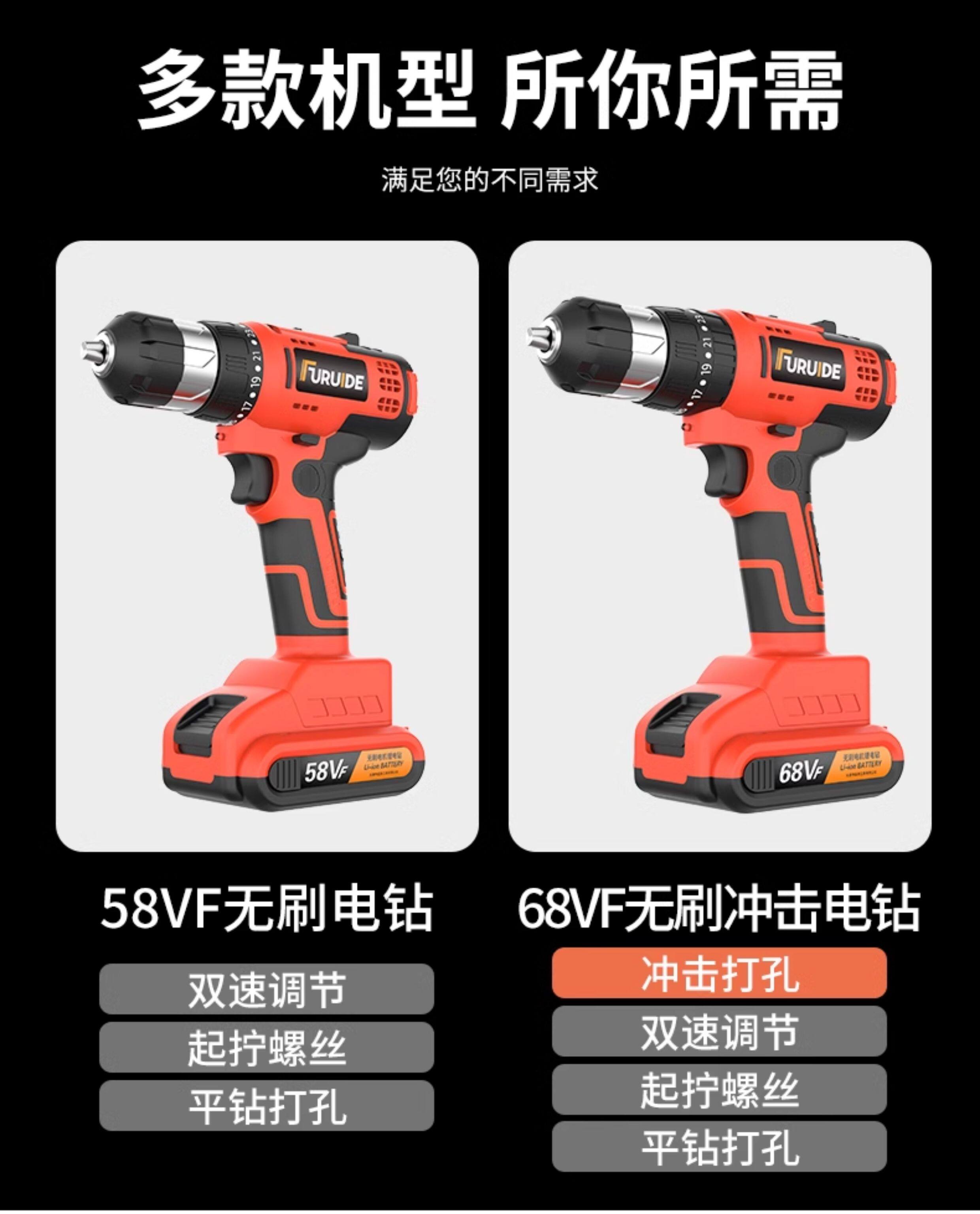 | Color Classification | (Basic Two-Speed) Hero Kit / 1 Battery / Screwdriver,(Basic Two-Speed) Hero Kit / 2 Batteries / Screwdriver,(Standard Dual-Speed Version) Hero Kit / 1 Battery / Screwdriver,(Standard Dual-Speed Version) Hero Kit / 2 Batteries / Screwdriver,(Standard Dual-Speed Version) Crown Kit / 1 Battery / Screwdriver,(Standard Dual-Speed Version) Crown Kit / 2 Batteries / Screwdriver,(Standard Dual-Speed Version) King Set / 1 Battery / Screwdriver,(Standard Dual-Speed Version) King Set / 2 Batteries / Screwdriver,(Standard Dual-Speed Version) Honor Kit / 1 Battery / Screwdriver,(Standard Dual-Speed Version) Honor Kit / 2 Batteries / Screwdriver,(Upgraded Dual-Speed Version) Hero Kit / 1 Battery / Metal Drilling,(Upgraded Dual-Speed Version) Hero Kit / 2 Batteries / Metal Drilling,(Upgraded Dual-Speed Version) King Set / 1 Battery / Metal Drilling,(Upgraded Dual-Speed Version) King Set / 2 Batteries / Metal Drilling,(Upgraded Dual-Speed Version) Honor Kit / 1 Battery / Metal Drilling,(Upgraded Dual-Speed Version) Honor Kit / 2 Batteries / Metal Drilling,(Professional Brushless Two-Speed Version) King Set/1 Battery/Red Brick Drilling,(Professional Brushless Two-Speed Version) King Set/2 Batteries/Red Brick Drilling,(Professional Brushless Two-Speed Version) Honor Set/1 Battery/Red Brick Drilling,(Professional Brushless Two-Speed Version) Honor Set/2 Batteries/Red Brick Drilling,(Flagship Brushless Impact Drill) King Set / 1 Battery / Drill Concrete,(Flagship Brushless Impact Drill) King Set / 2 Batteries / Drill Concrete,(Flagship Brushless Impact Edition) Honor Kit / 1 Battery / Drill Concrete,70% of Customers Choose (Flagship Brushless Impact Edition) Honor Kit/2 Batteries/Drill Concrete,(Flagship Brushless Impact Drill) Supreme Kit / 1 Battery / Concrete Drilling,(Flagship Brushless Impact Drill) Supreme Kit / 2 Batteries / Concrete Drilling,(Flagship Brushless Impact Drill) Diamond Kit / 1 Battery / Concrete Drilling,(Flagship Brushless Impact Drill) Diamond Kit / 2 Batteries / Concrete Drilling |