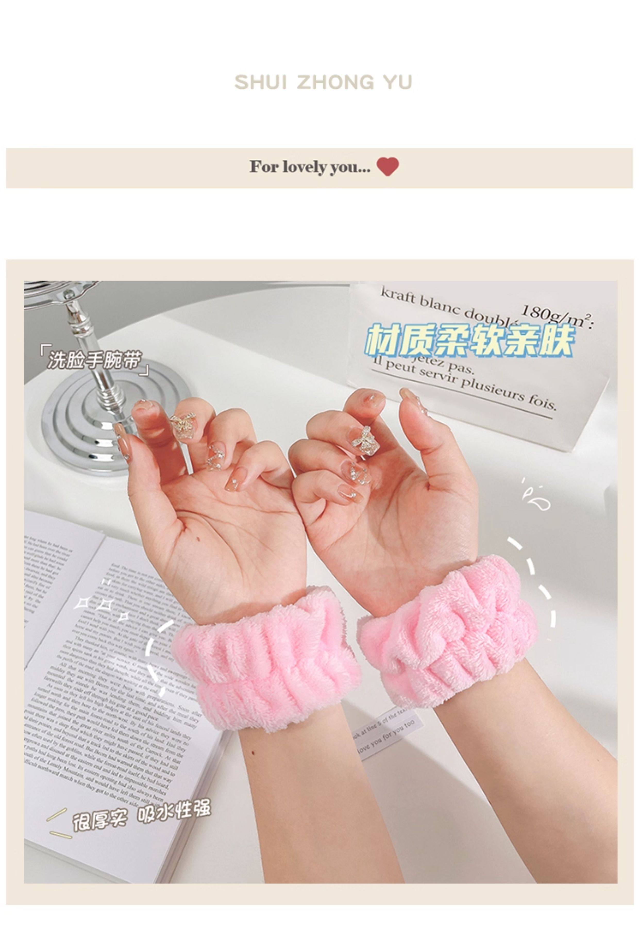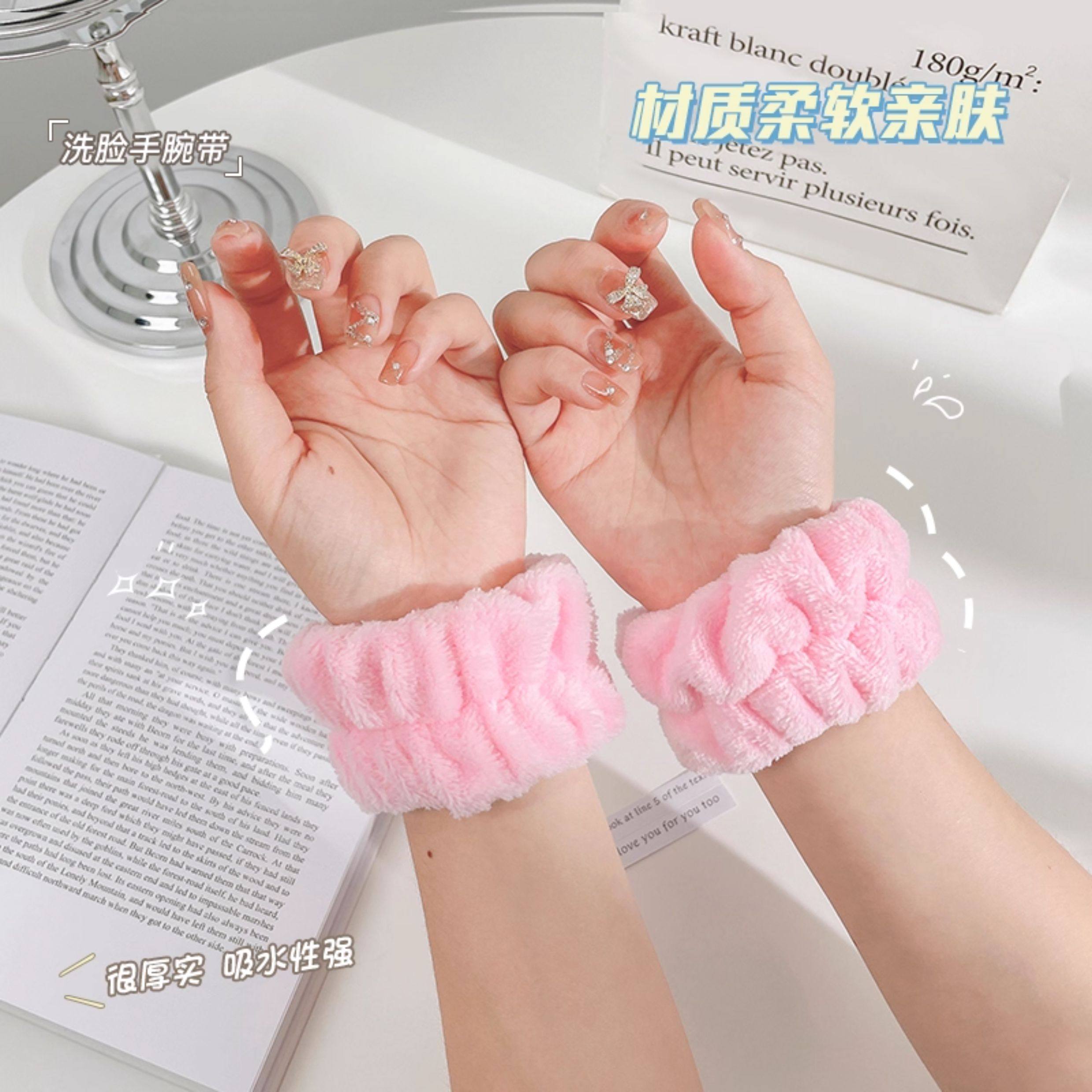 Wristband for Washing Face, Anti-Wet Magic Hand Towel, Anti-Splash Water Washing Cuff, Sweat-Absorbing and Sweat-Wiping, Plush Headband for Girls