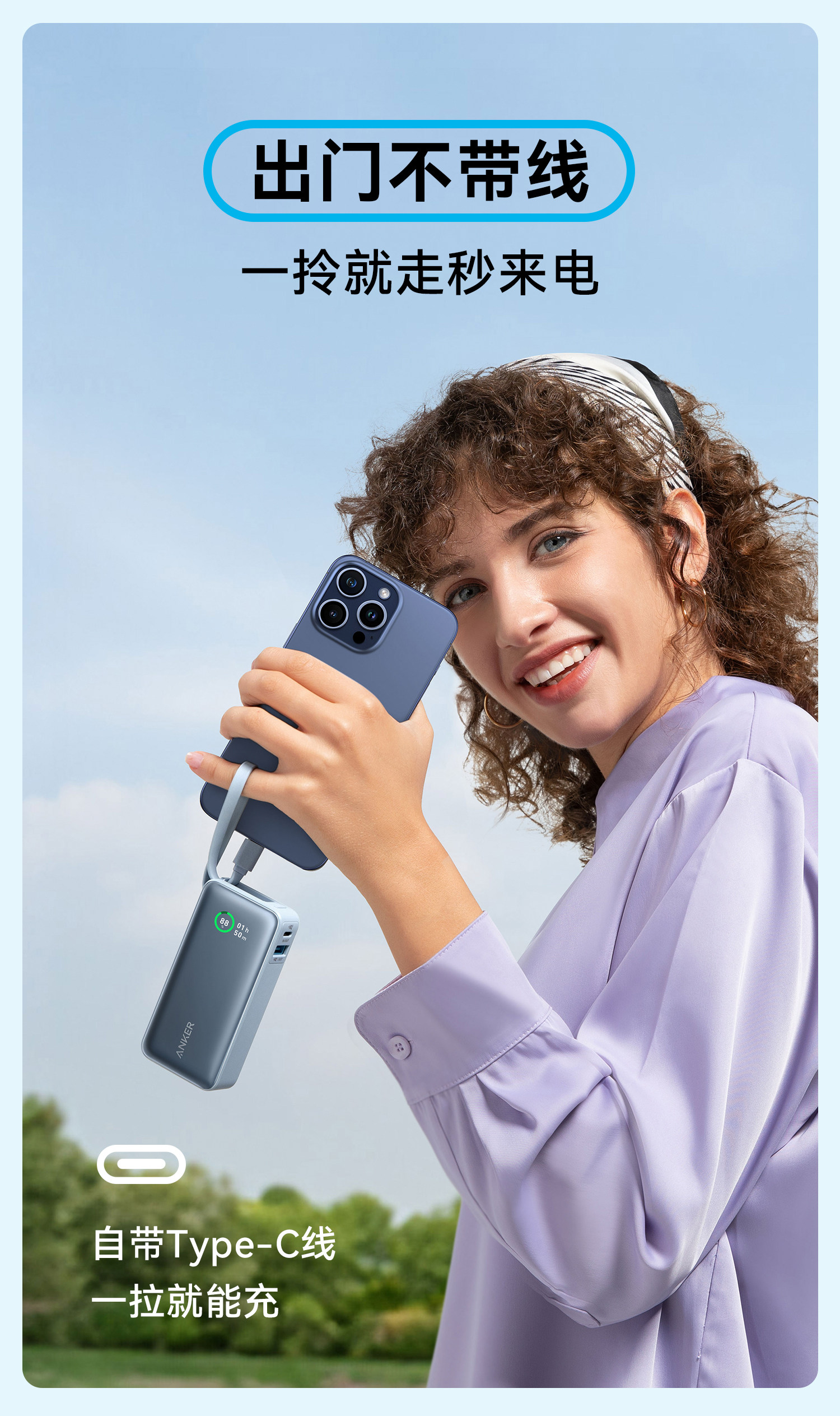 [3C Certified and Suitable for Use on Airplanes] Anker 2025 New Model Power Bank with Built-In Cable, Fast Charging, Large Capacity, Ultra-Thin, Compact, Portable, Compatible with Apple iPhone 16 and Android