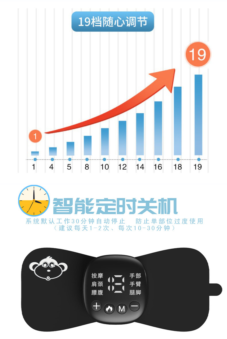 Multifunctional Meridian Massager Pocket Massage Patch Portable Cervical Spine Low-Frequency Pulse Instrument Acupuncture Electrotherapy Gel Patch