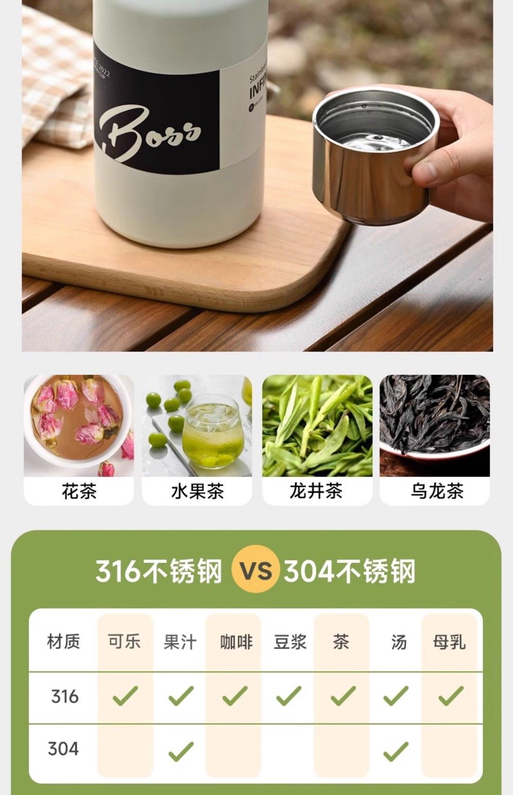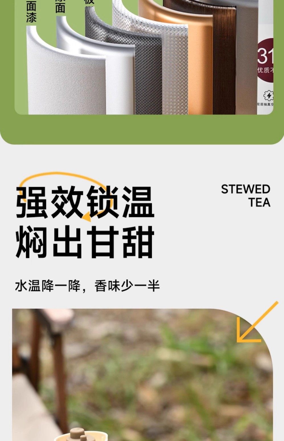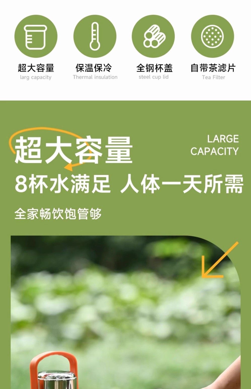 | Color Classification | Obsidian Black Stone 800ml [with Tea Separator],[Anti-Fall] Chinese Red 800ml [with Tea Separator],[Antibacterial] Chinese Red 800ml [with Tea Separator + Strap],[Antibacterial] Army Green 800ml [with Tea Separator + Strap],[Antibacterial] Coral Pink 800ml [with Tea Separator + Strap],[Antibacterial] Sun Orange 800ml [with Tea Separator + Strap],[Antibacterial] Crescent White 800ml [with Tea Separator + Strap],[Antibacterial] Obsidian Black Stone 800ml [Includes Tea Separator + Strap],-Crescent White 800ml [Including Tea Separator + Strap + Cup Cover],Crescent White 1000ml [with Tea Separator + Strap],China Red 1000ml [Includes Tea Infuser + Carrying Strap],Coral Pink 1000ml [Includes Tea Infuser + Carrying Strap],Army Green 1000ml [Includes Tea Infuser + Carrying Strap],Obsidian Black Stone 1000ml [Includes Tea Infuser + Carrying Strap],Sun Orange 1000ml [with Tea Separator + Strap],Obsidian Black Stone 1500ml [Includes Tea Infuser + Carrying Strap],-Military Green 1500ml [Including Tea Separator + Strap],China Red 1500ml [Includes Tea Infuser + Carrying Strap],Coral Pink 1500ml [Includes Tea Infuser + Carrying Strap],Sun Orange 1500ml [with Tea Separator + Strap],Crescent White 1500ml [with Tea Separator + Strap],316-Crescent White 1000ml [Includes Tea Separator + Strap + Cup Cover],316-Sun Orange 1000ml [Includes Tea Separator + Strap + Cup Cover],316-Yao Black Stone 1500ml [Including Tea Separator + Strap + Cup Cover],316-Military Green 1500ml [Including Tea Separator + Strap + Cup Cover],316-China Red 1500ml [Including Tea Separator + Strap + Cup Cover],316-Coral Pink 1500ml [Includes Tea Separator + Strap + Cup Cover],316-Sun Orange 1500ml [Includes Tea Separator + Strap + Cup Cover],316-Crescent White 1500ml [Includes Tea Separator + Strap + Cup Cover],316-Insulated Tea Maker 450Ml-Black,316-Insulated Tea Maker 450Ml-White |