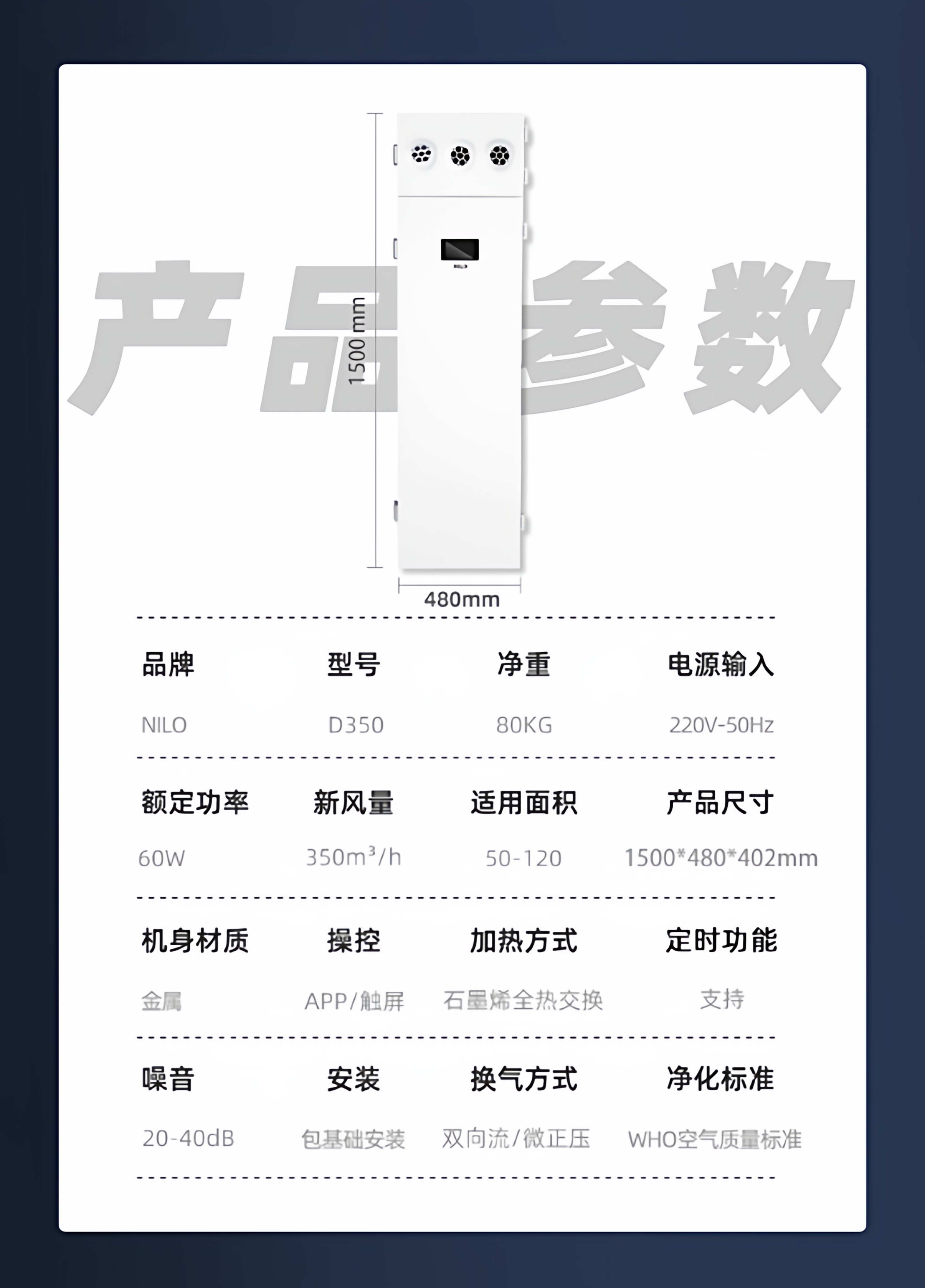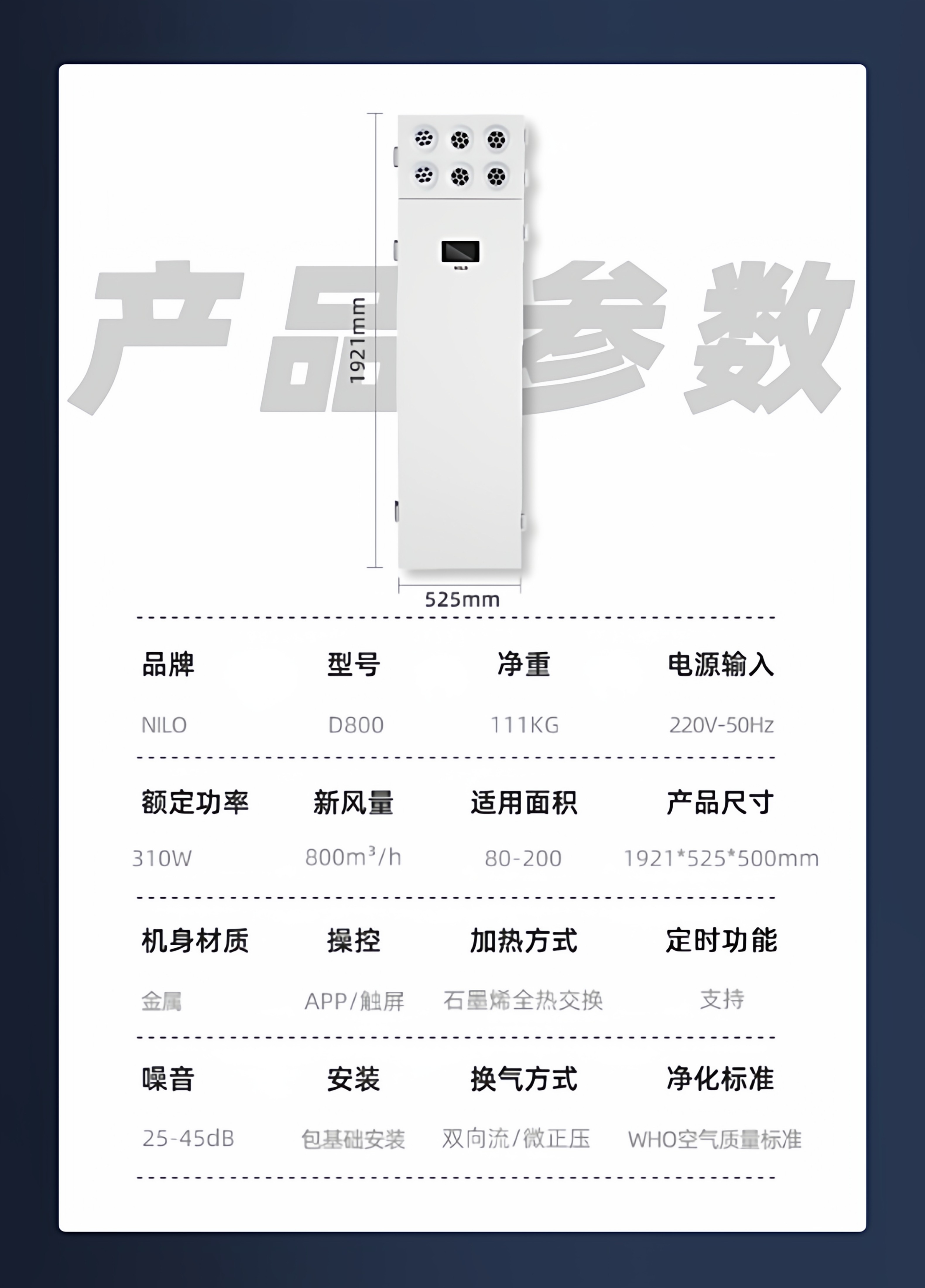 Nilo Fresh Air System for Home Use in Basements, Villas, Large Flat Floors, Whole-House Ventilation, Air Purification, Formaldehyde Removal, Commercial Use