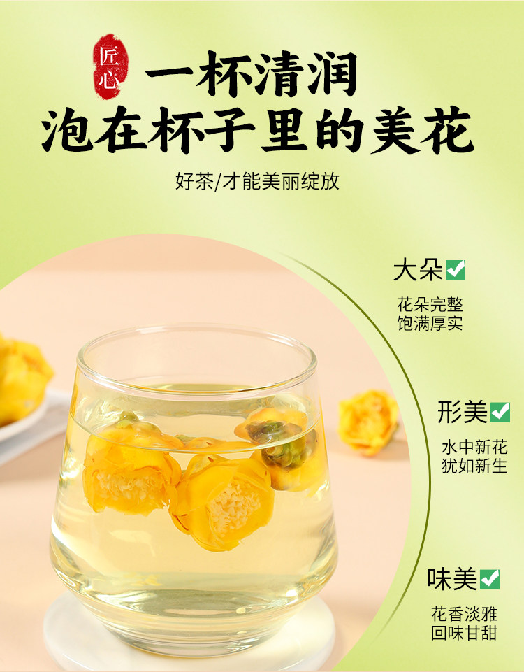 | Taste | Selected Golden Flower Tea 25g*1 Can,Selected Golden Flower Tea 25g*2 Cans,Selected Golden Flower Tea 25g*4 Cans |
