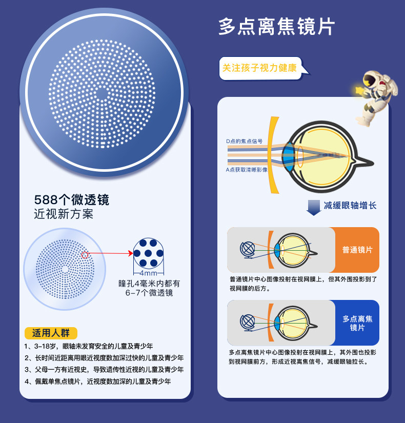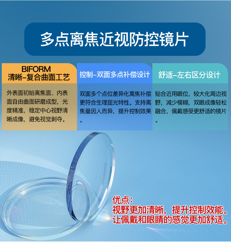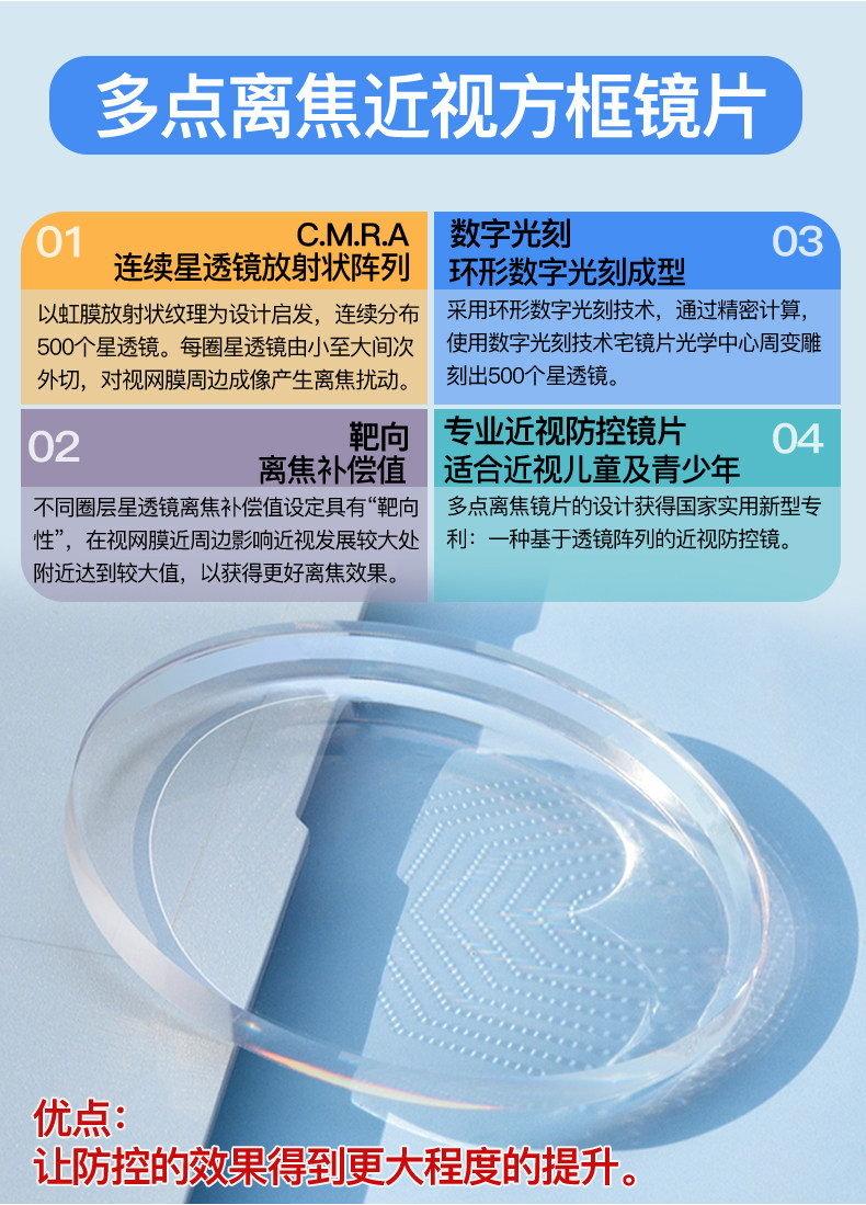 Multifocal Peripheral Defocus Control Myopia Glasses Lenses for Children to Protect Vision, Teenagers and Primary School Students with Increasing Degree of Myopia
