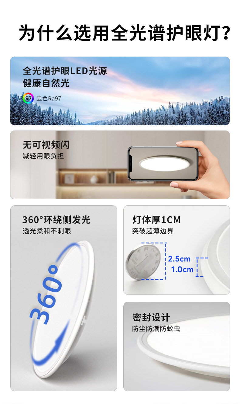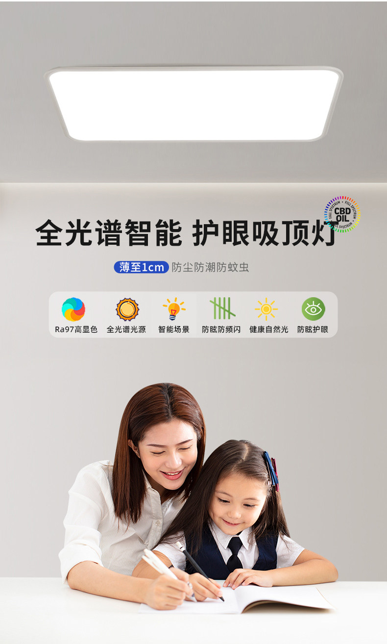 Full-Spectrum Ultra-Thin Eye-Protecting Ceiling Lamp Rectangular Living Room Main Light Room Main Light Atmospheric Simple Ultra-Bright Lighting Fixture