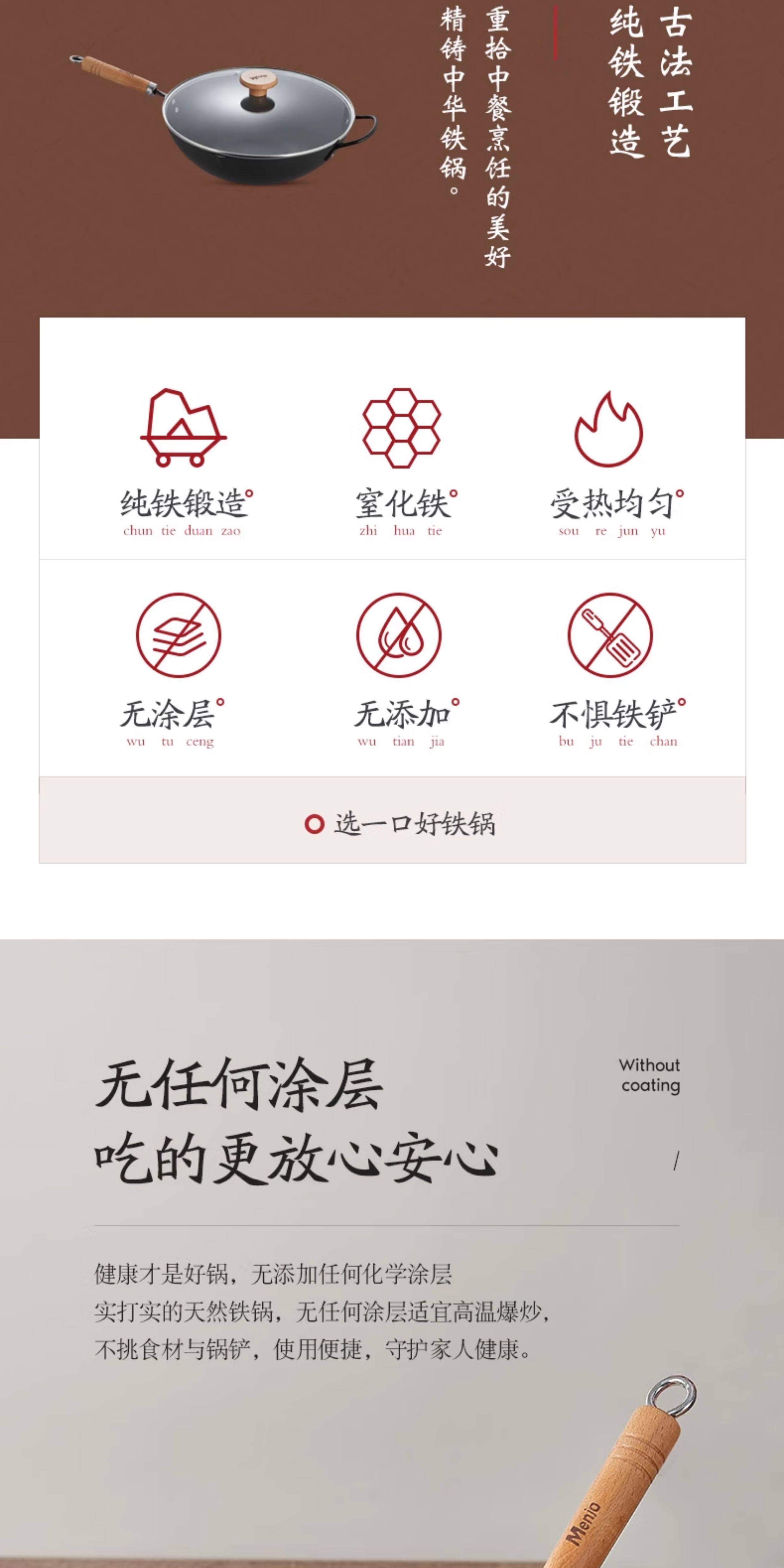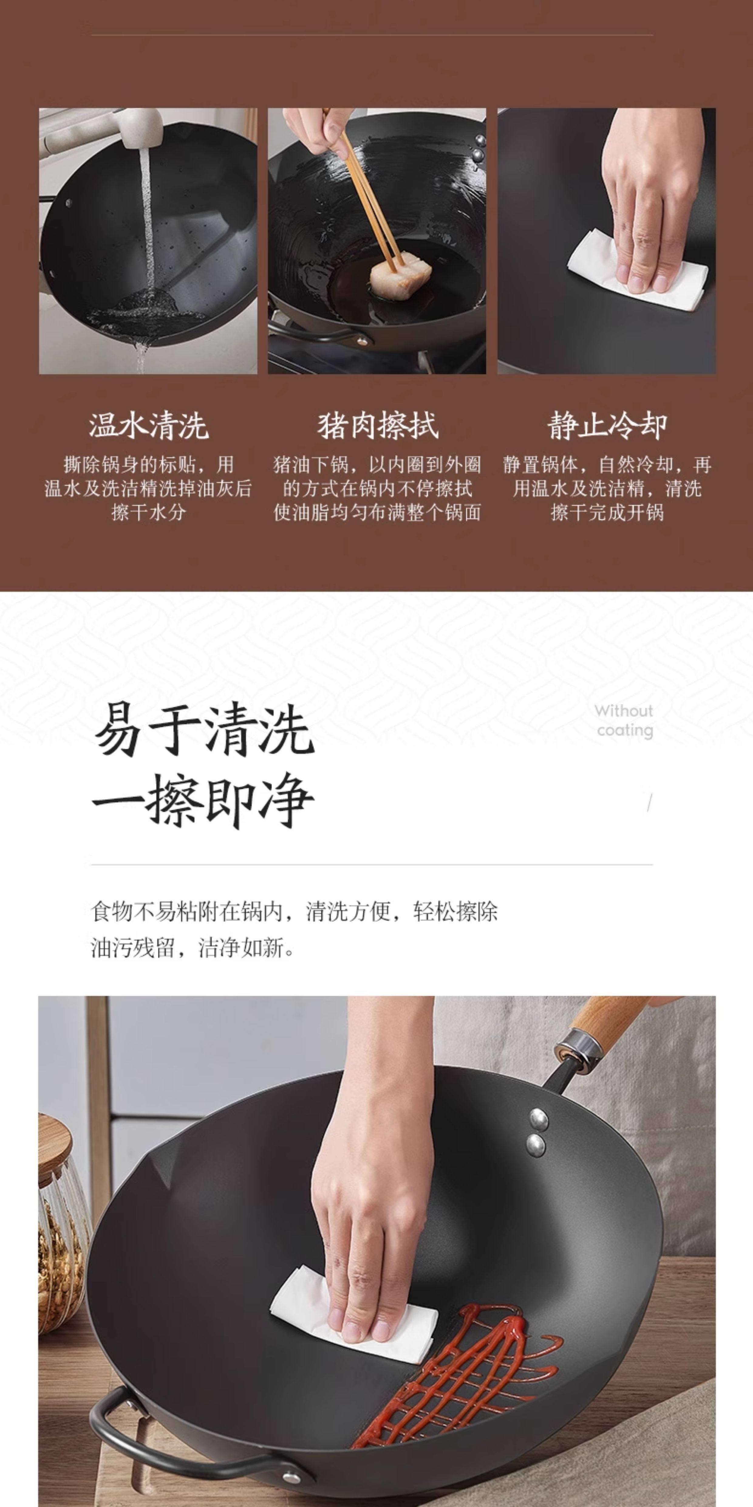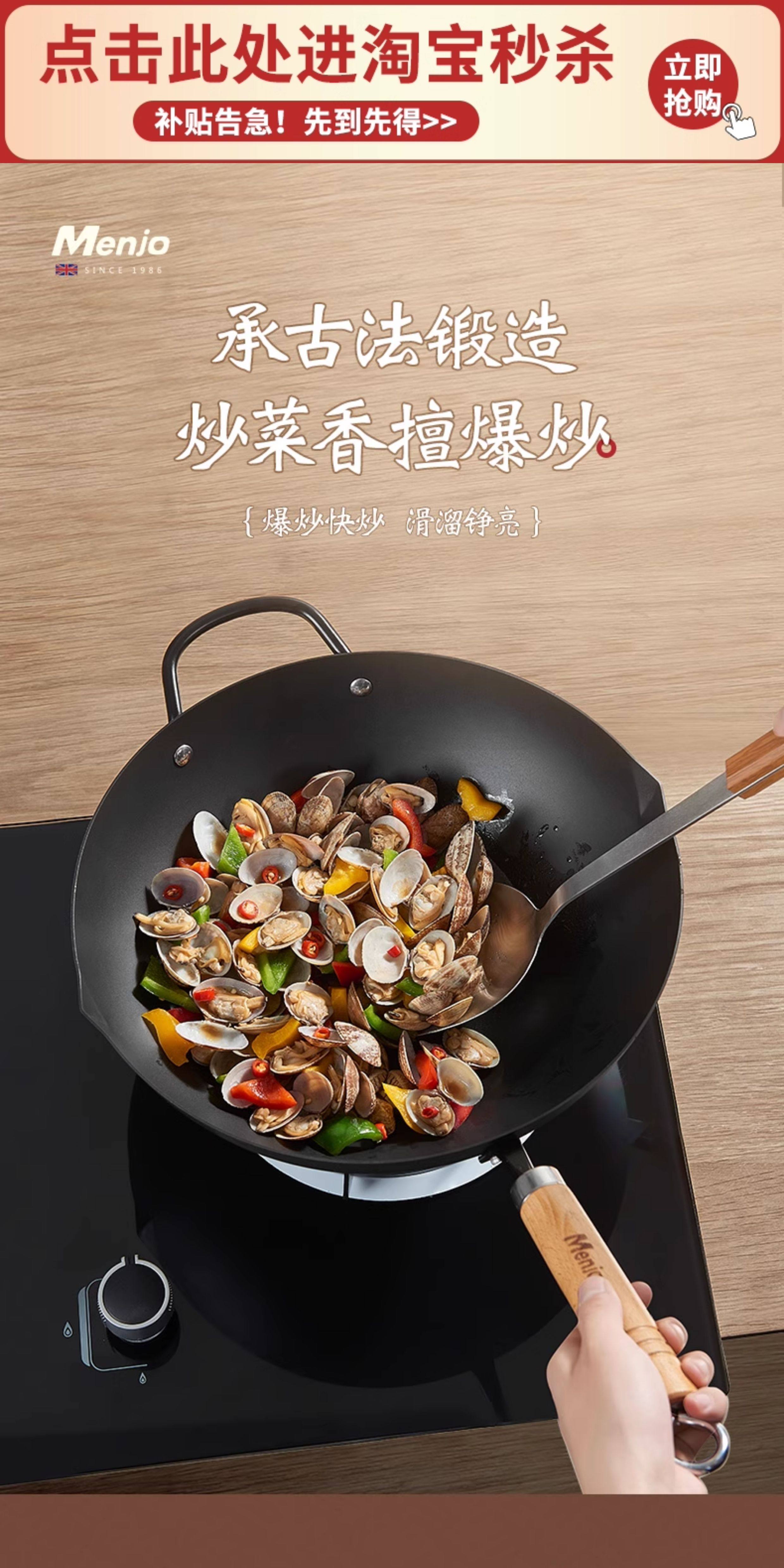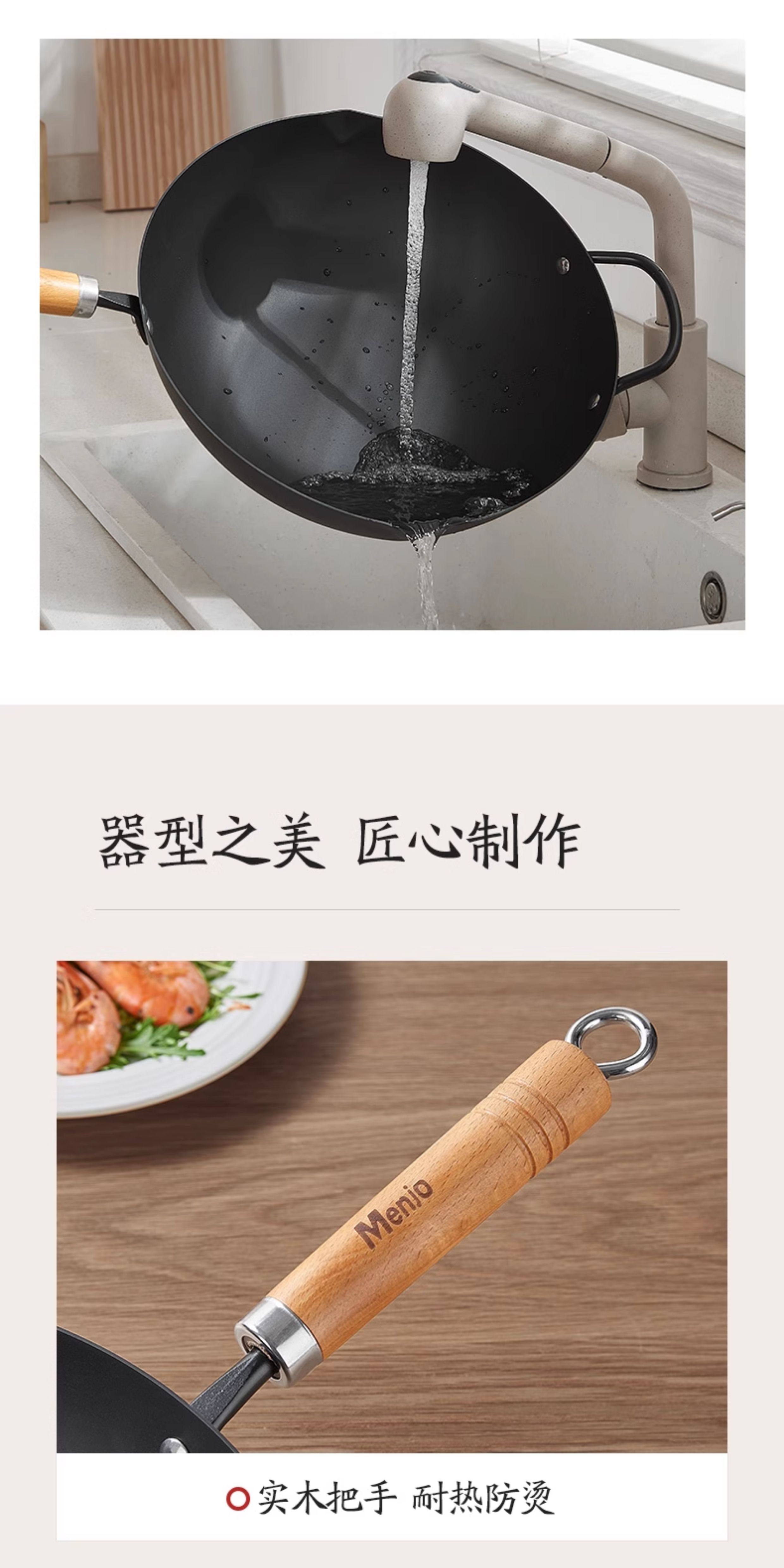British Mingjue Non-Stick Wok, Traditional Iron Wok for Cooking, Suitable for Home Use with Induction Cooker and Gas Stove, No Coating