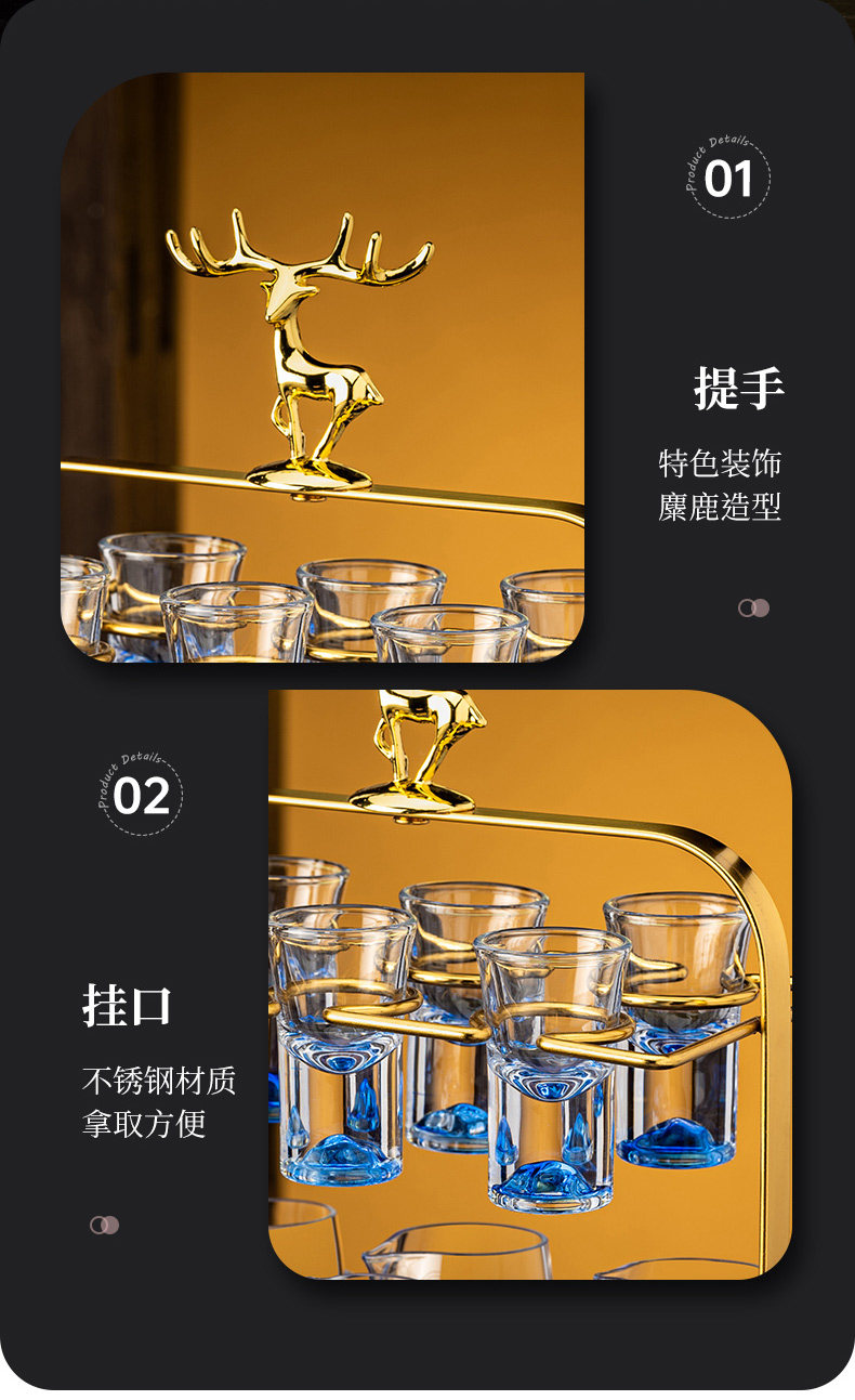 | Color Classification | Crystal Wine Dispenser 100Ml*6+White Wine Glass 10Ml*6+Deer Head Cup Holder,Blue Mountain Wine Dispenser 100Ml*6+White Wine Glass 10Ml*6+Deer Head Cup Holder,Gold Foil Wine Dispenser 100Ml*6+White Wine Glass 10Ml*6+Deer Head Cup Holder,Gold Foil Jinshan Wine Dispenser 100Ml*6+White Wine Glass 10Ml*6+Deer Head Cup Holder,Crystal Wine Dispenser 100Ml*10+White Wine Glass 10Ml*10+Deer Head Cup Holder,Blue Mountain Wine Dispenser 100Ml*10+White Wine Glass 10Ml*10+Deer Head Cup Holder,Gold Foil Wine Dispenser 100Ml*10+White Wine Glass 10Ml*10+Deer Head Cup Holder,Gold Foil Jinshan Wine Dispenser 100Ml*10+White Wine Glass 10Ml*10+Deer Head Cup Holder,Gold Foil Wine Dispenser 100Ml*6+White Wine Glass 10Ml*6+Deer Head Cup Holder+Leather Case,Gold Foil Jinshan Wine Dispenser 100Ml*6+White Wine Glass 10Ml*6+Deer Head Cup Holder+Leather Case,Gold Foil Wine Dispenser 100Ml*10+White Wine Glass 10Ml*10+Deer Head Cup Holder+Leather Case,Gold Foil Jinshan Wine Dispenser 100Ml*10+White Wine Glass 10Ml*10+Deer Head Cup Holder+Leather Case |