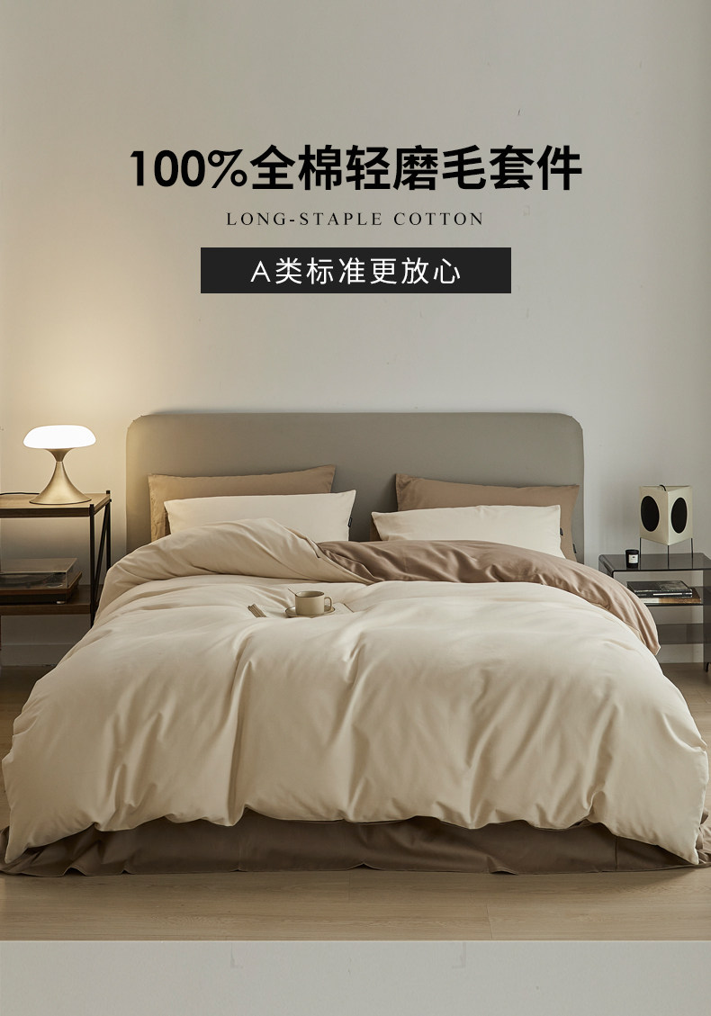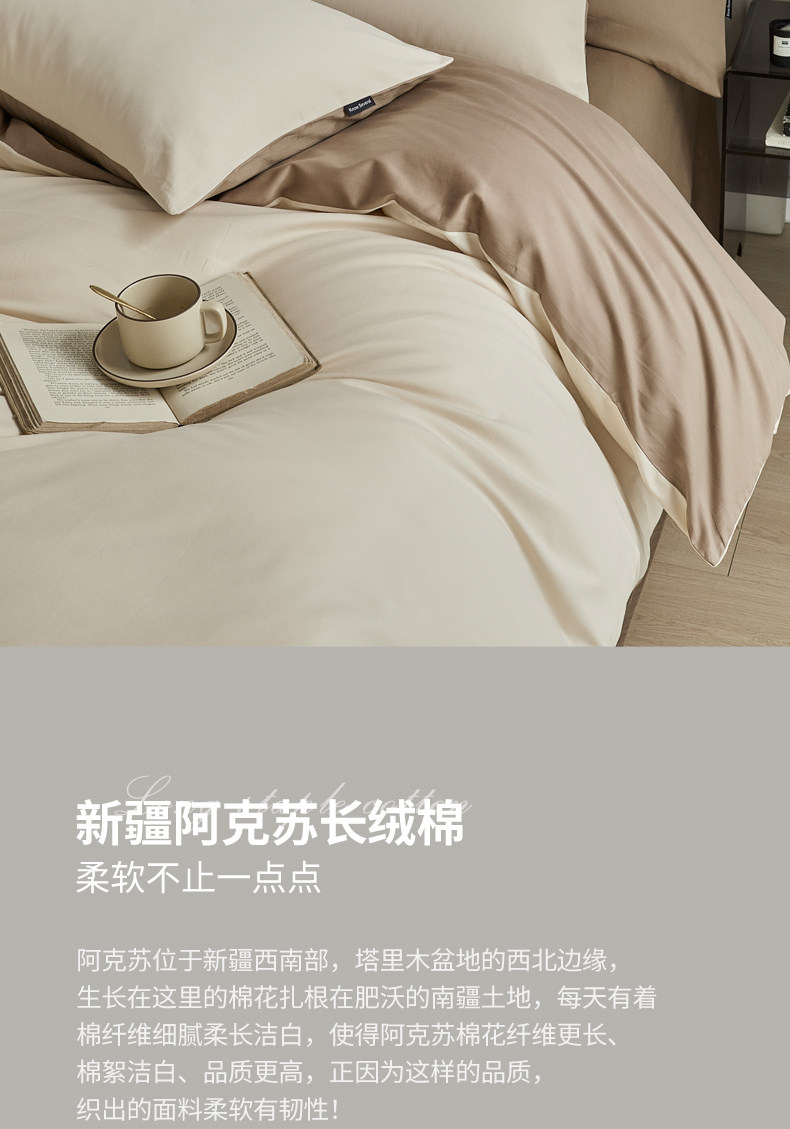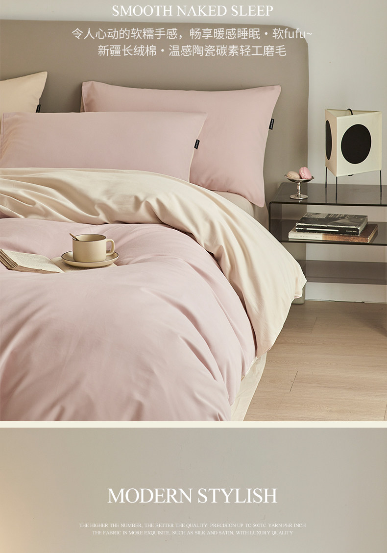 High-End 100S Thickened Brushed Cotton Four-Piece Set Pure Cotton Bed Sheet Duvet Cover Fitted Sheet Three-Piece Set Light Luxury Autumn and Winter Bedding