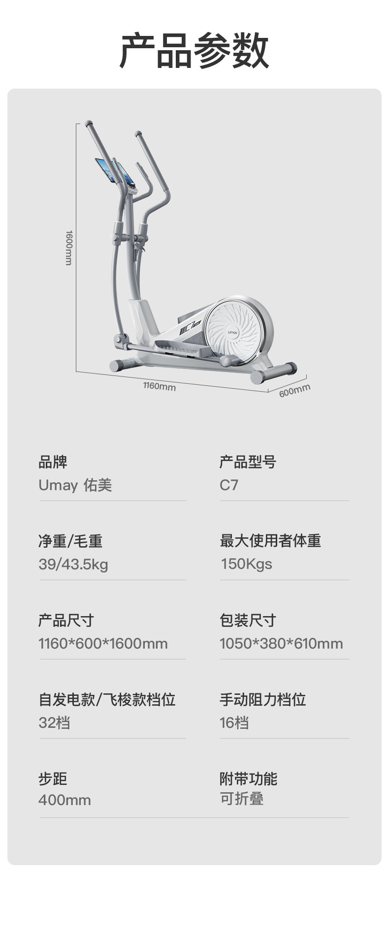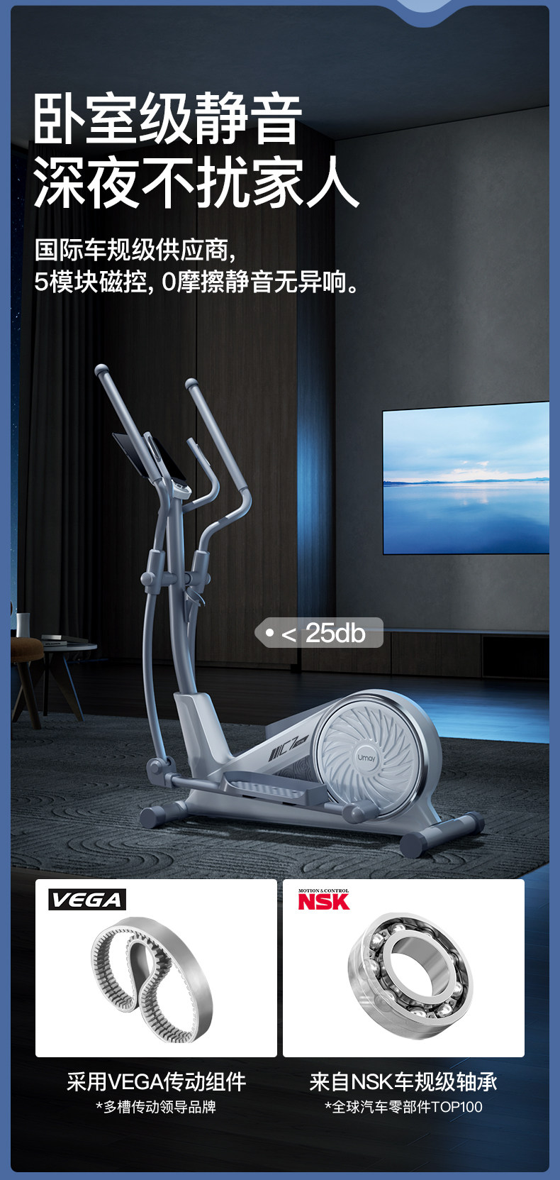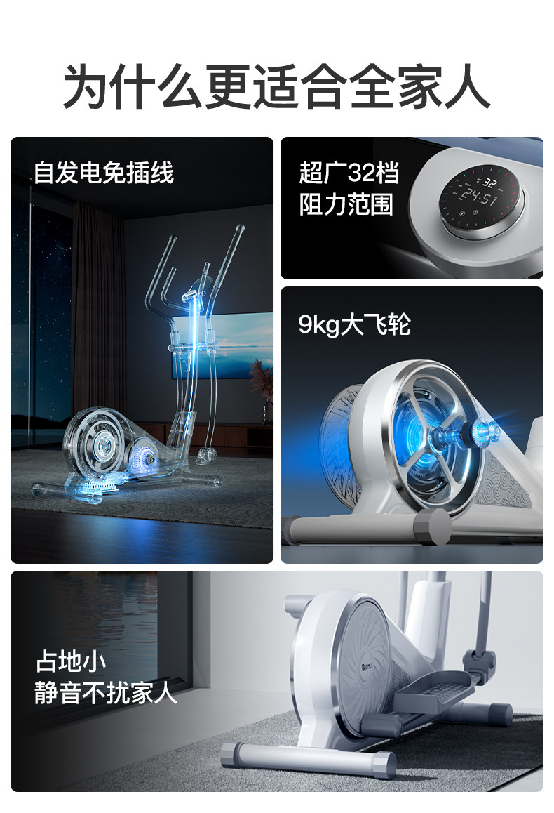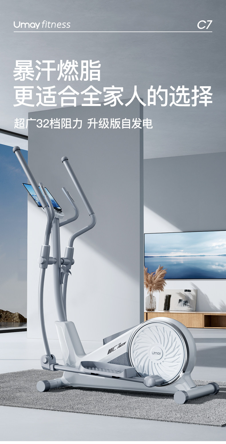 Youmei Elliptical Machine, Home Silent Elliptical Trainer, Gym Exercise Equipment, Small Space Walker C7