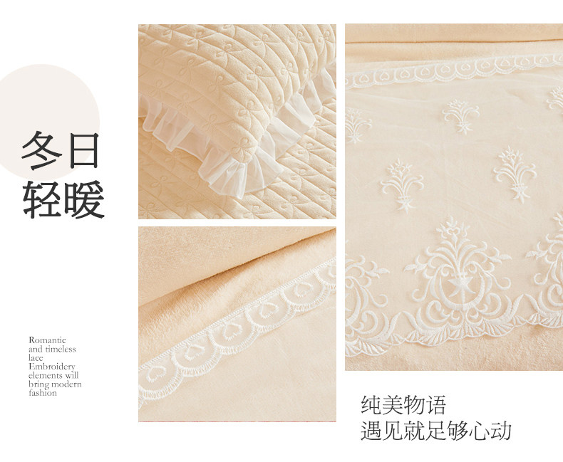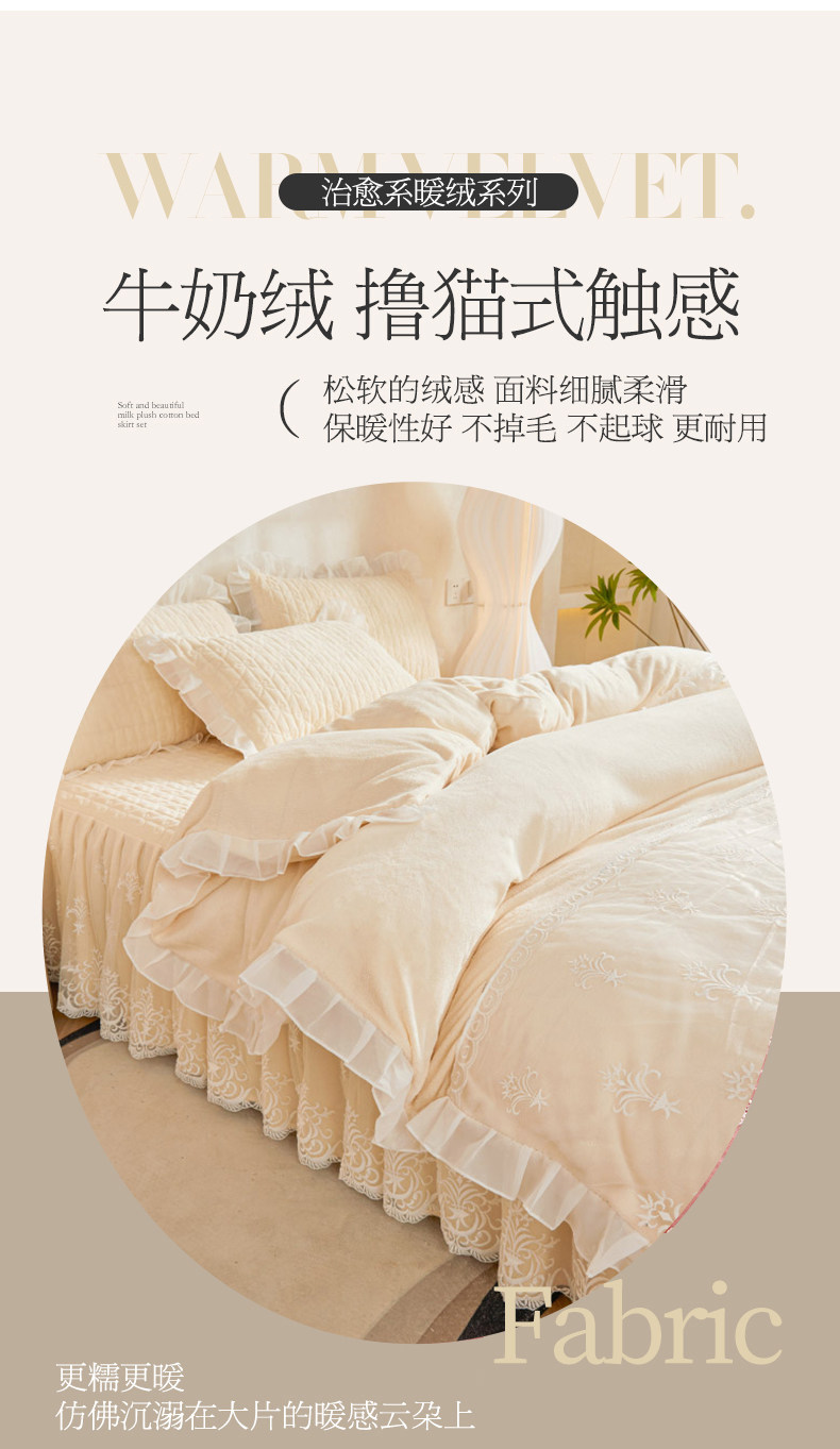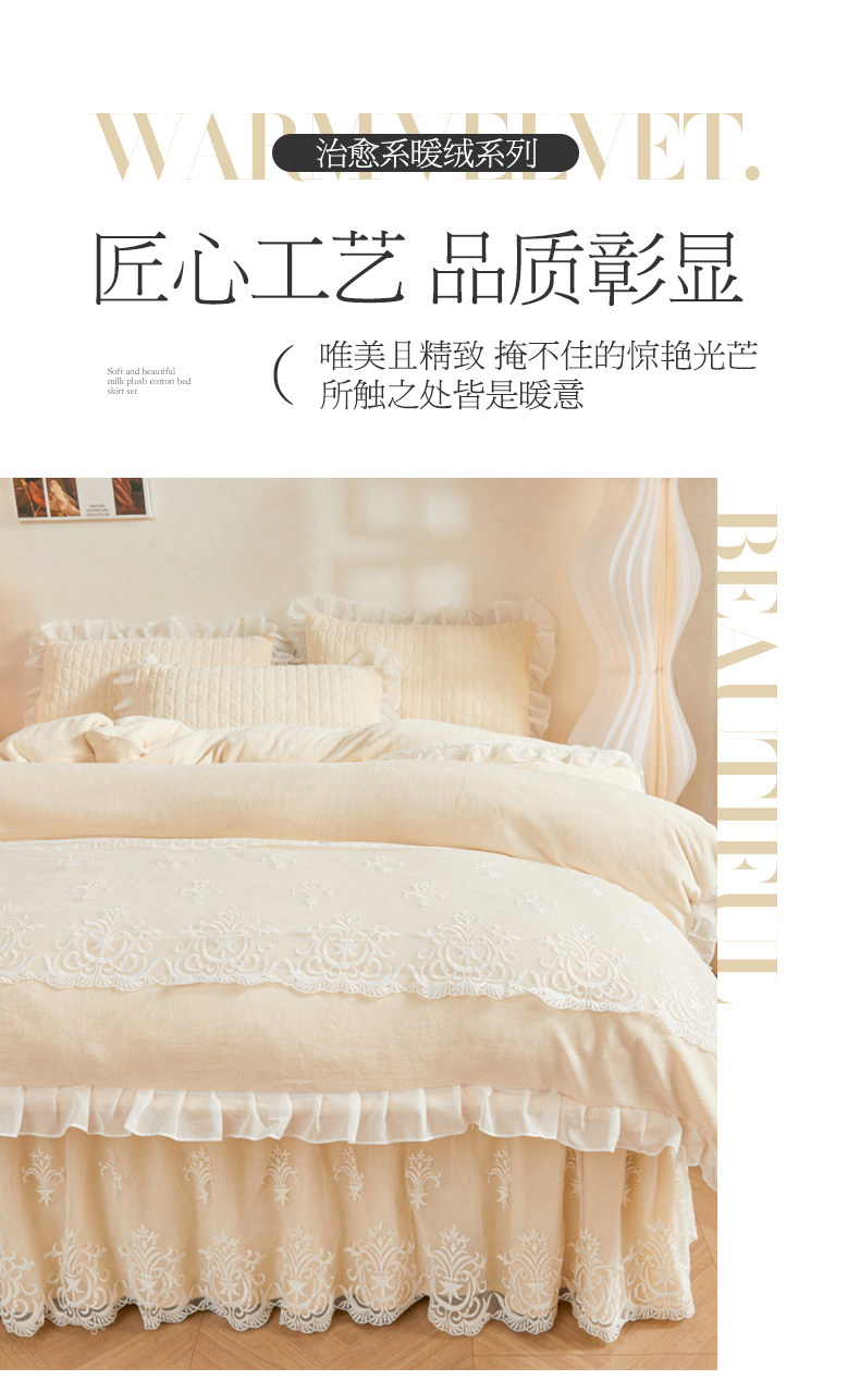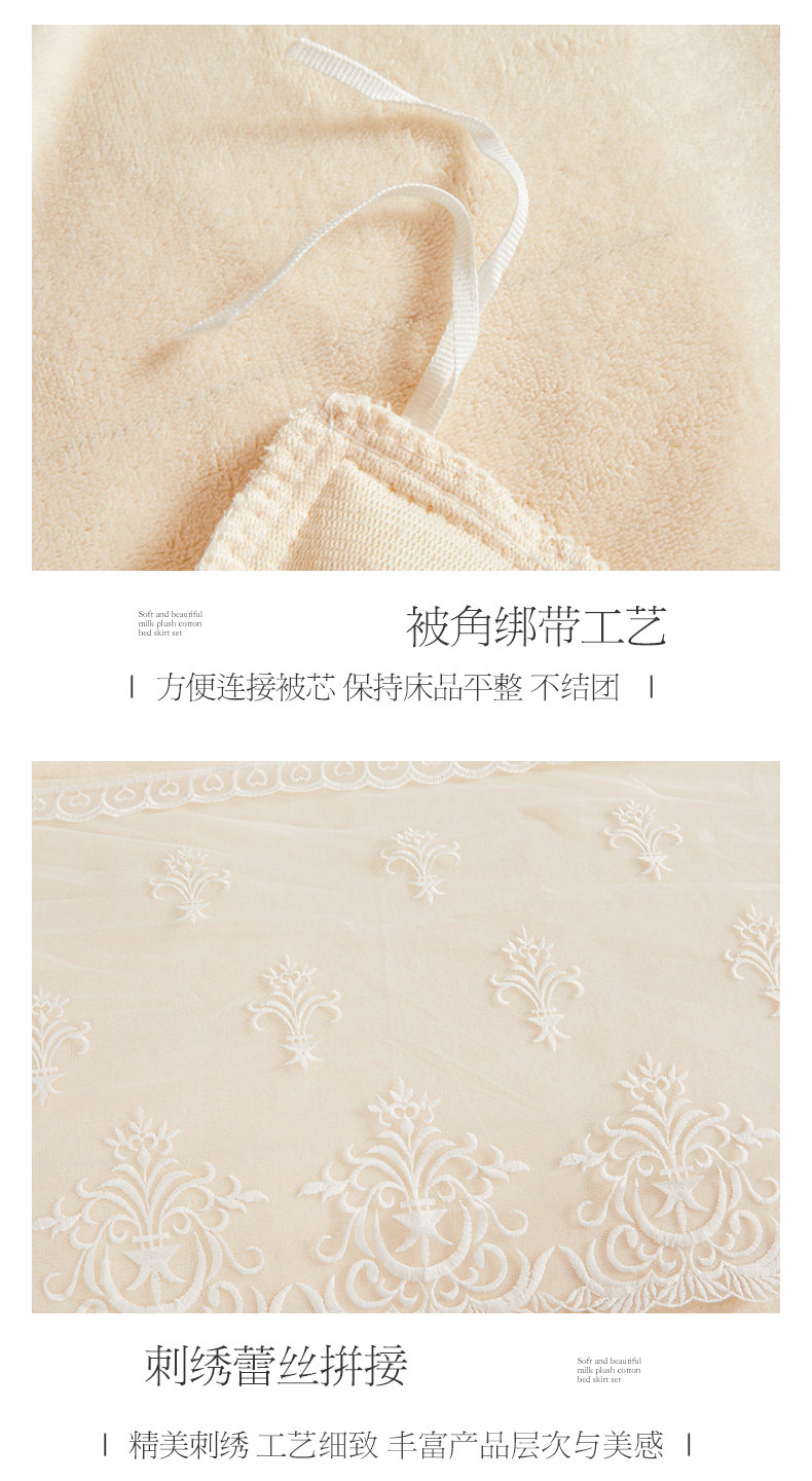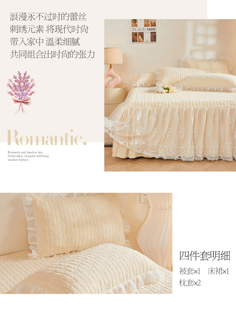 Winter Thickened Milk Velvet Bed Skirt Style Four-Piece Set, Warm Double-Sided Coral Fleece Duvet Cover, Flannel Bedspread, Quilt Cover 4