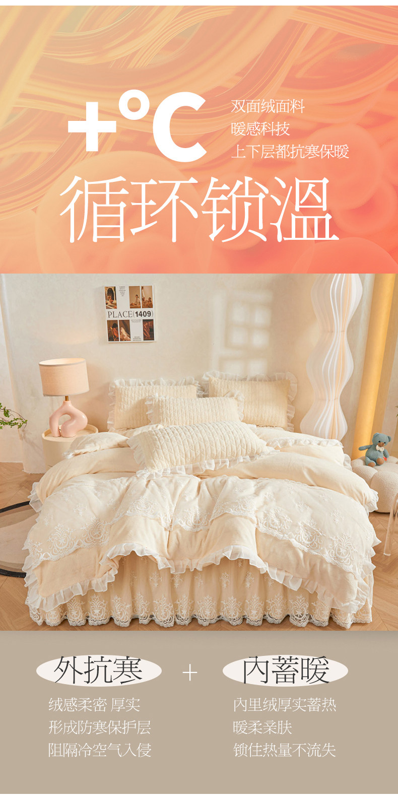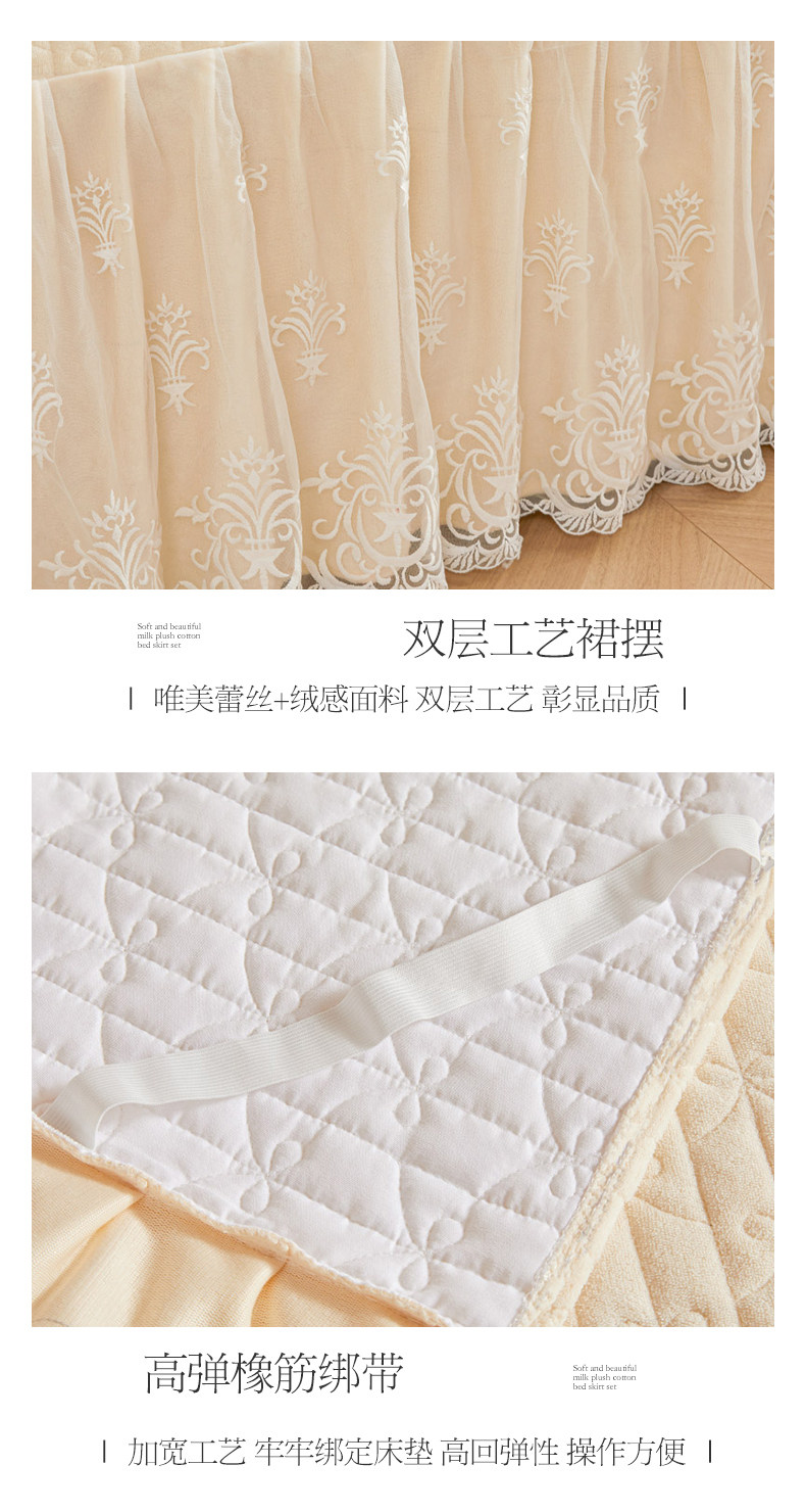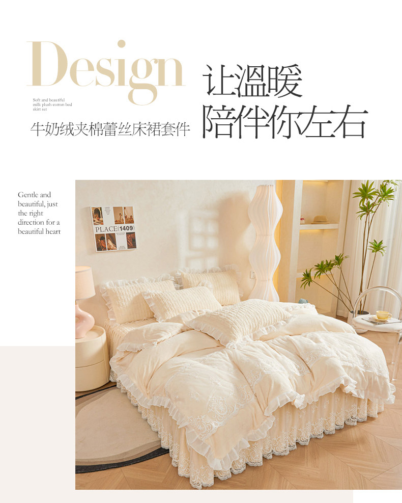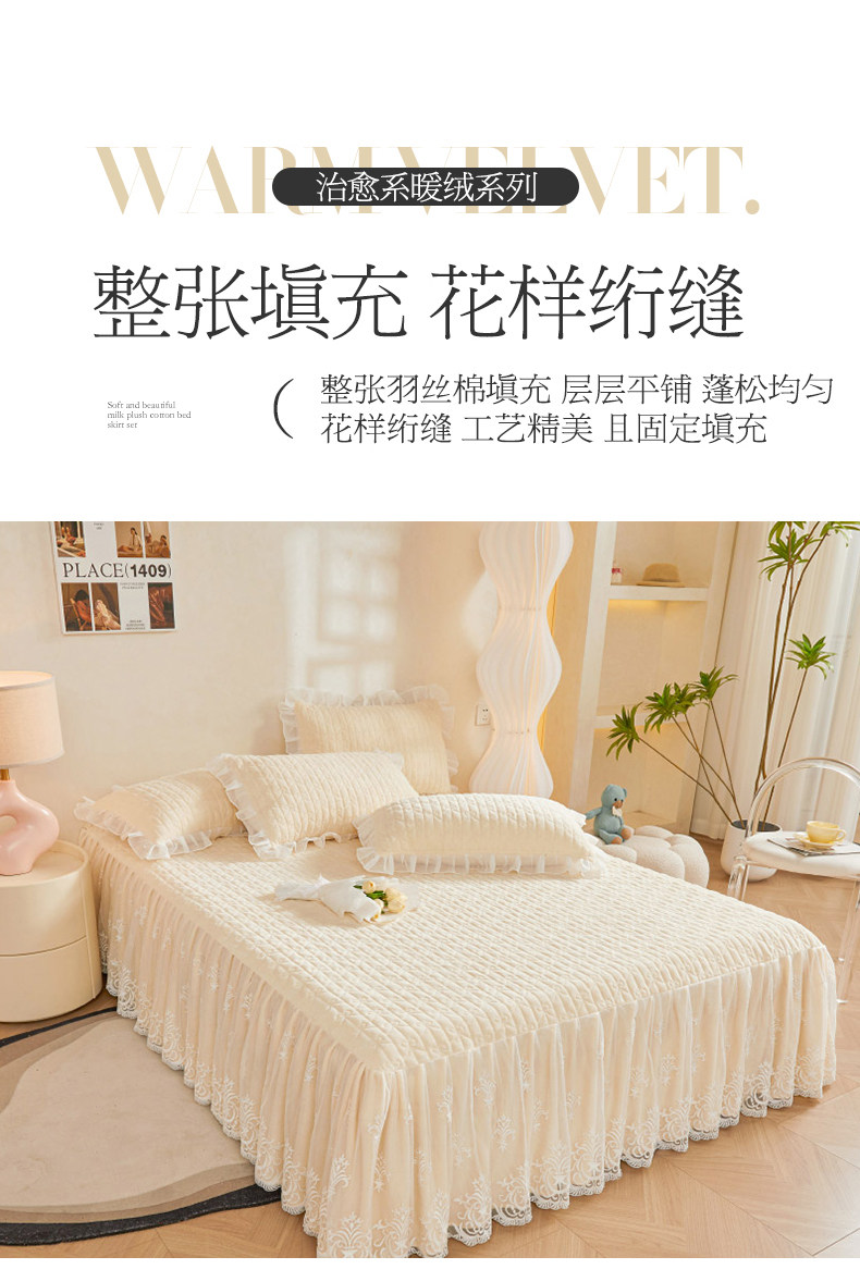 Winter Thickened Milk Velvet Bed Skirt Style Four-Piece Set, Warm Double-Sided Coral Fleece Duvet Cover, Flannel Bedspread, Quilt Cover 4