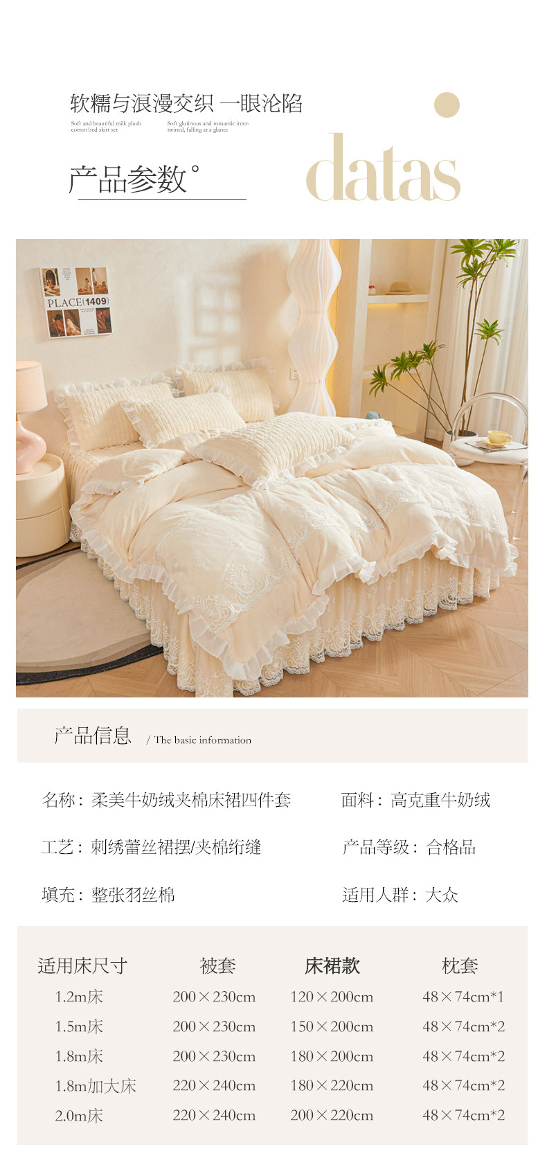 | Applicable Bed Size | 1.5X2.0M Bed Skirt Four-Piece Set (Quilt Cover 200X230Cm),1.8X2.0M Bed Skirt Four-Piece Set (Quilt Cover 200X230Cm),1.8X2.2M Bed Skirt Four-Piece Set (Quilt Cover 200X230Cm),2.0X2.2M Bed Skirt Four-Piece Set (Quilt Cover 200X230Cm),1.8X2.0M Bed Skirt Four-Piece Set (Quilt Cover 220X240Cm),1.8X2.2M Bed Skirt Four-Piece Set (Quilt Cover 220X240Cm),2.0X2.2M Bed Skirt Four-Piece Set (Quilt Cover 220X240Cm),200X230Cm (Single Piece of Quilt Cover),220X240Cm (Single Piece of Quilt Cover) |
