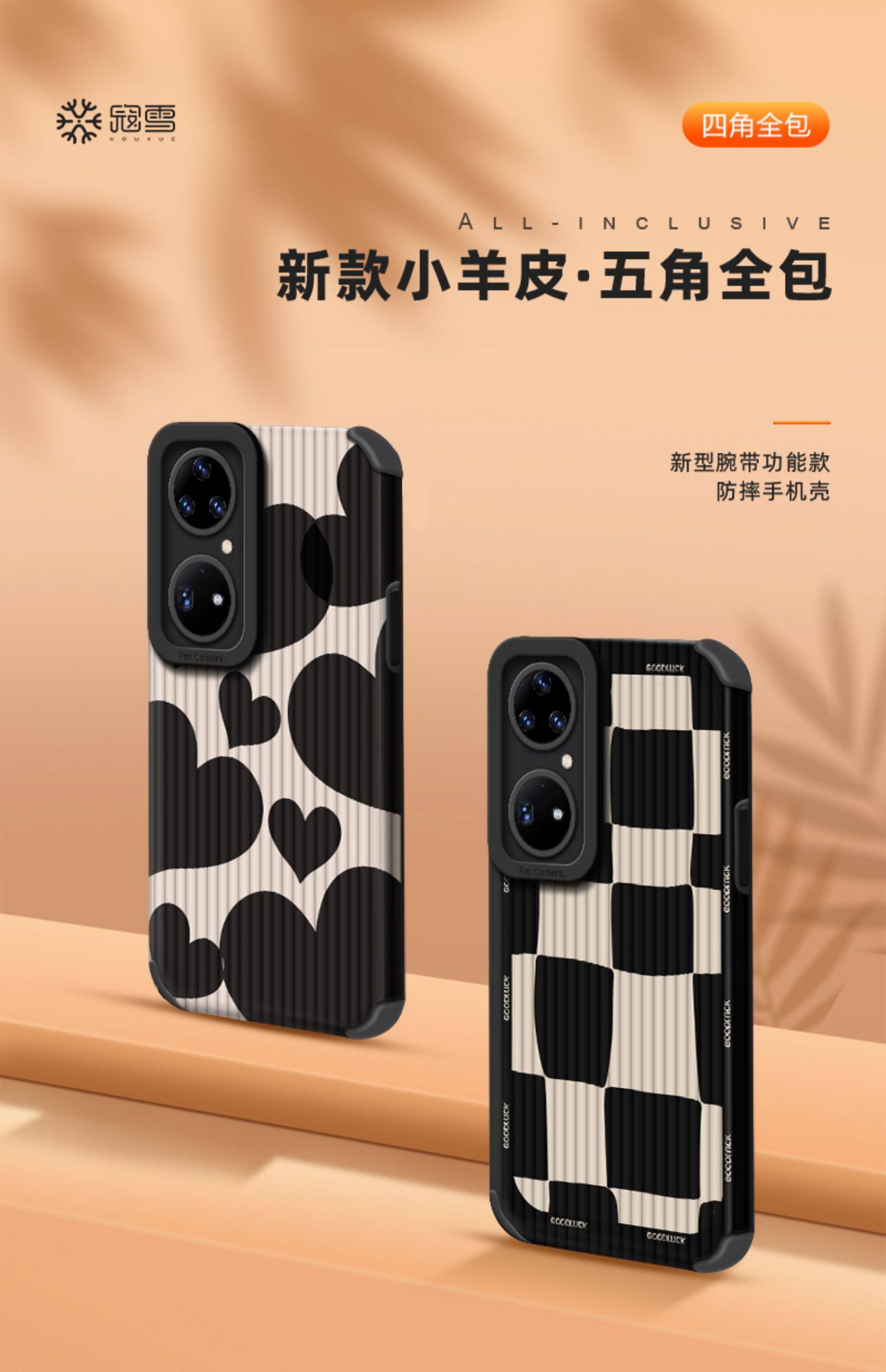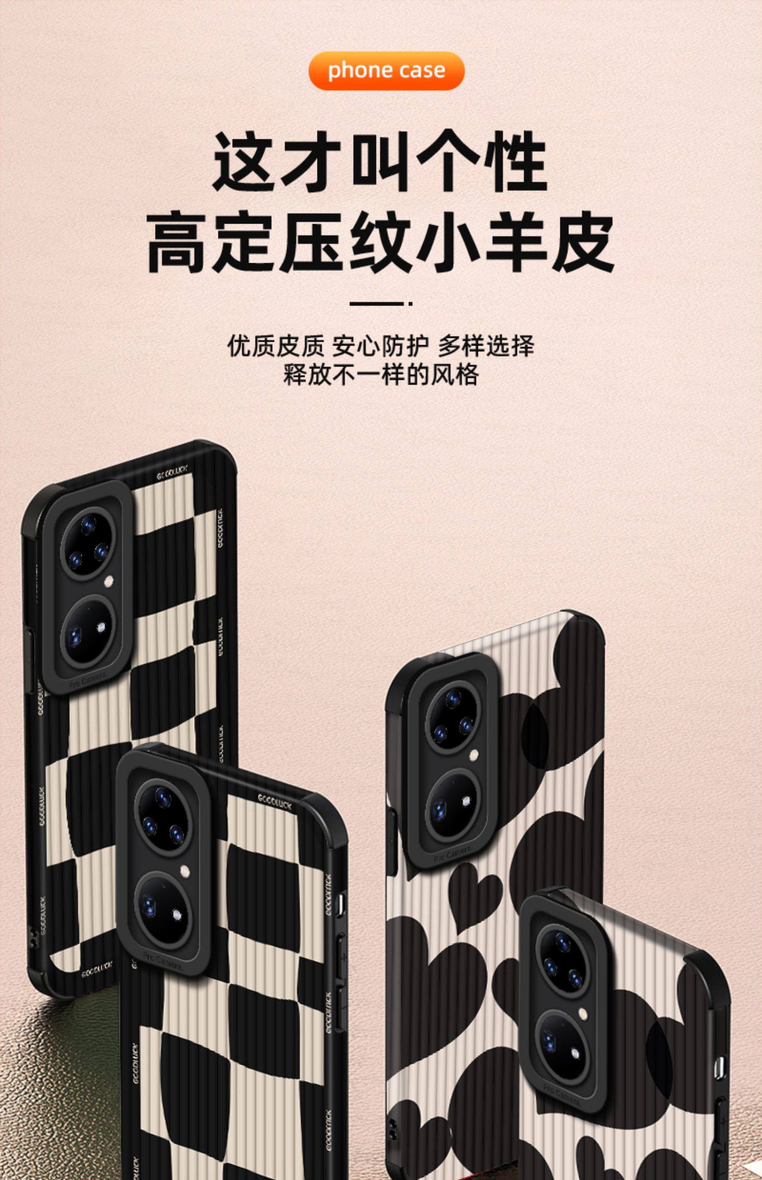 Suitable for Huawei Pura70 Pro Phone Case, Popular Black and White Checkered Mate60 Lambskin P50/40 New Fashion Heart-Shaped Mate50 Creative Internet Celebrity Mate70 Pro Trendy Brand Men's Protective Case
