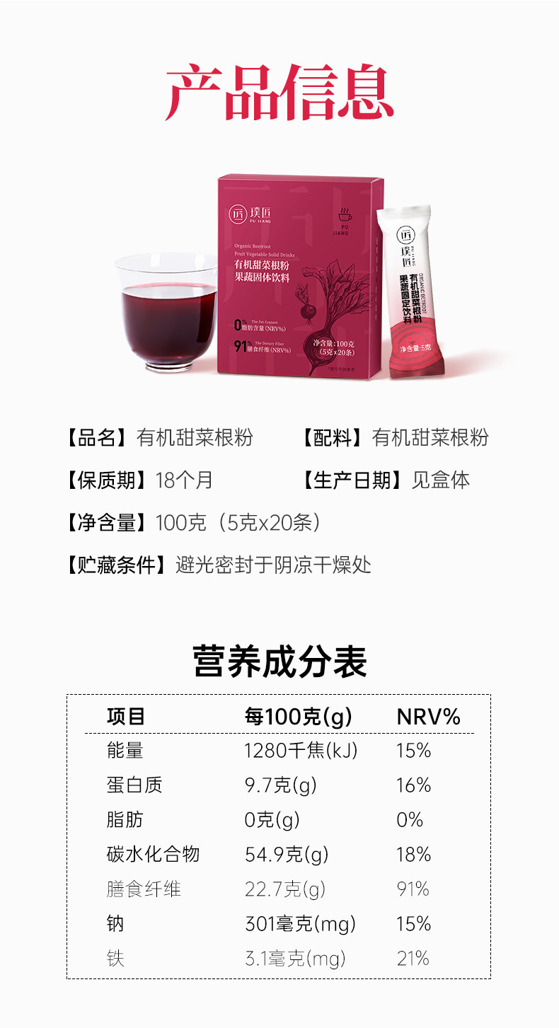 [Combo Pack] Pujiang Organic Beetroot Powder Flagship Store Vegetable Powder Meal Replacement Food Fruit and Vegetable Powder 6 Boxes