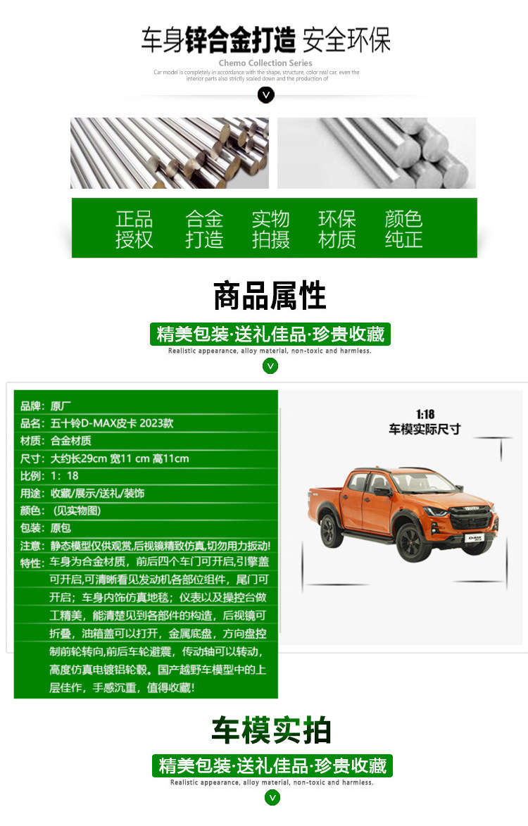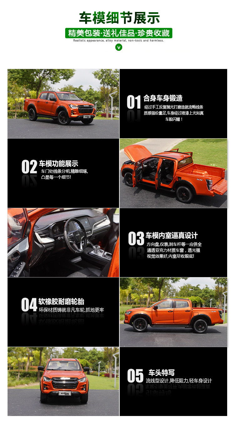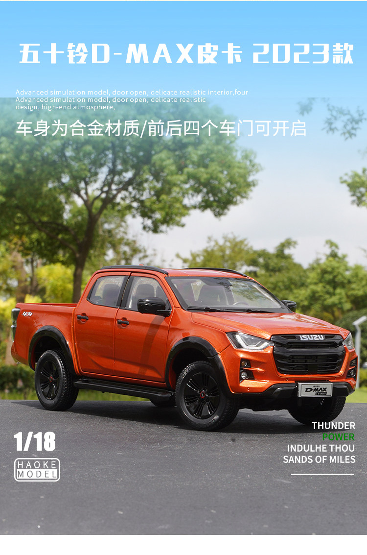 1:18 Scale Original Isuzu D-Max Pickup Truck 2023 Model Truck Transport Vehicle Car Model