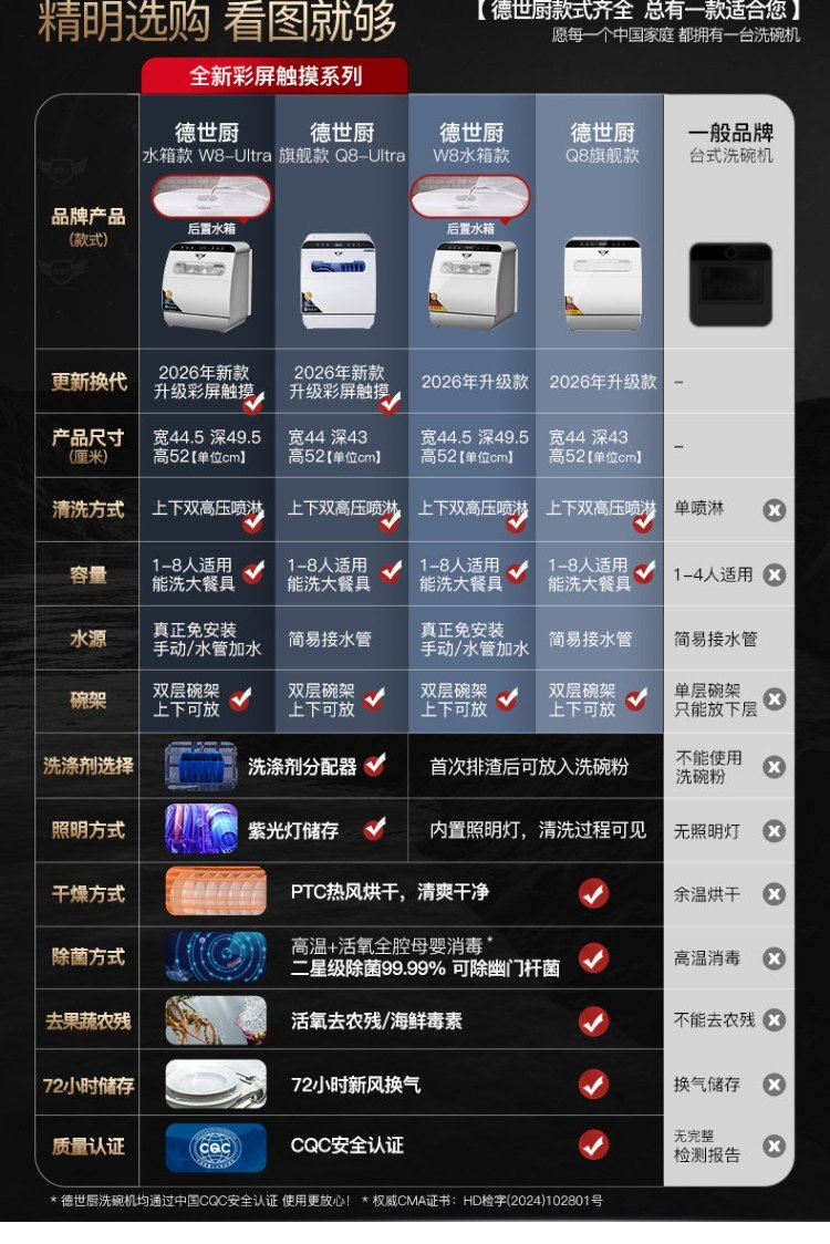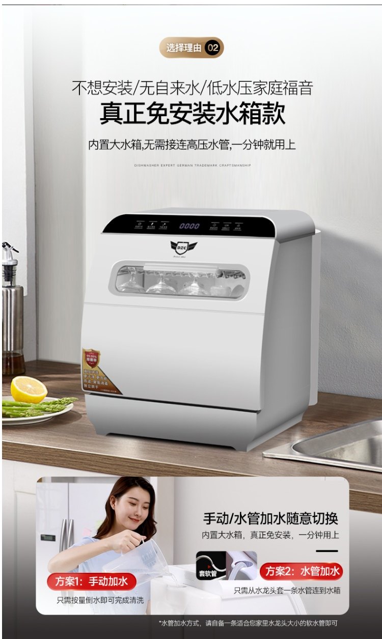 | Color Classification | 【W8】No Installation Required, Manual Water Addition, Suitable for 1-8 People,【W8-Ultra】2025 Upgraded Version - No Installation Required, Manual Water Refill, Suitable for 1-8 People,Consult Customer Service to Register as a Member and Receive Lifetime Dishwashing Powder |