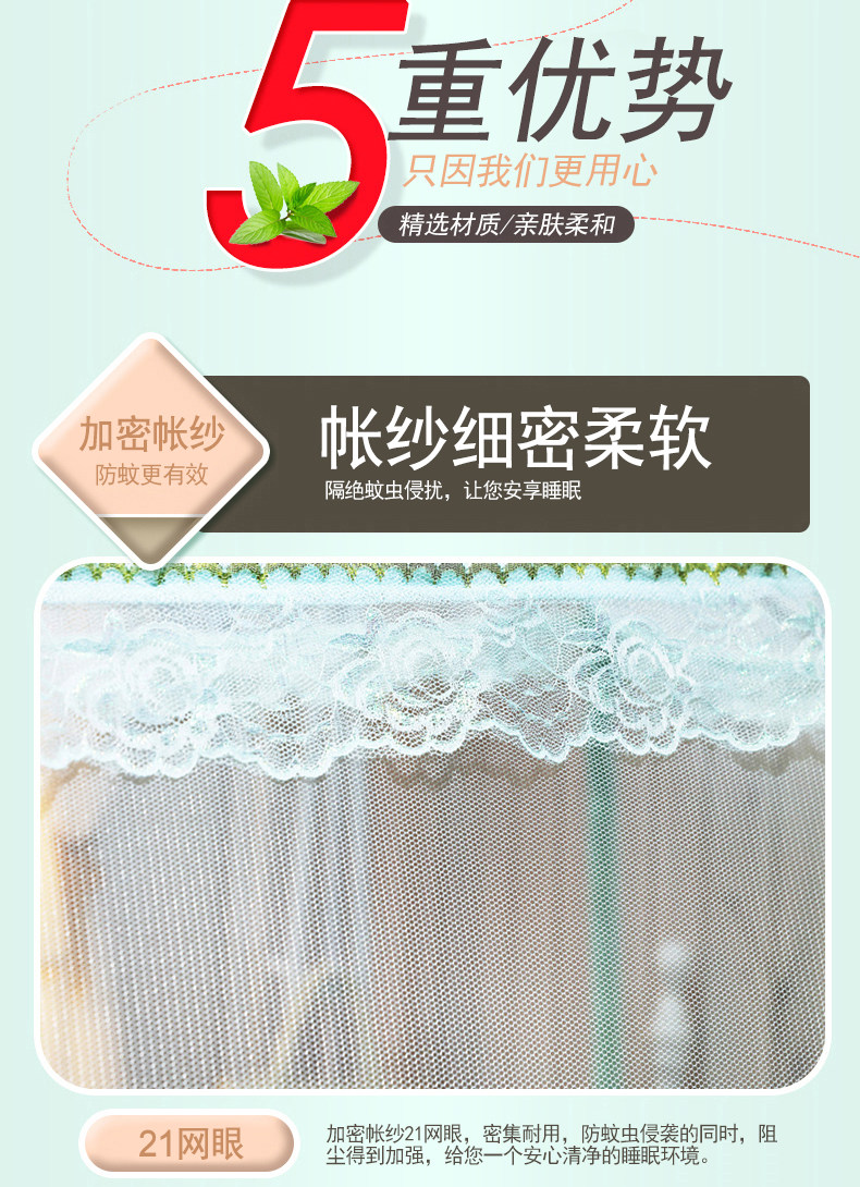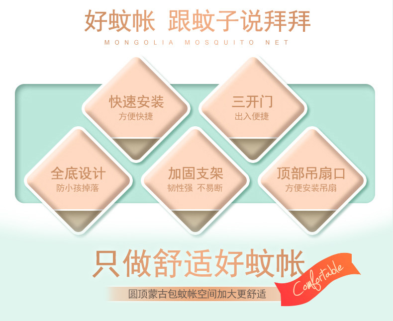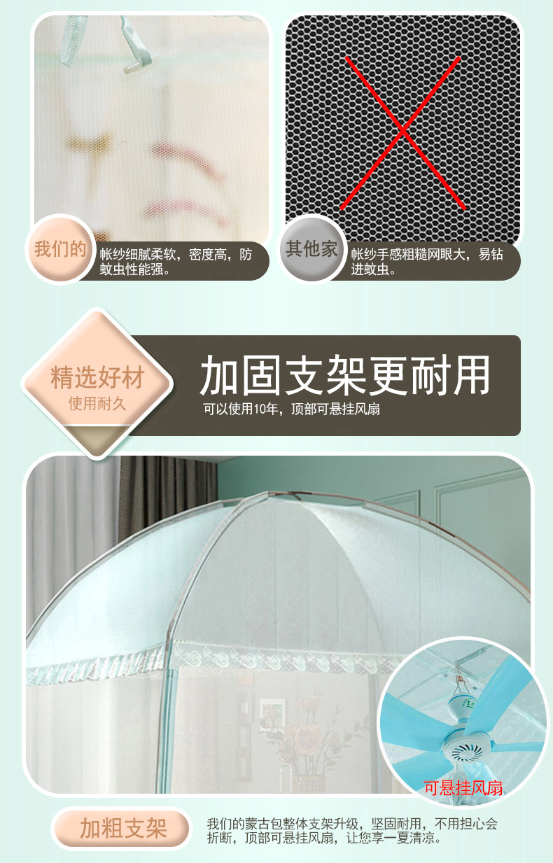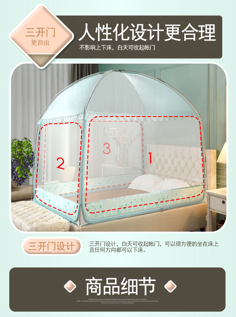 | Applicable Bed Size | 1.2X2.0M [Three-Door Mosquito Net + Fan Hook],1.35X2.0M [Three-Door Mosquito Net + Fan Hook],1.5X2.0M [Three-Door Mosquito Net + Fan Hook],1.8X2.0M [Three-Door Mosquito Net + Fan Hook],2.0X2.2M [Three-Door Mosquito Net + Fan Hook],1.8X2.2M [Three-Door Mosquito Net + Fan Hook],1.2X2.0M [Three-Door Mosquito Net],1.35X2.0M [Three-Door Mosquito Net],1.5X2.0M [Three-Door Mosquito Net],1.8X2.0M [Three-Door Mosquito Net],2.0X2.2M [Three-Door Mosquito Net],1.8X2.2M [Three-Door Mosquito Net],1.0X2.0 [Three-Door Mosquito Net],1.0X2.0M [Three-Door Mosquito Net + Fan Hook],1.5X1.9M [Three-Door Mosquito Net],1.5X1.9M [Three-Door Mosquito Net + Fan Hook],0.9X2.0M [Two-Door Mosquito Net] |