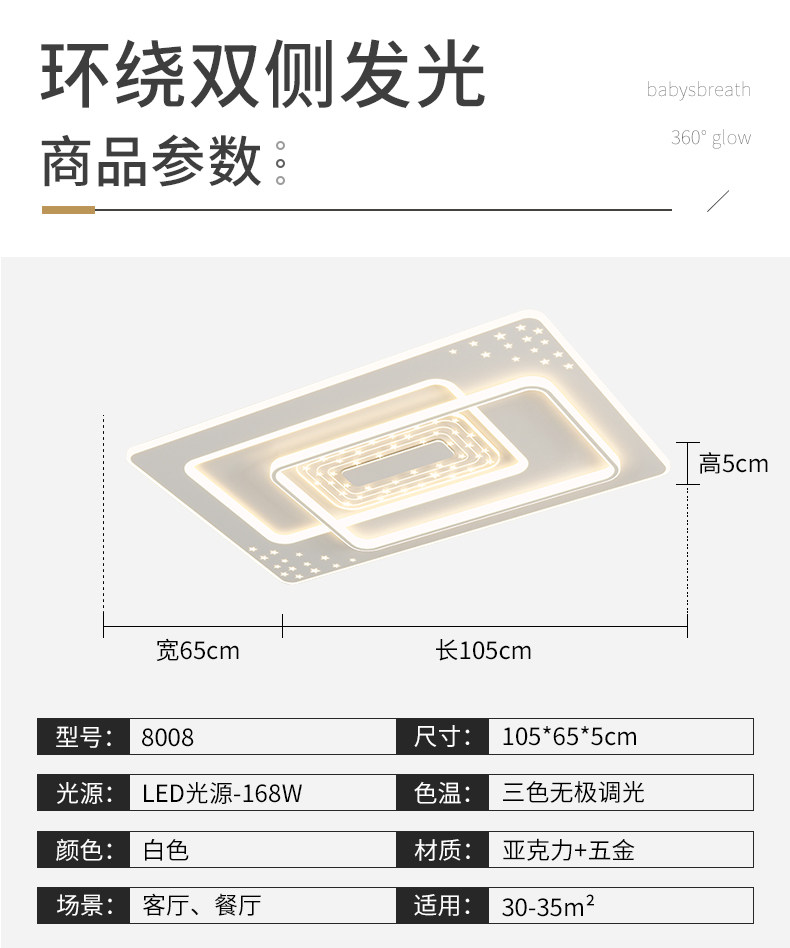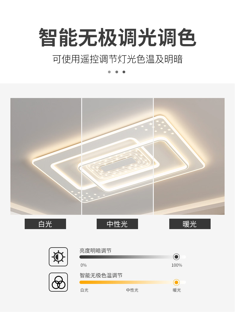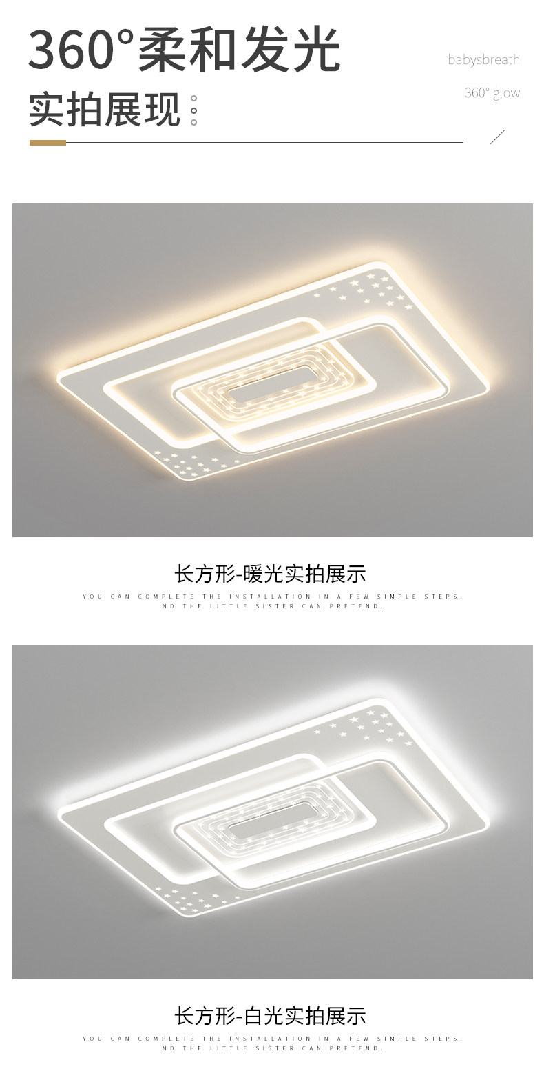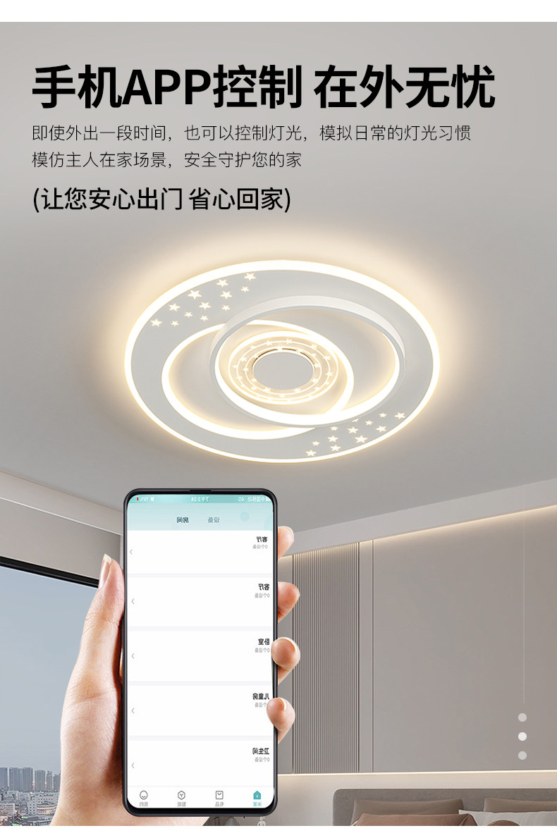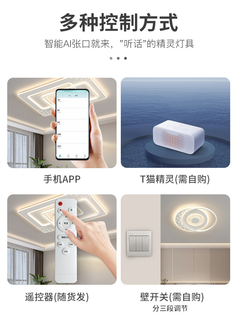| Control Type | Three-Color Stepless Dimming [Supports Remote Control + Wall Switch Control],Smart Offline Voice [Supports Offline Voice + Tmall Genie + App + Remote Control] |