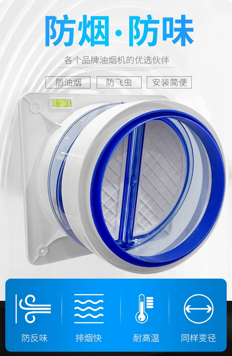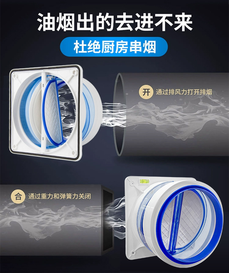 Flue Check Valve, Kitchen Range Hood Check Valve, Anti-Smoke Valve, One-Way Valve, Smoke Stop Valve, Special for Bathroom Exhaust Pipe