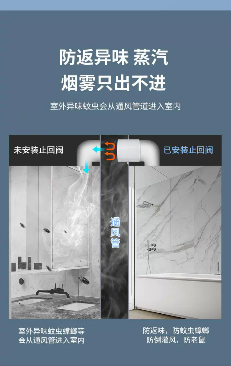 | Color Classification | [Upgraded Sealed Version]Kitchen Standard Check Valve Comes with Free Installation Gift Pack,[Upgraded Sealed Version]Bathroom Standard Check Valve Comes with Free Installation Gift Pack,[Upgraded Sealed Version]Kitchen Standard Check Valve + Smoke Pipe 150* 2m,[Upgraded Sealed Version]Kitchen Standard Check Valve + Smoke Pipe 160* 2m,[Upgraded Sealed Version]Kitchen Standard Check Valve + Smoke Pipe 180* 2m,[Upgraded Sealed Version]Bathroom Standard Check Valve + Smoke Pipe 80* 2m,[Upgraded Sealed Version]Bathroom Standard Check Valve + Flue Pipe 100* 2m,[Upgraded Sealed Version]One Kitchen and One Bathroom Package Comes with a Free Installation Gift Bag,[Upgraded Sealed Version]One Kitchen and Two Bathrooms Package with Free Installation Gift Package |